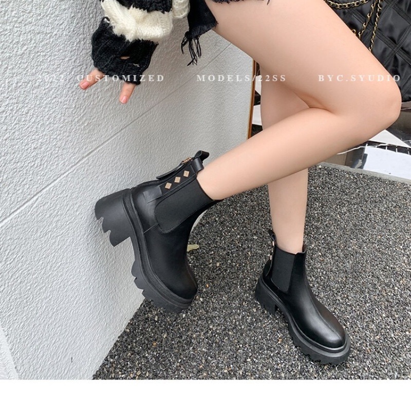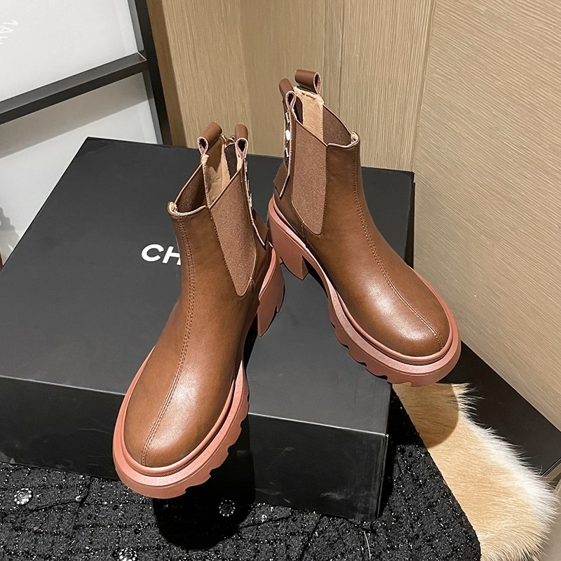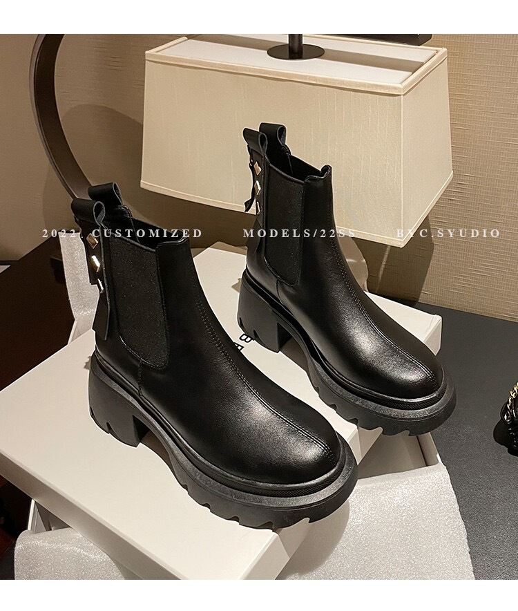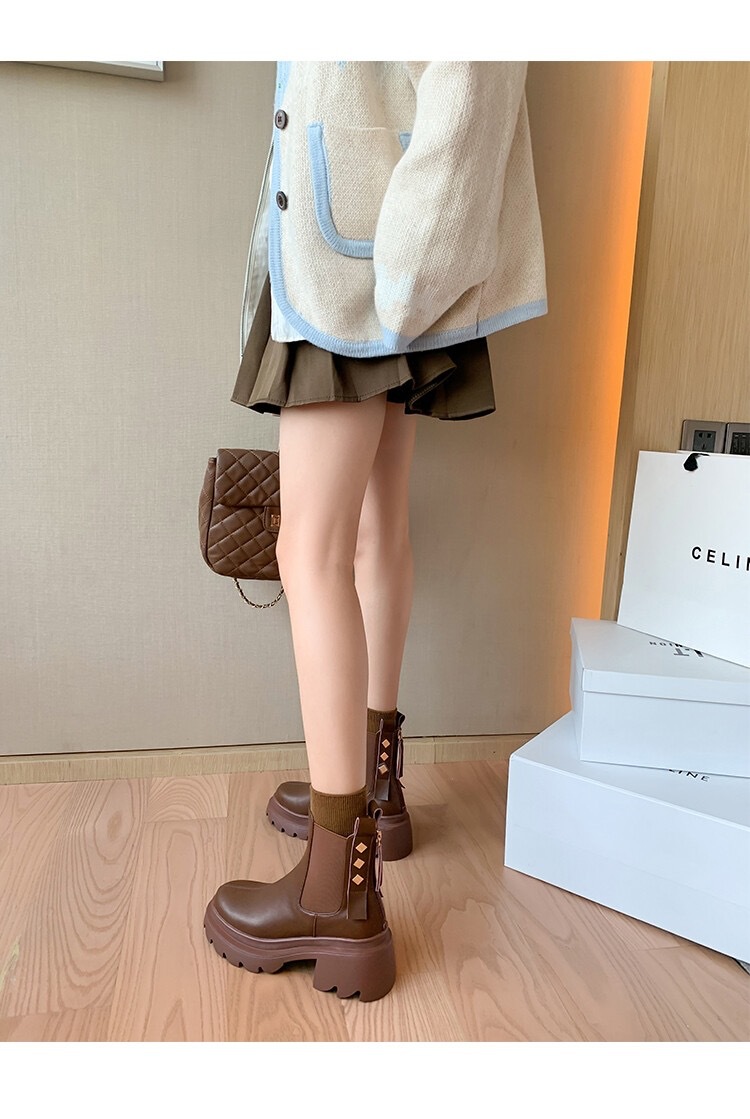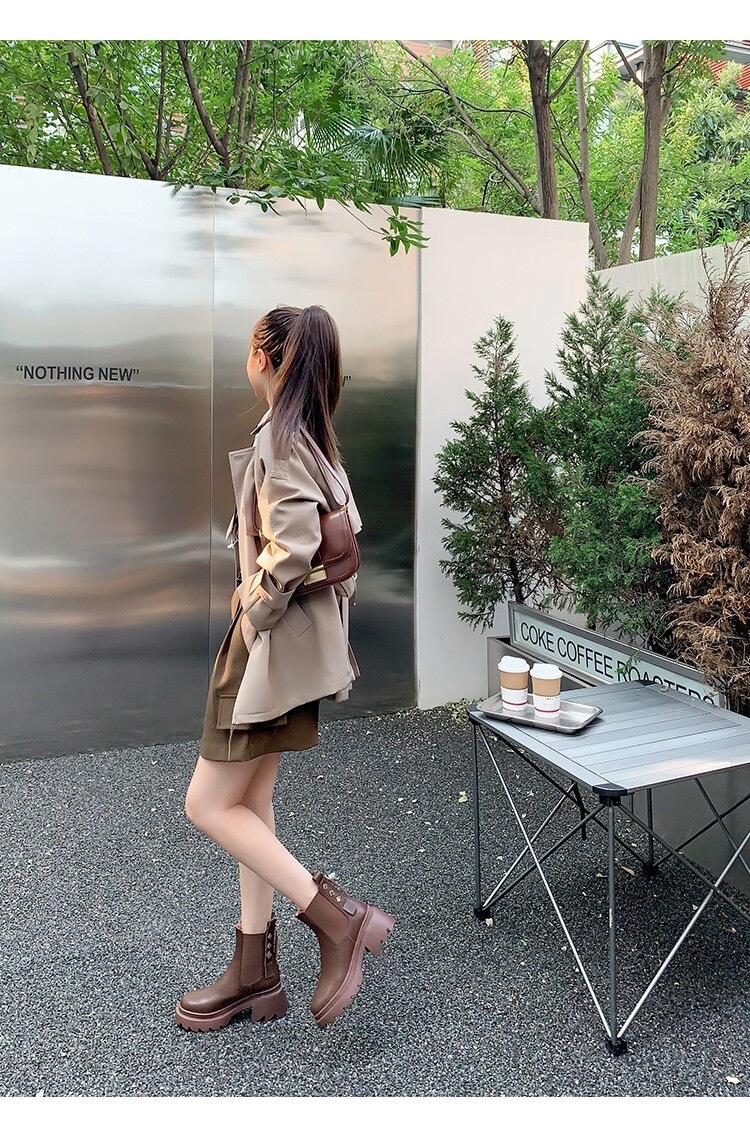 [Ran Jie Broken Size Clearance] Cowhide Thick-Sole Smoke Boots 영국 스타일 레트로 얇은 부츠 여자 첼시 부츠스토어 가기
