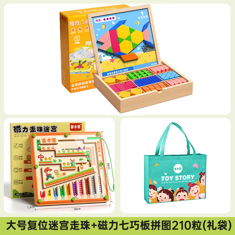 • [선물가방] 자석 칠교놀이 퍼즐 210개 + 자석 미로구슬 [펜 쥐기 훈련/집중력 향상]
