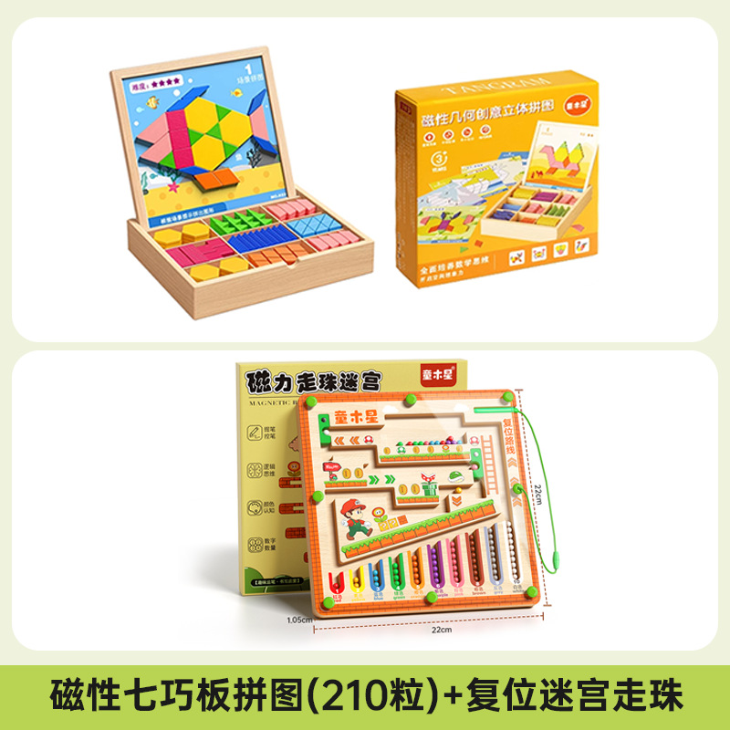 • 자석 칠교놀이 퍼즐 210개 + 자석 미로구슬 [펜 쥐기 훈련/집중력 향상]