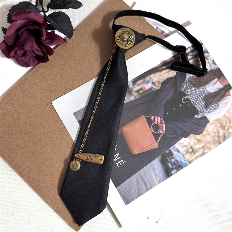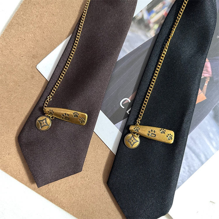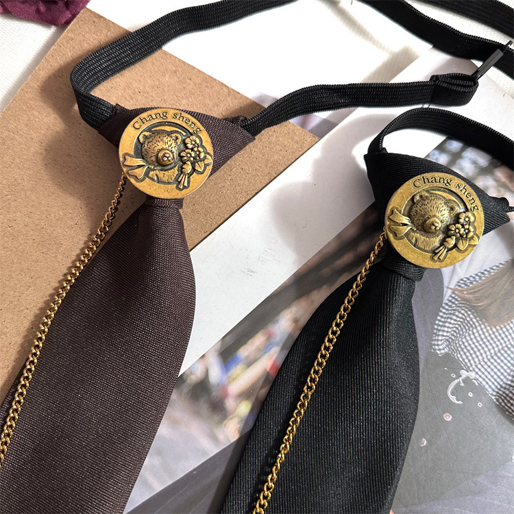 빈티지 고급 다크 브라운 넥타이 브론즈 메탈 체인 베어 라운드 헤드 핀 장식 올 매치 타이 프리 타이