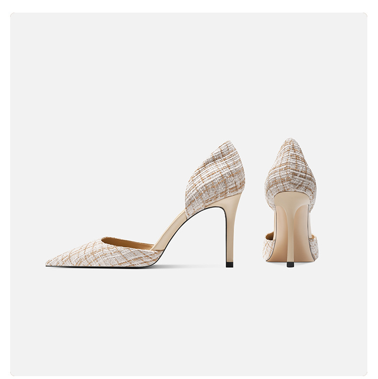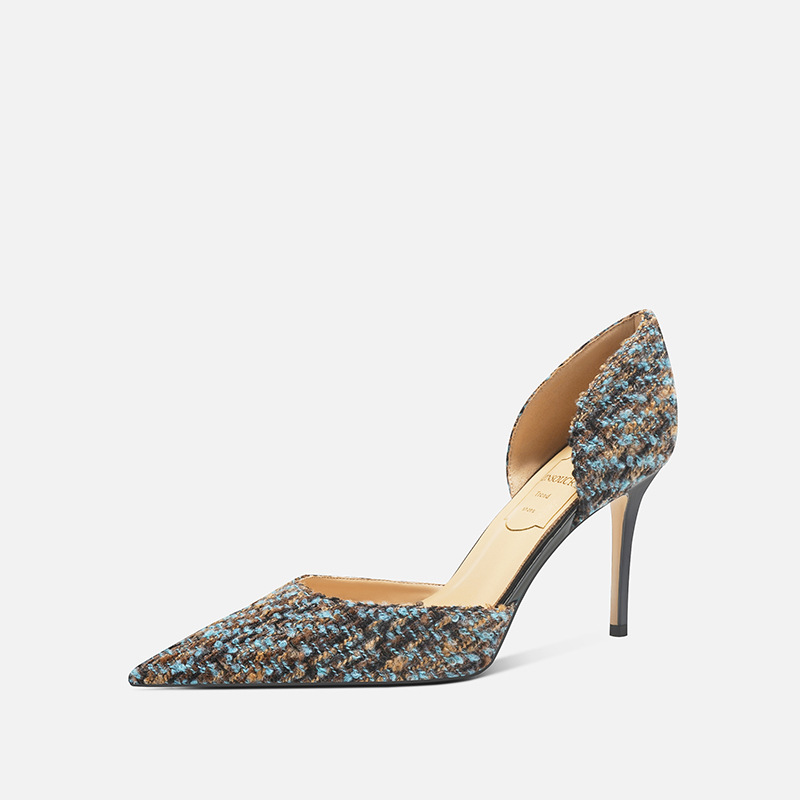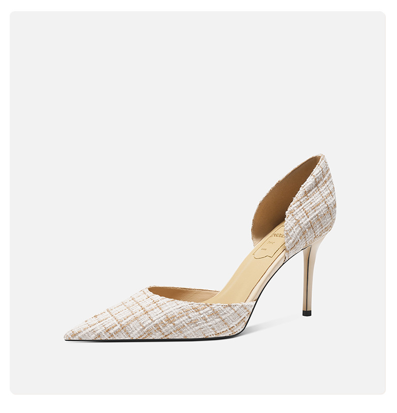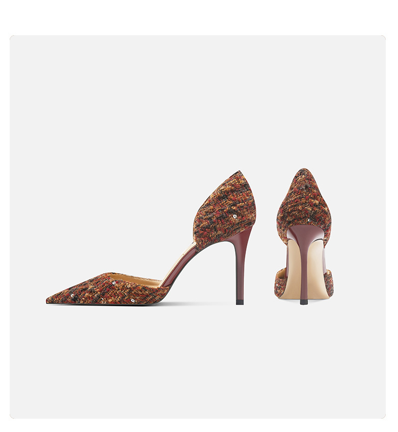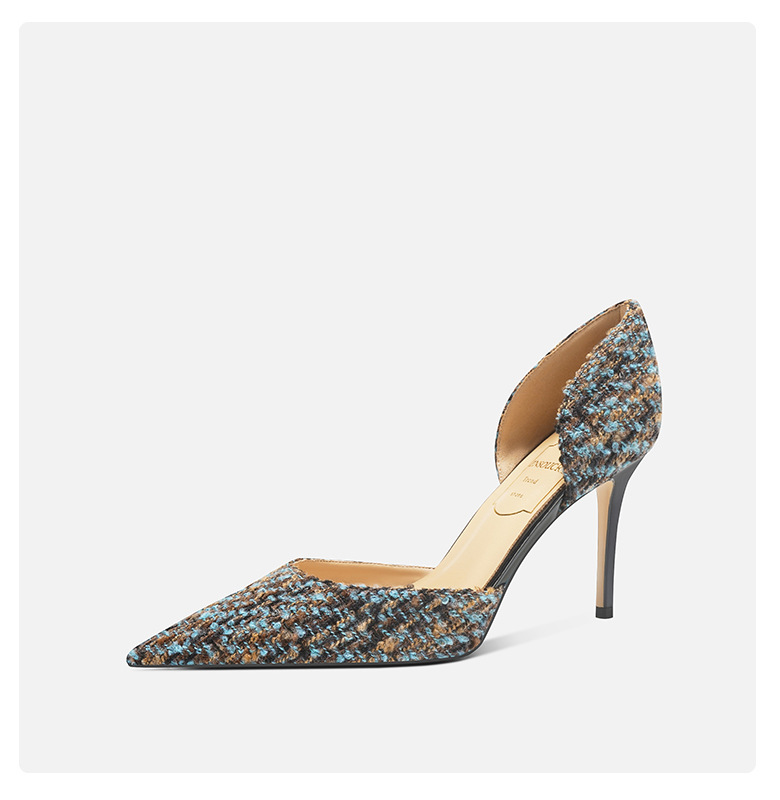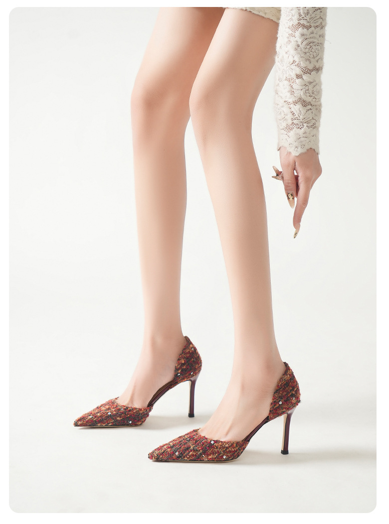 708-K60 포인팅 우아한 샤넬 스타일 하이힐 여성의 가을과 겨울 새로운 유행 얕은 얇은 뒤꿈치가 피곤하지 않은 발 싱글 레이어 신발