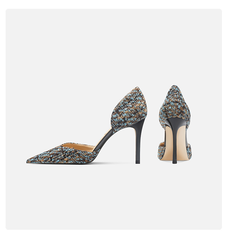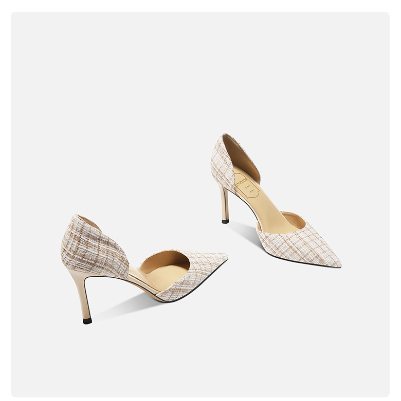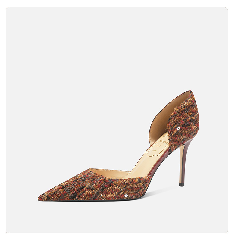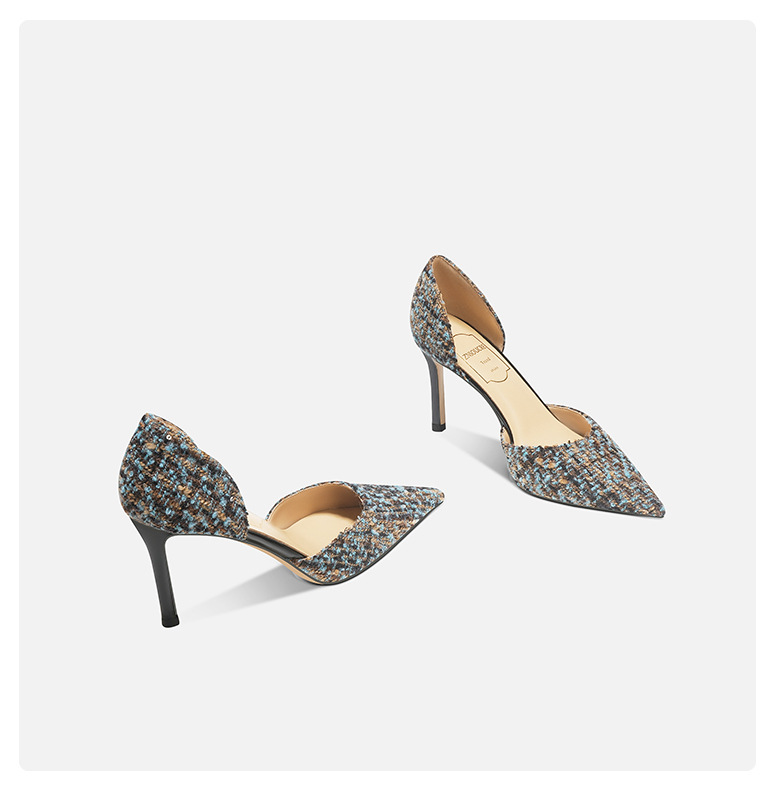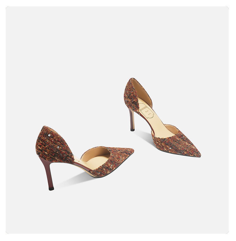 708-K60 포인팅 우아한 샤넬 스타일 하이힐 여성의 가을과 겨울 새로운 유행 얕은 얇은 뒤꿈치가 피곤하지 않은 발 싱글 레이어 신발스토어 가기