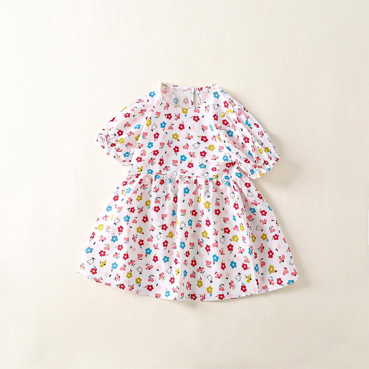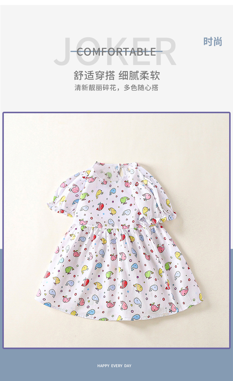 여자 원피스 새로운 어린이 캐주얼 인쇄 반팔 크루 넥 어린이 공주 원피스 꽃 아기 원피스