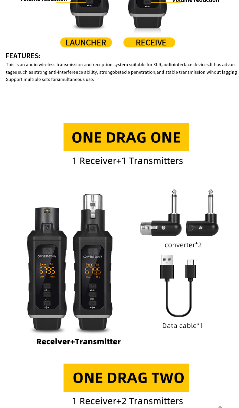 • 유선 마이크-무선 변환기(1~2) 범용 정전식/무빙 코일 마이크/악기