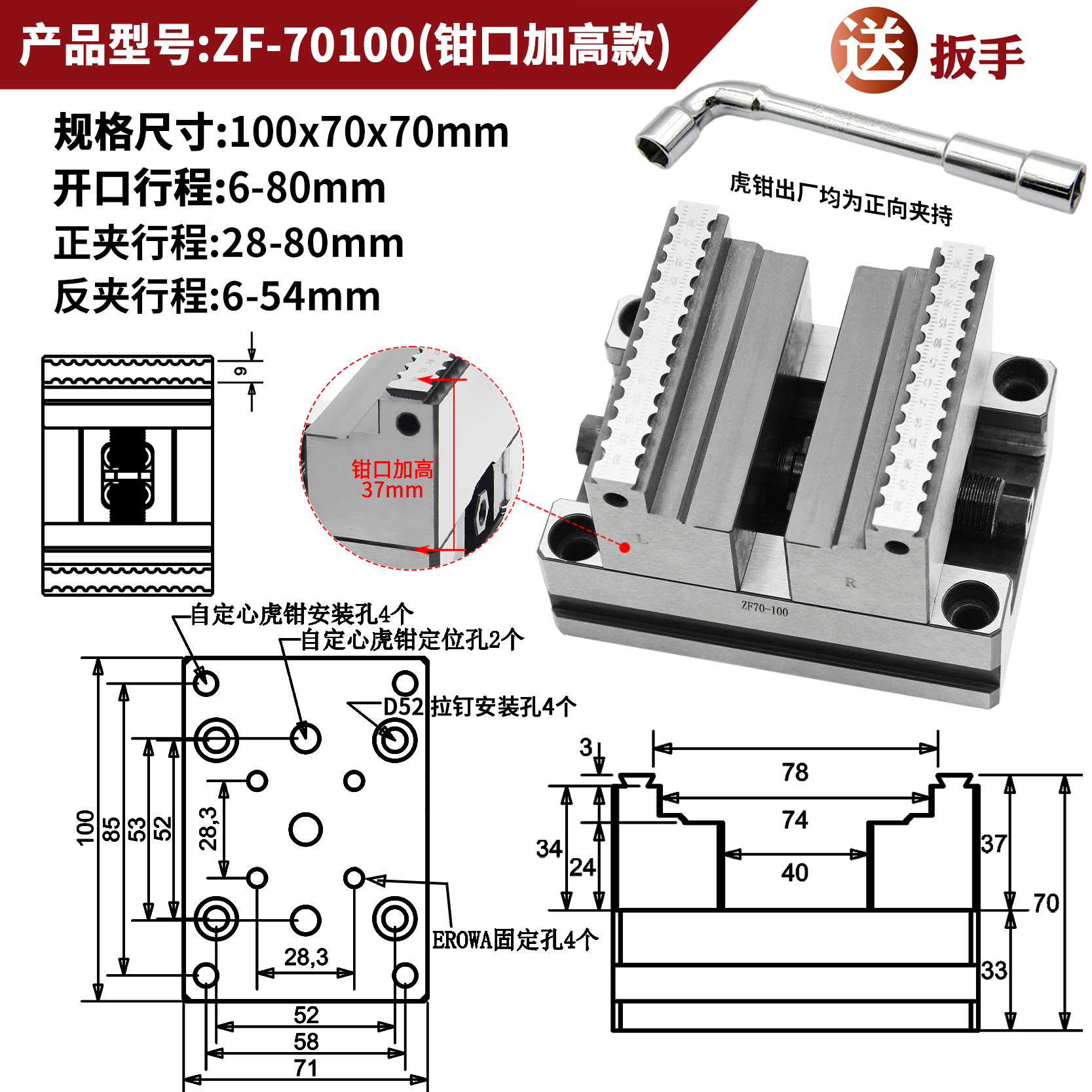 • 강화된 ZF70-100 셀프 센터링 바이스, 강화된 37개 조
