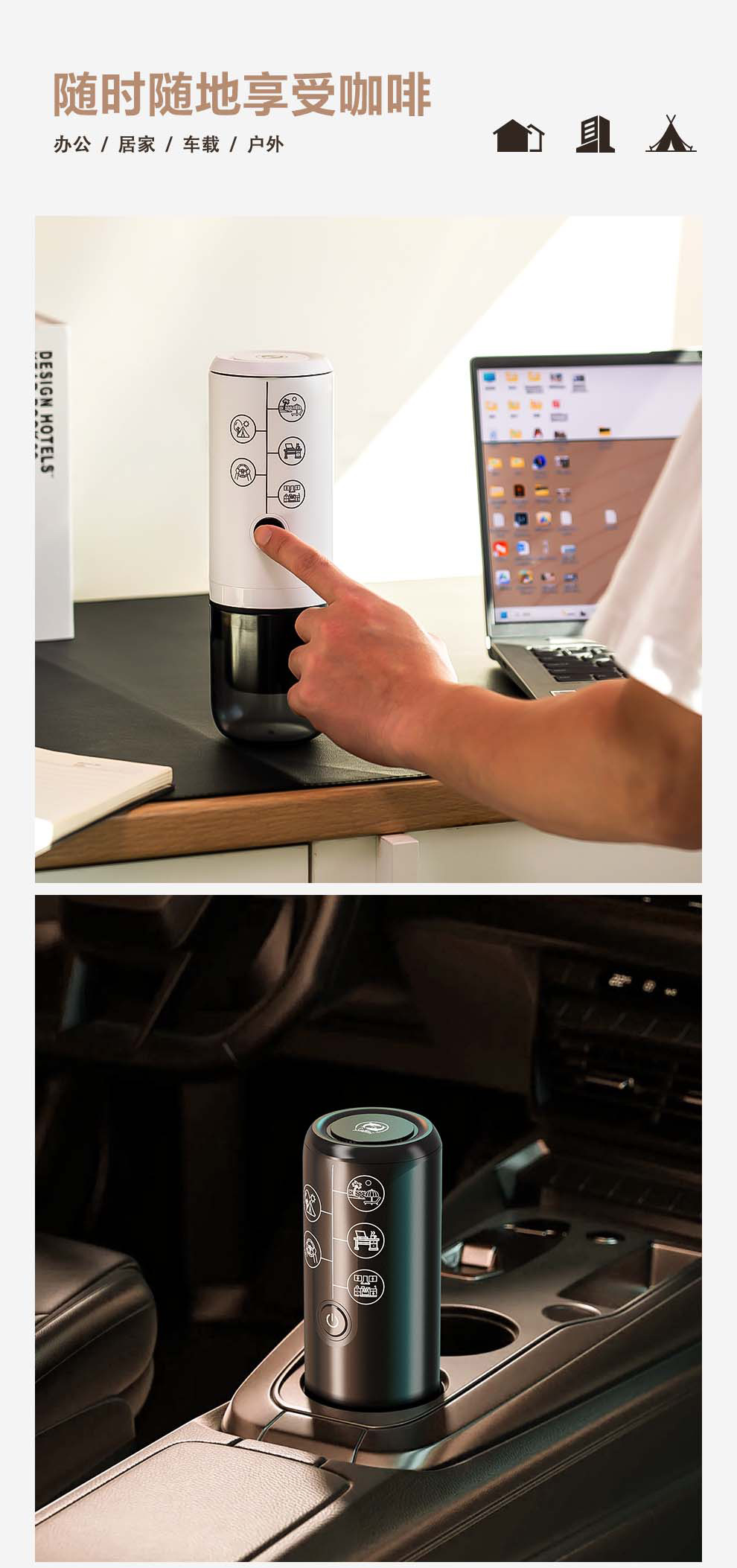 Icafilas 창조적 인 무선 충전 2-in -1 야외 휴대용 에스프레소 기계 분말 빈 Nes 캡슐 빈스토어 가기