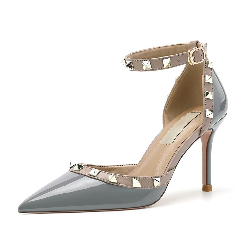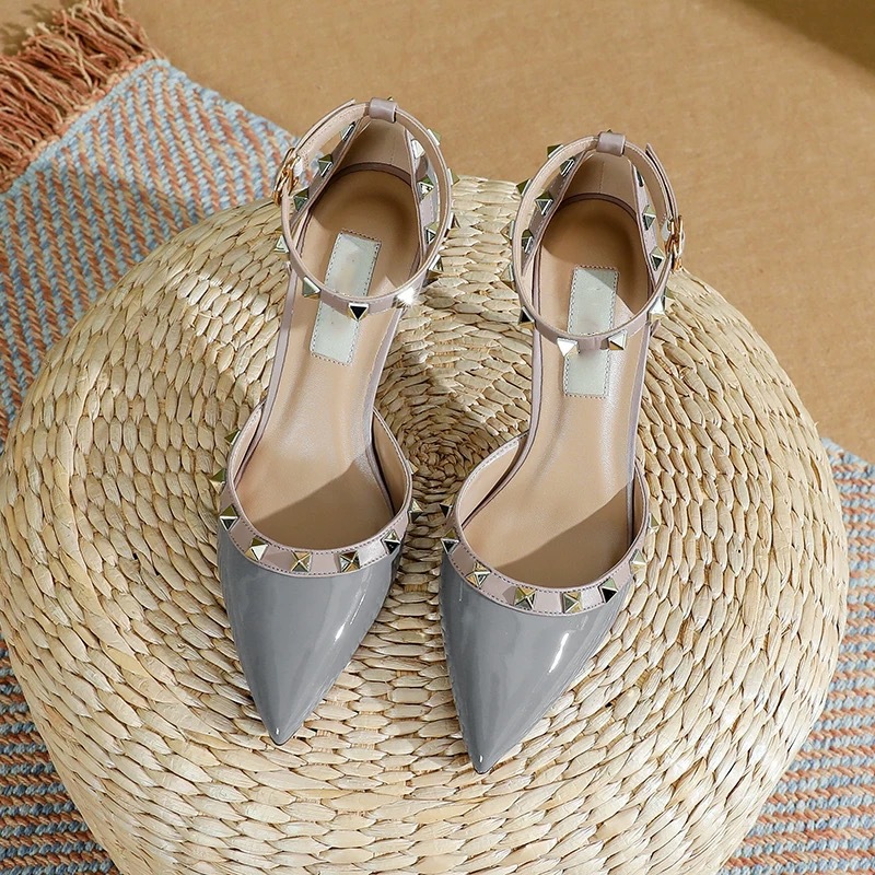 Toe Rivet 얇은 굽 샌들 여성용 2025 년 여름 뾰족한 하이힐 샌들 여성용 한 줄 버클 전문 빈티지 싱글 레이어 신발스토어 가기