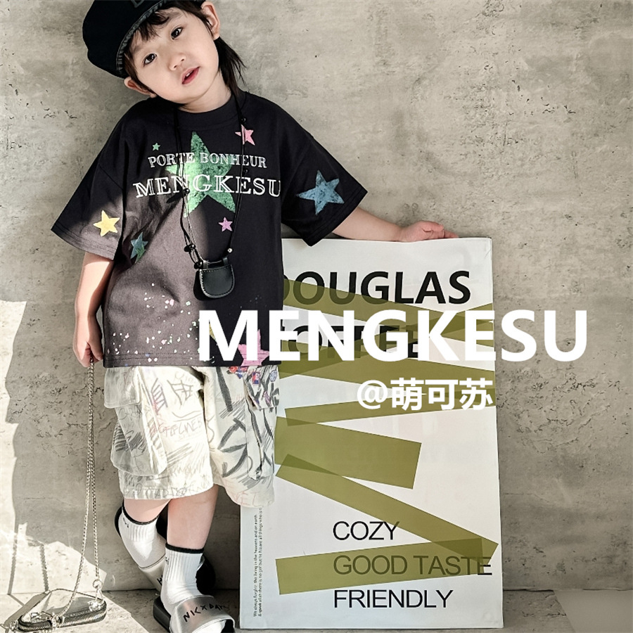 Moe Su 소년 반팔 티셔츠 2025 트렌디 한 브랜드 아동면 탑 중소 어린이 아기 여름 반소매 대외 무역스토어 가기