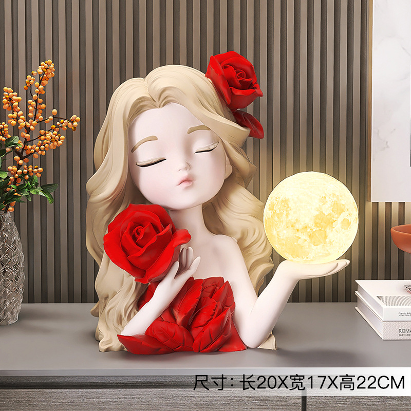 • 로즈 걸 야간 조명 장식품-레드