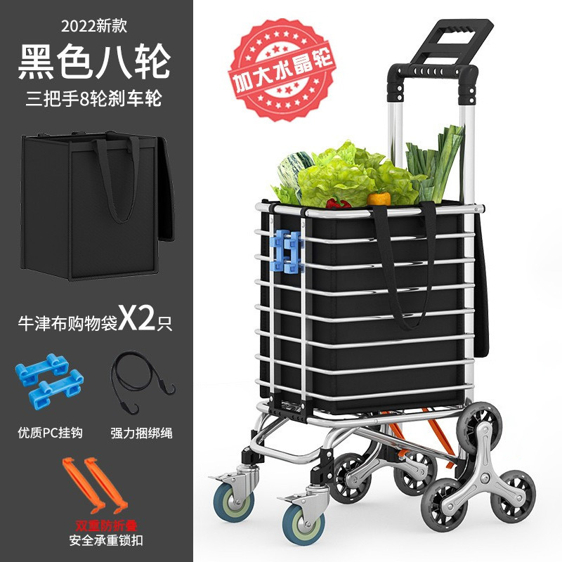 • 검정색 확대 스테인레스 스틸 휠, 브레이크용 잠금 버클이 있는 3개의 핸들 및 8개의 휠