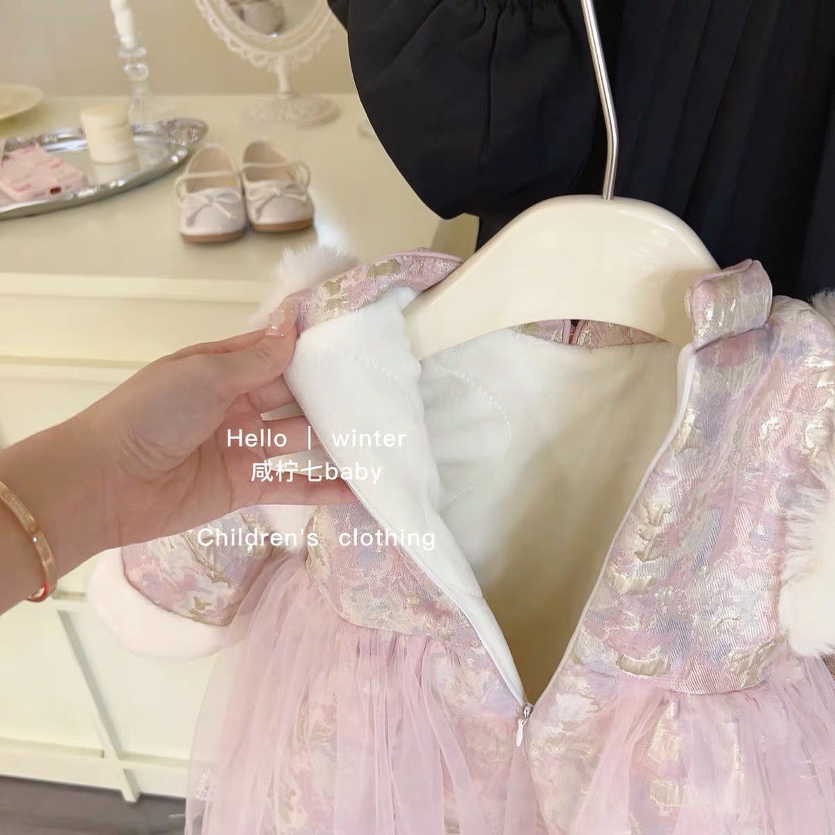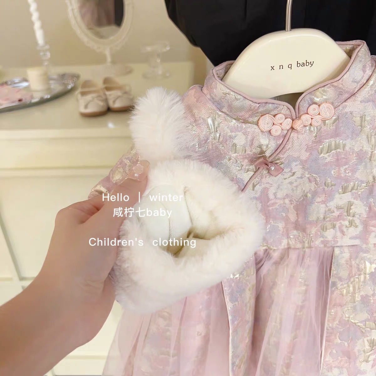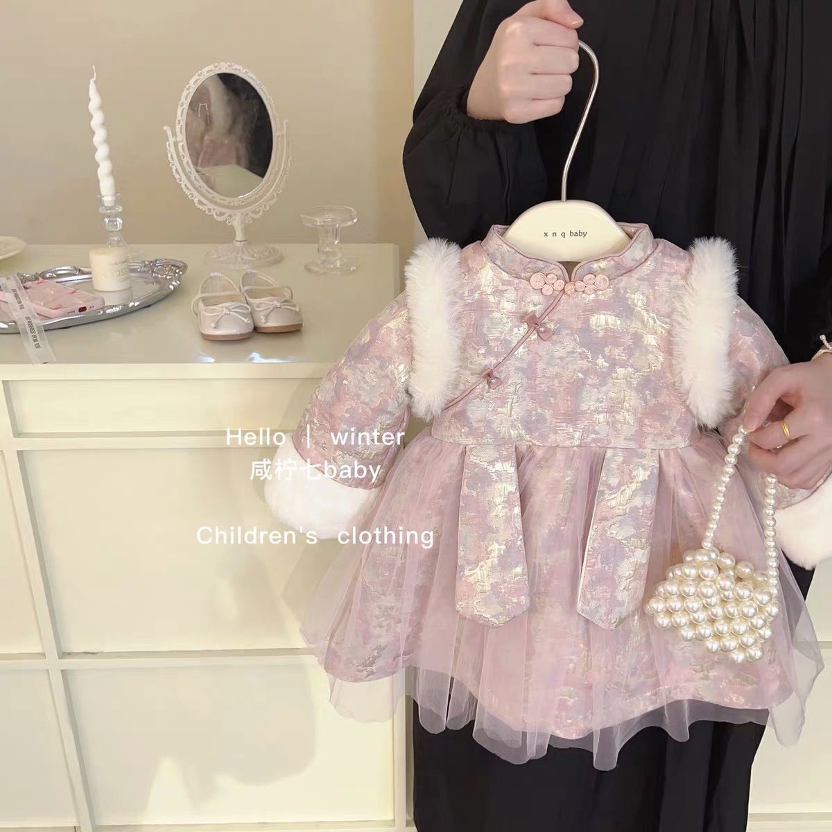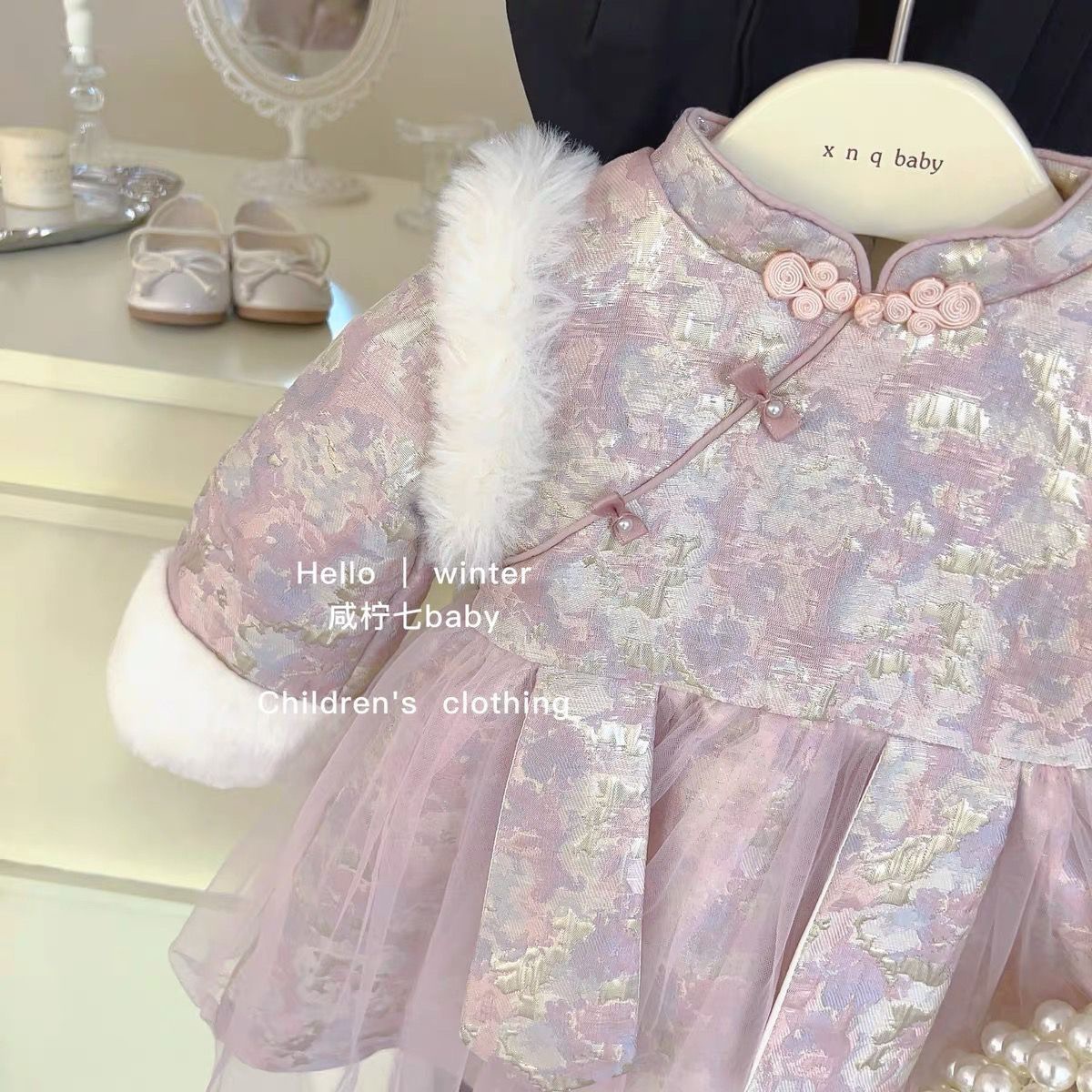 여자 겨울 옷 원피스 아기의 서양식 어린이 맞춤형 유행 브랜드 중국 스타일 청삼 메쉬 공주 새해 원피스스토어 가기