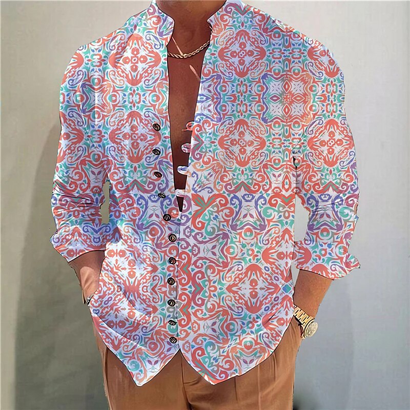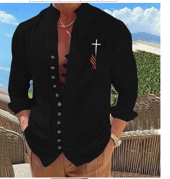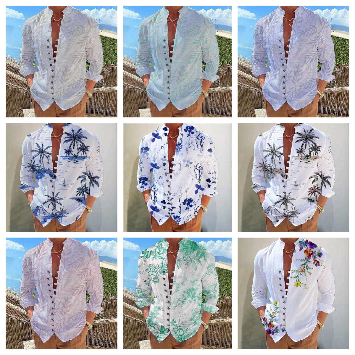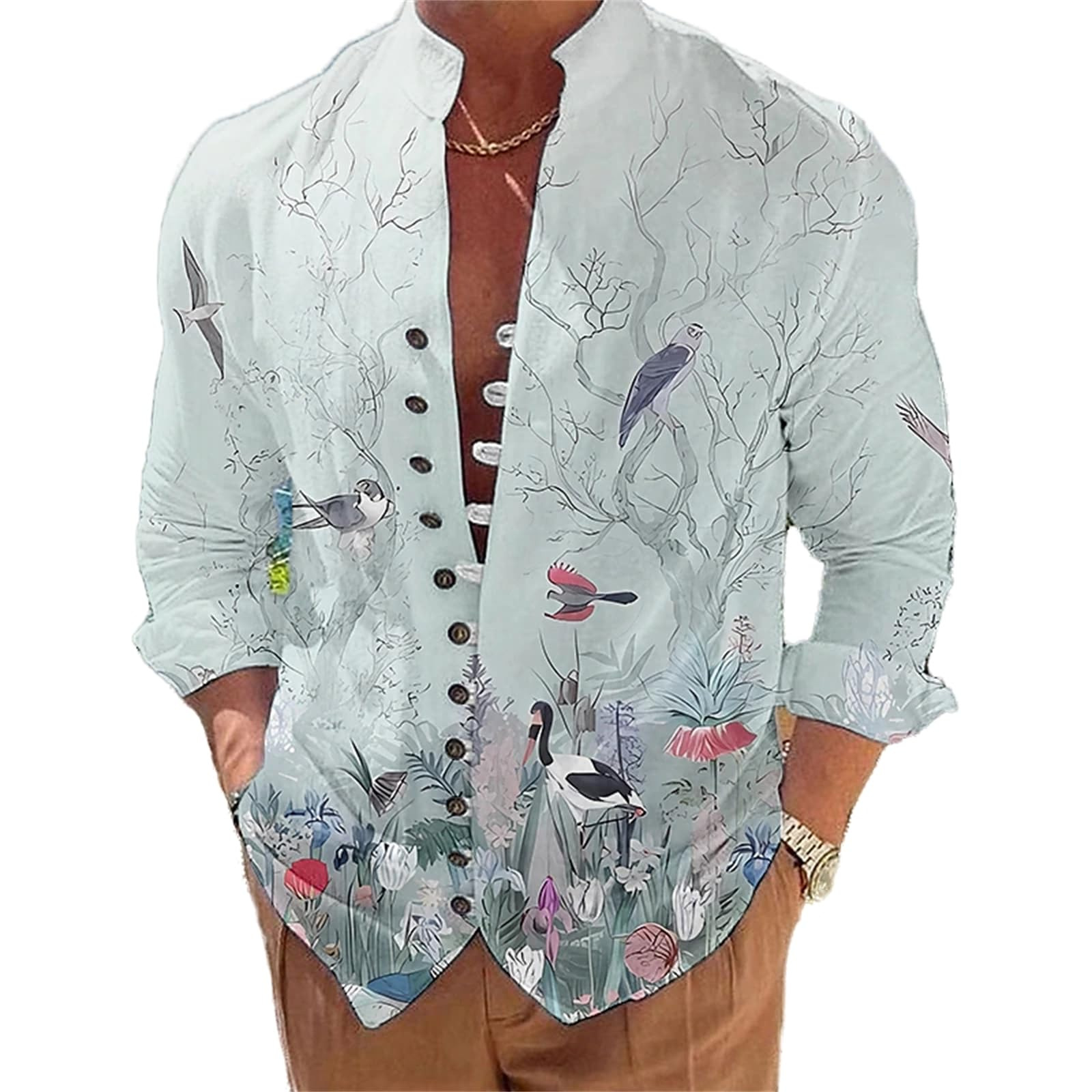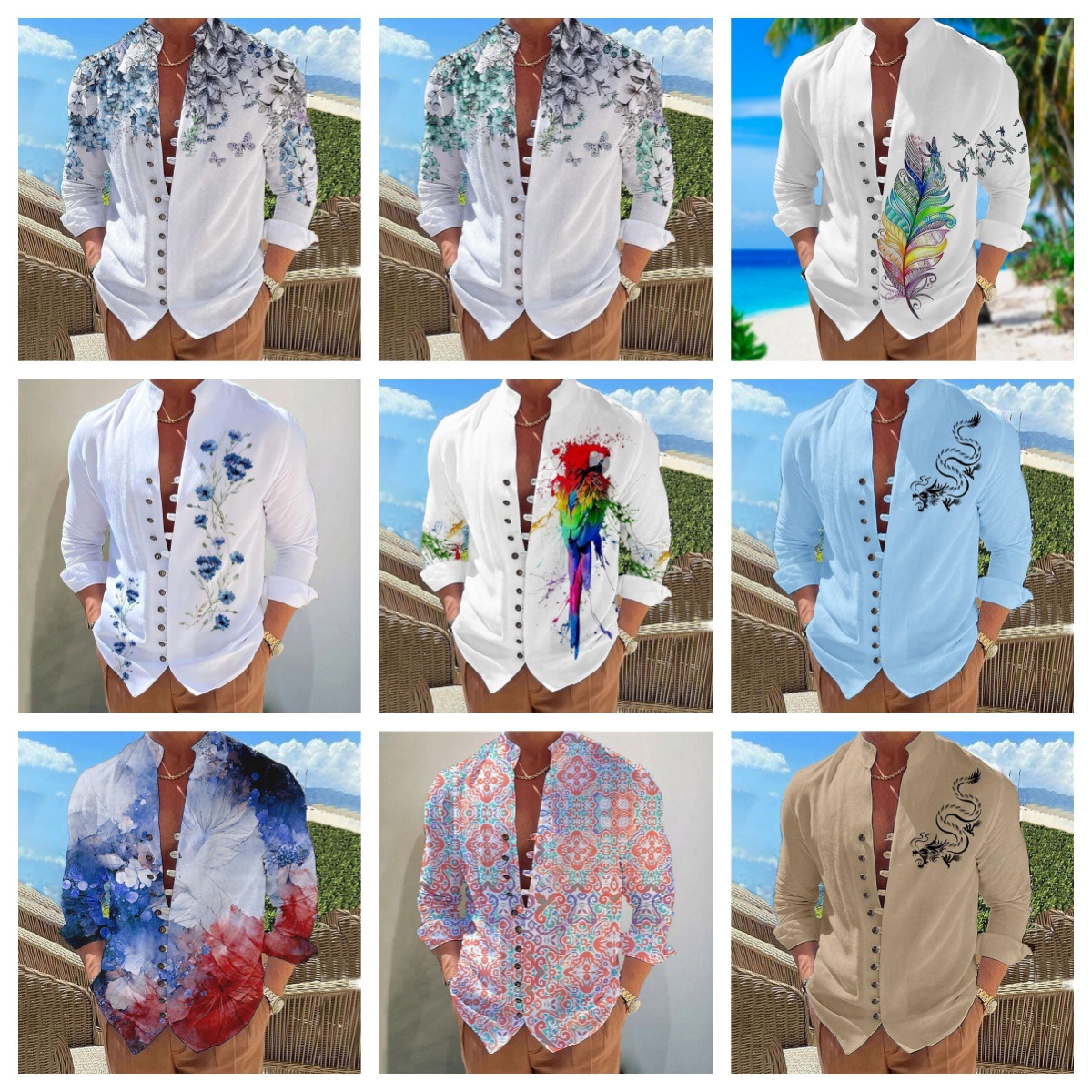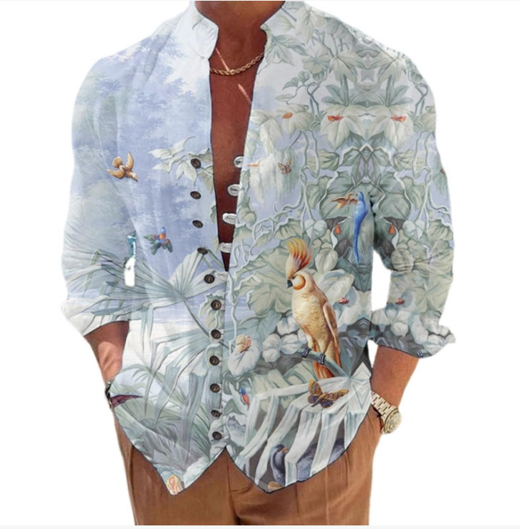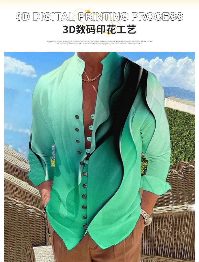 테무 국경 플랫폼 스탠드 칼라 멀티 버튼 긴 소매 남성 셔츠 봄과 가을 패션 캐주얼 3D 프린트 카디건