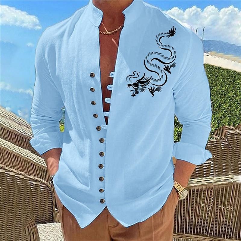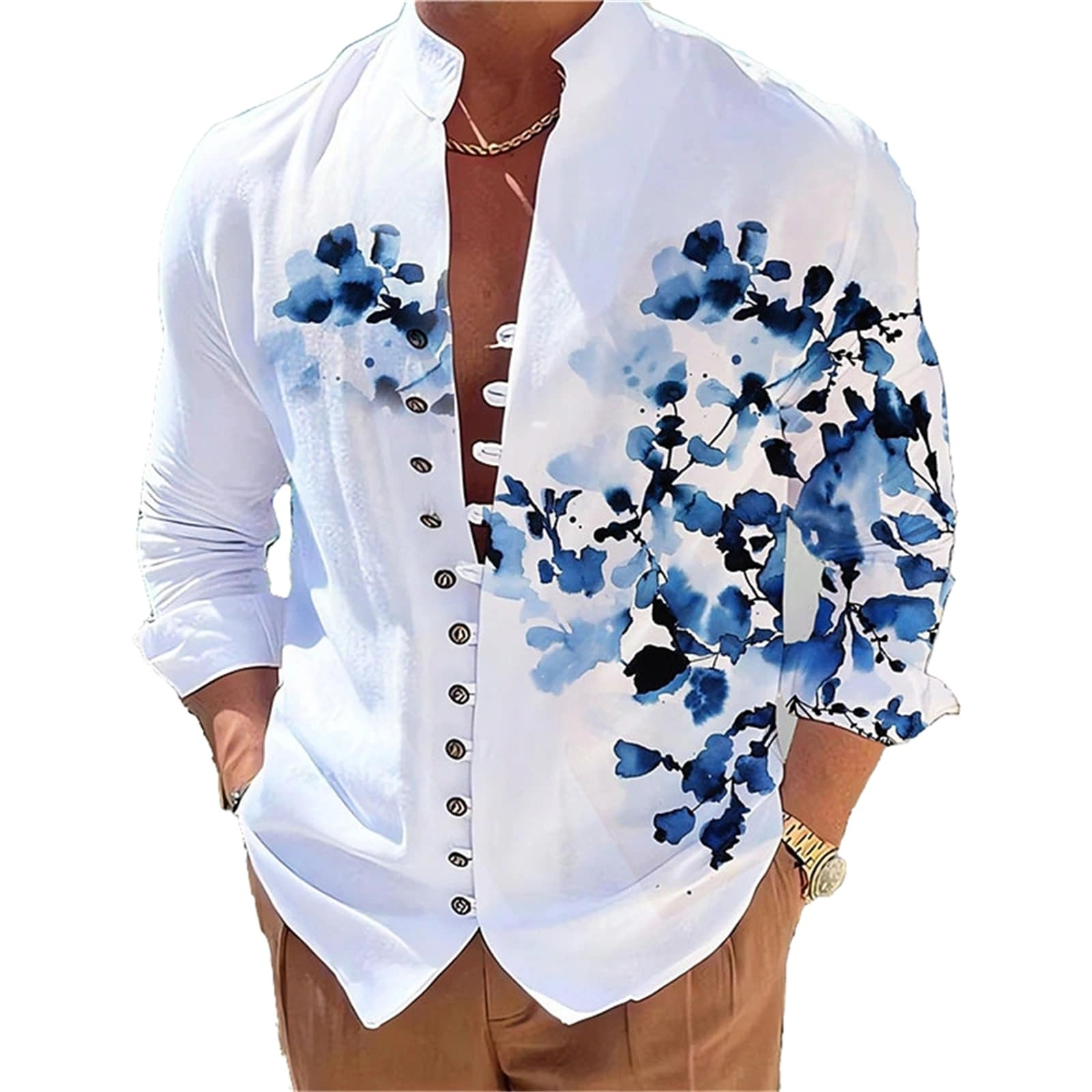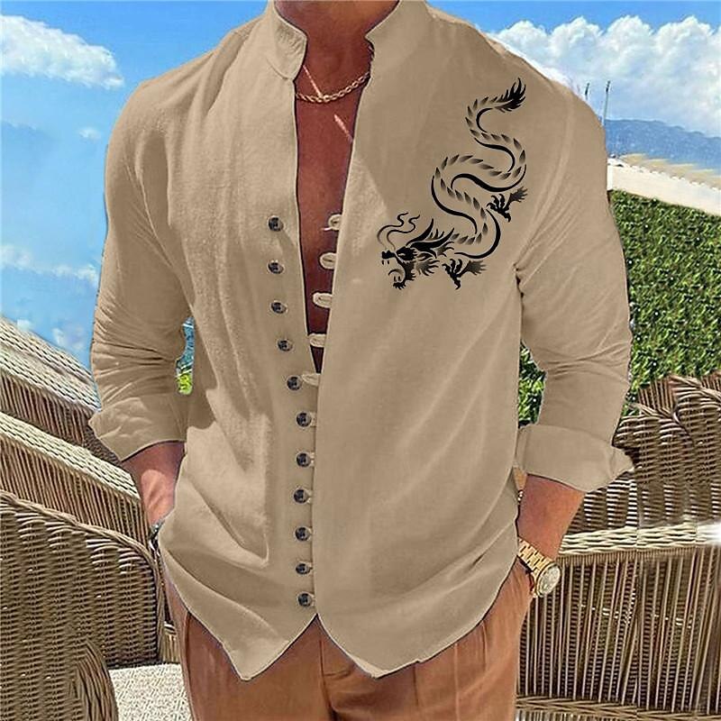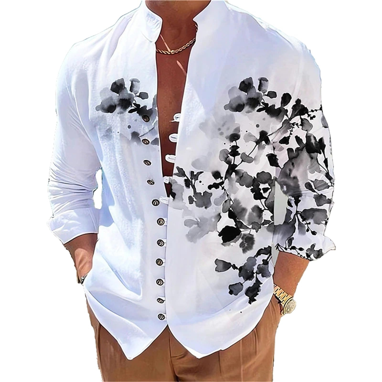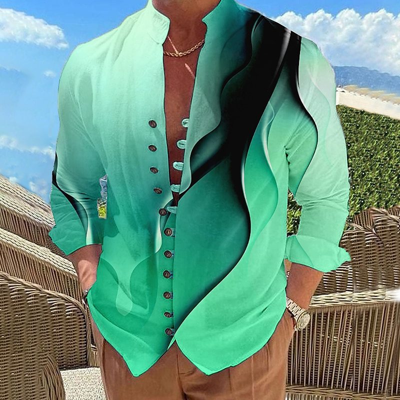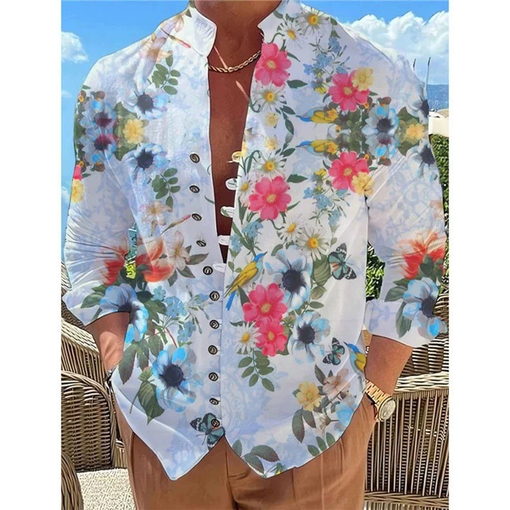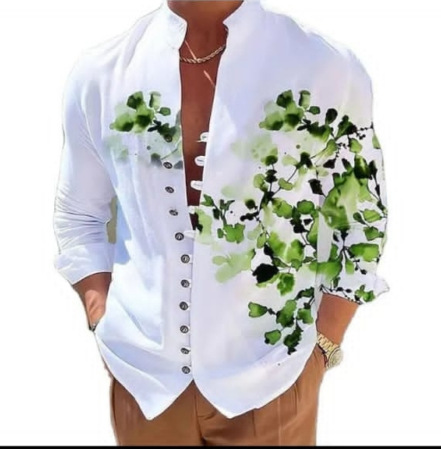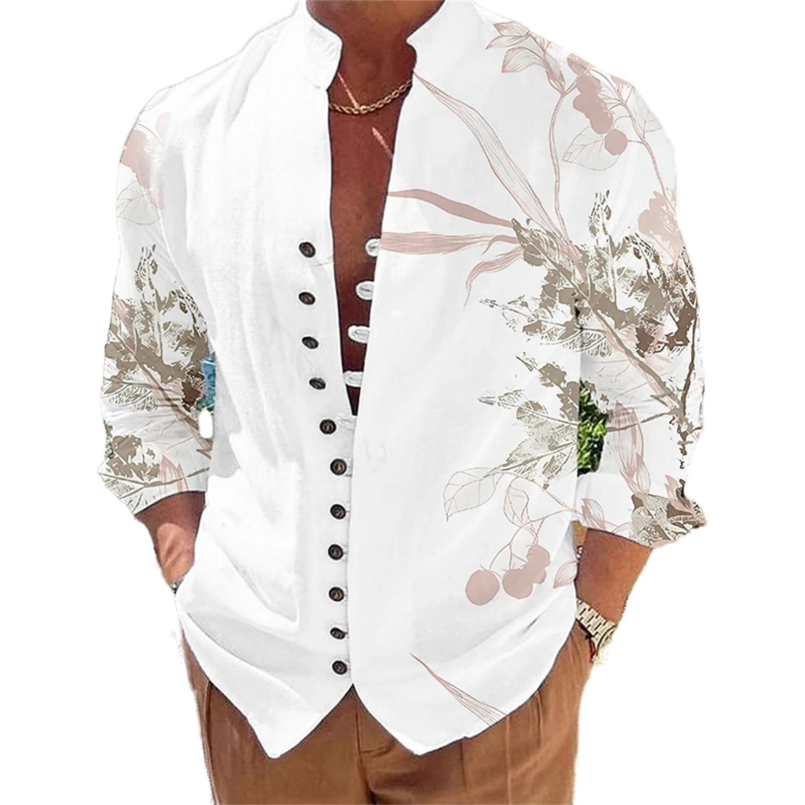 테무 국경 플랫폼 스탠드 칼라 멀티 버튼 긴 소매 남성 셔츠 봄과 가을 패션 캐주얼 3D 프린트 카디건