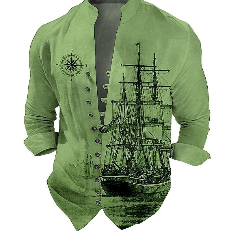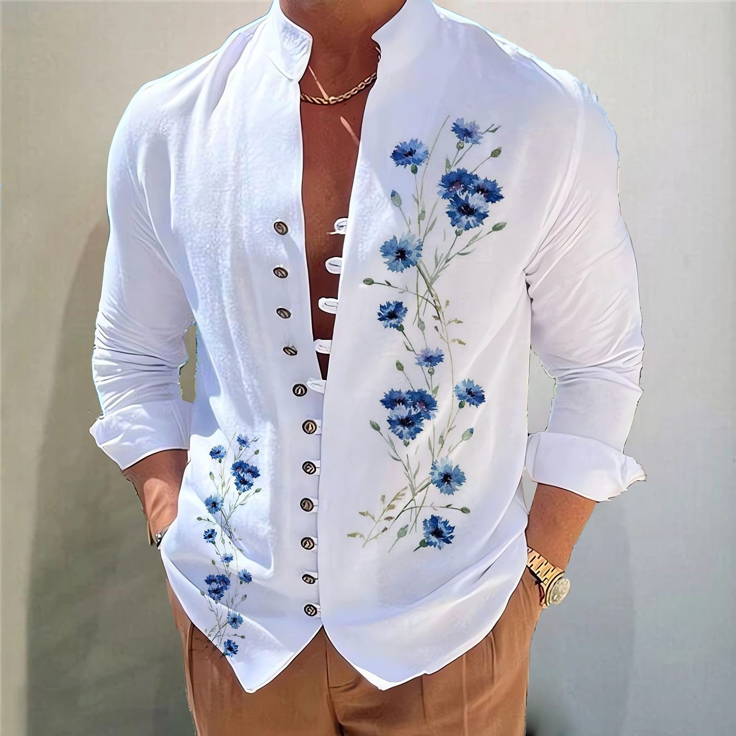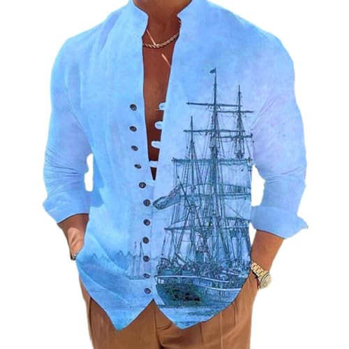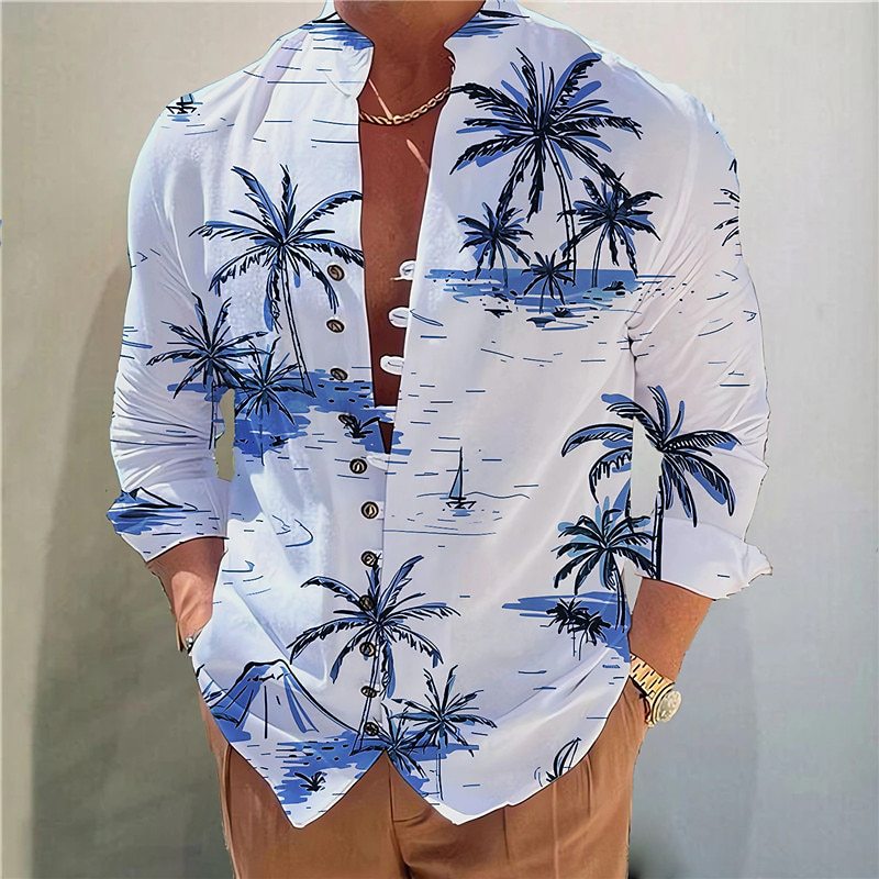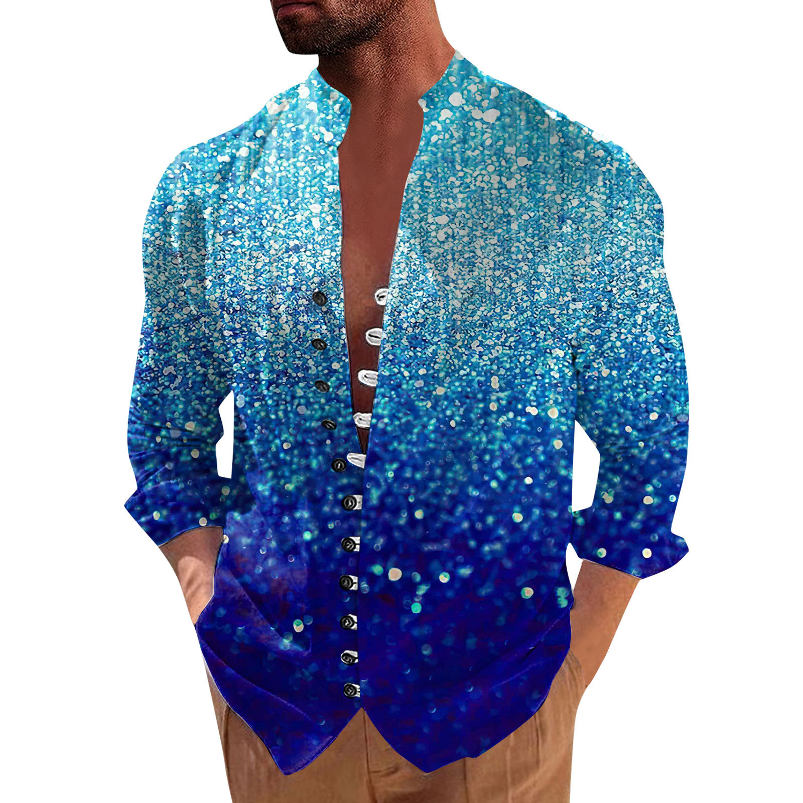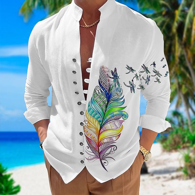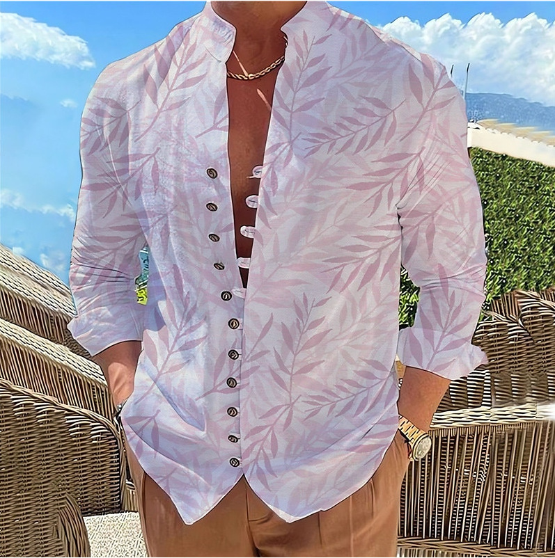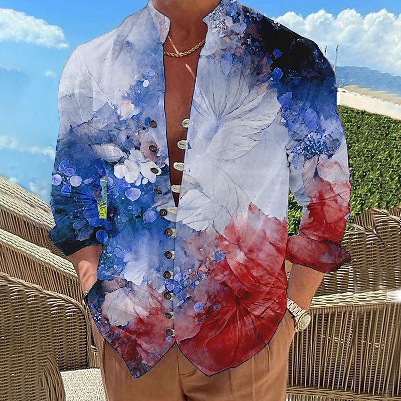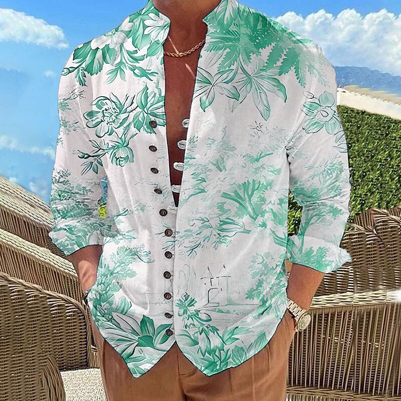 테무 국경 플랫폼 스탠드 칼라 멀티 버튼 긴 소매 남성 셔츠 봄과 가을 패션 캐주얼 3D 프린트 카디건