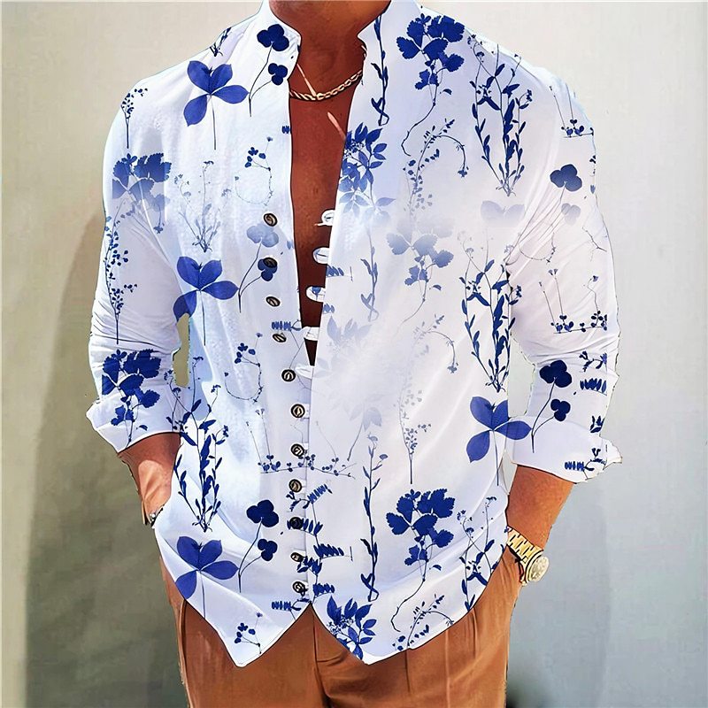 테무 국경 플랫폼 스탠드 칼라 멀티 버튼 긴 소매 남성 셔츠 봄과 가을 패션 캐주얼 3D 프린트 카디건스토어 가기