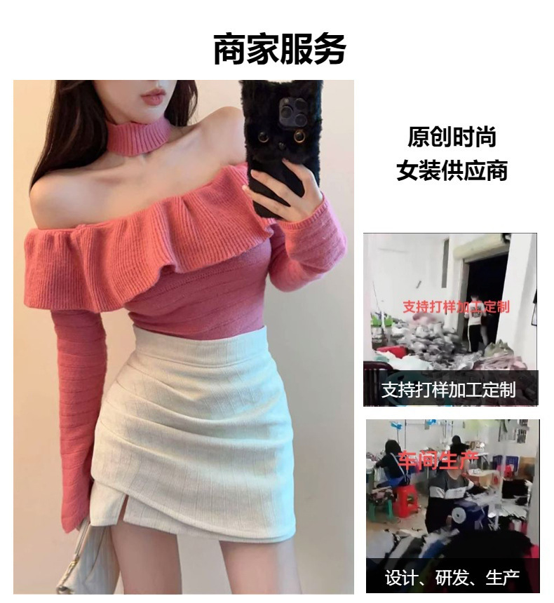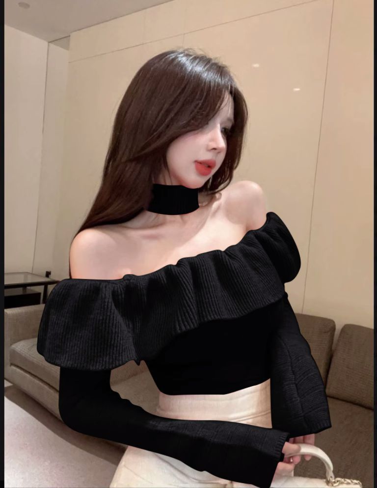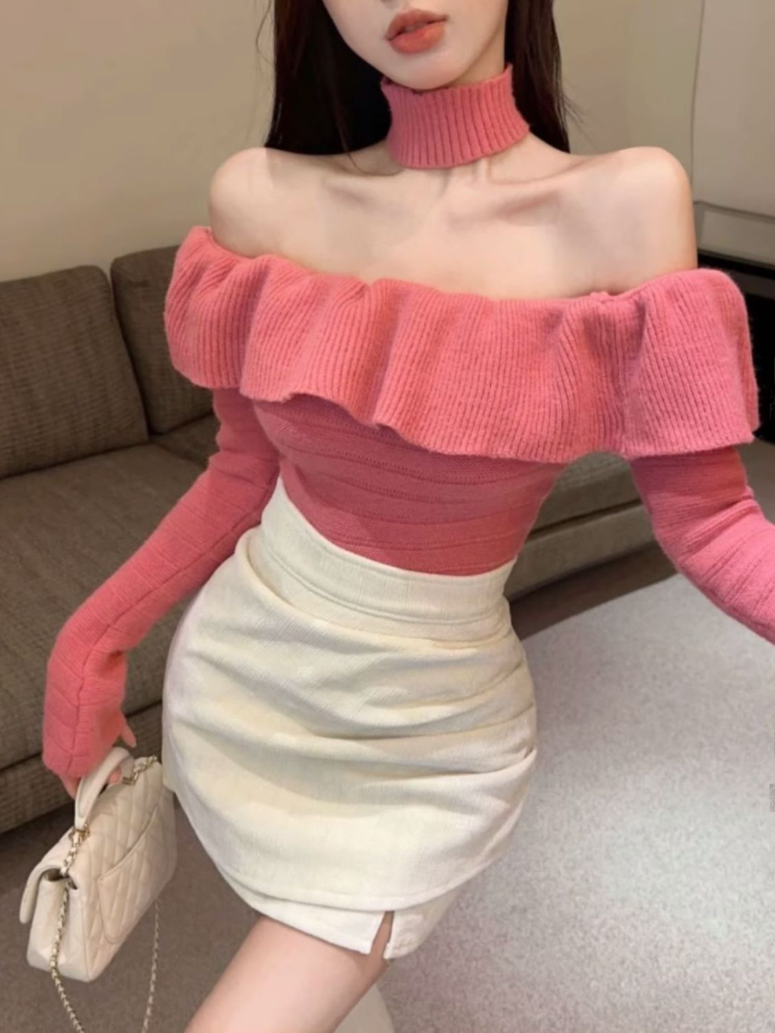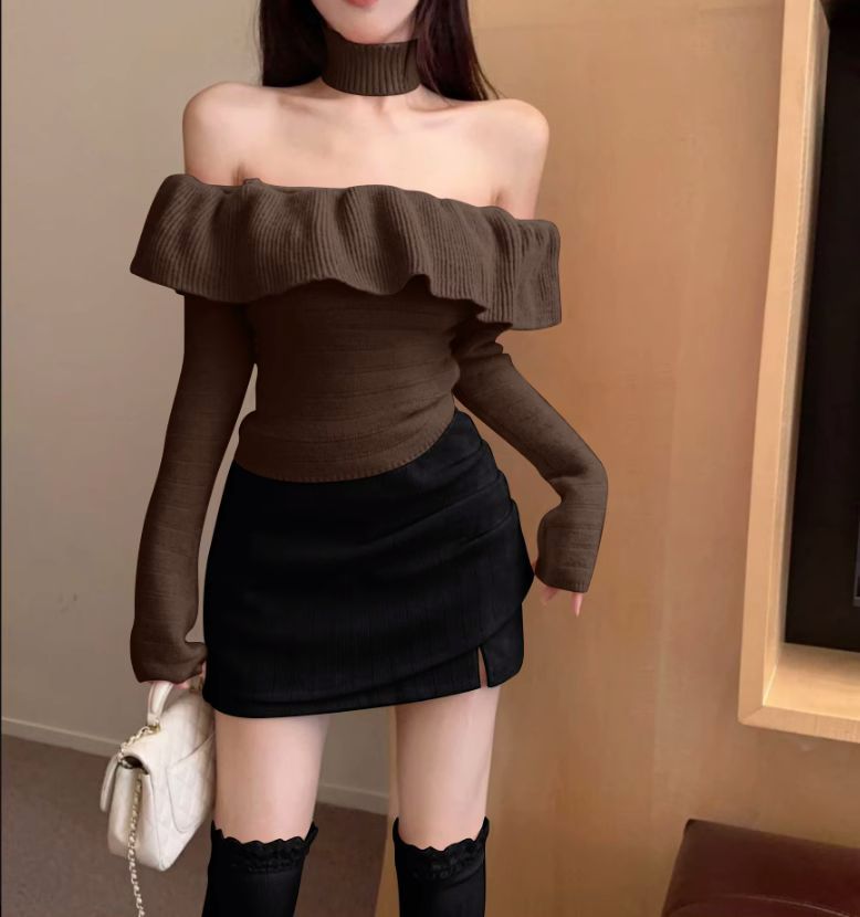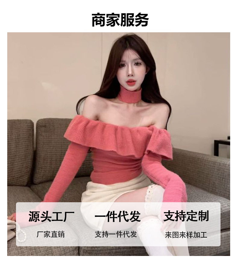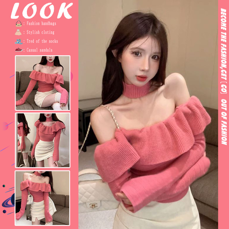 스파이스 걸스 순수한 나이 웨스턴 스타일 니트웨어 탑 여성의 가을과 겨울 긴 소매 주름진 어깨베이스 스웨터