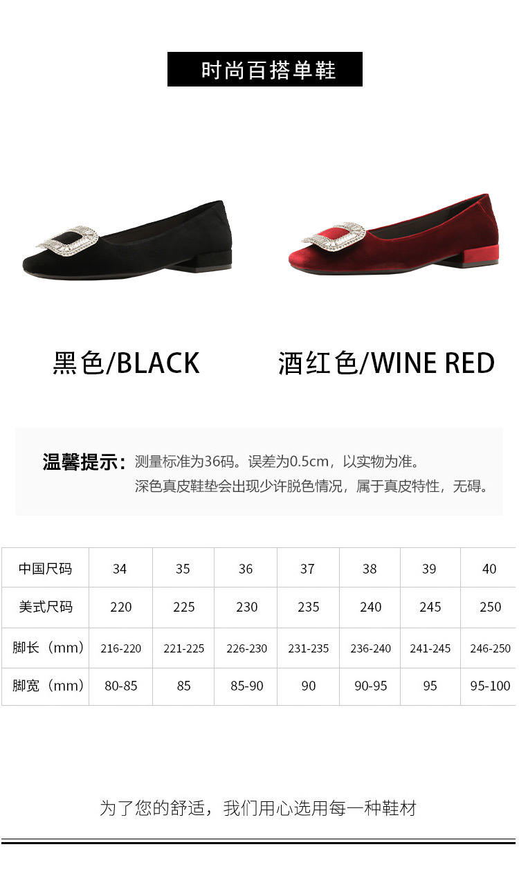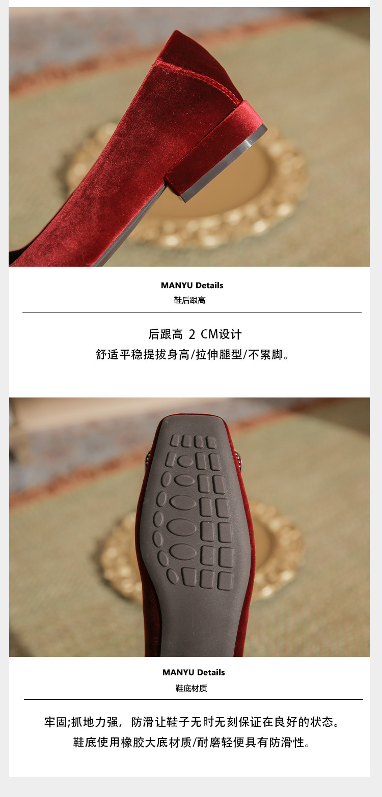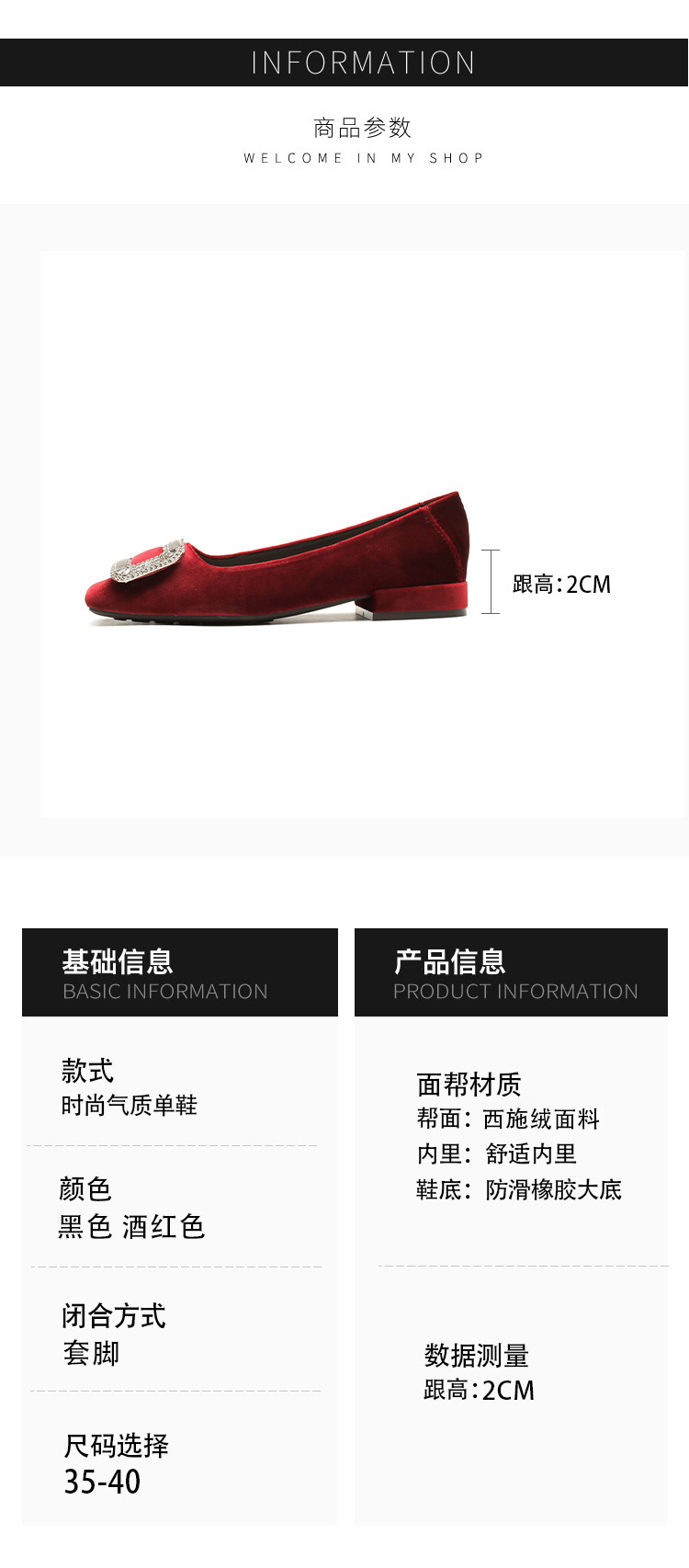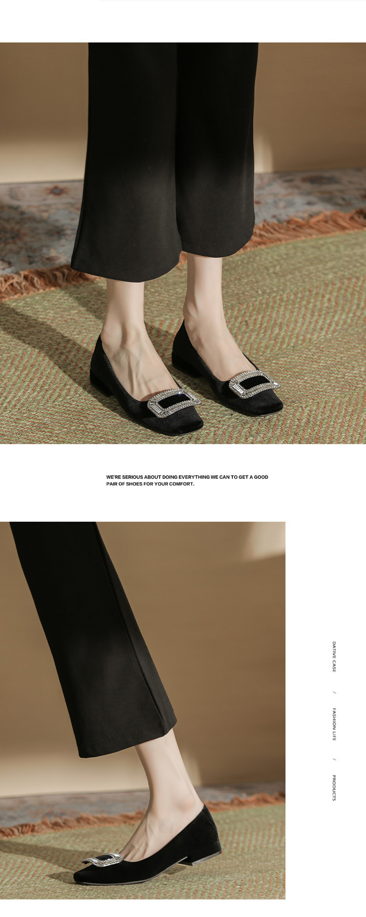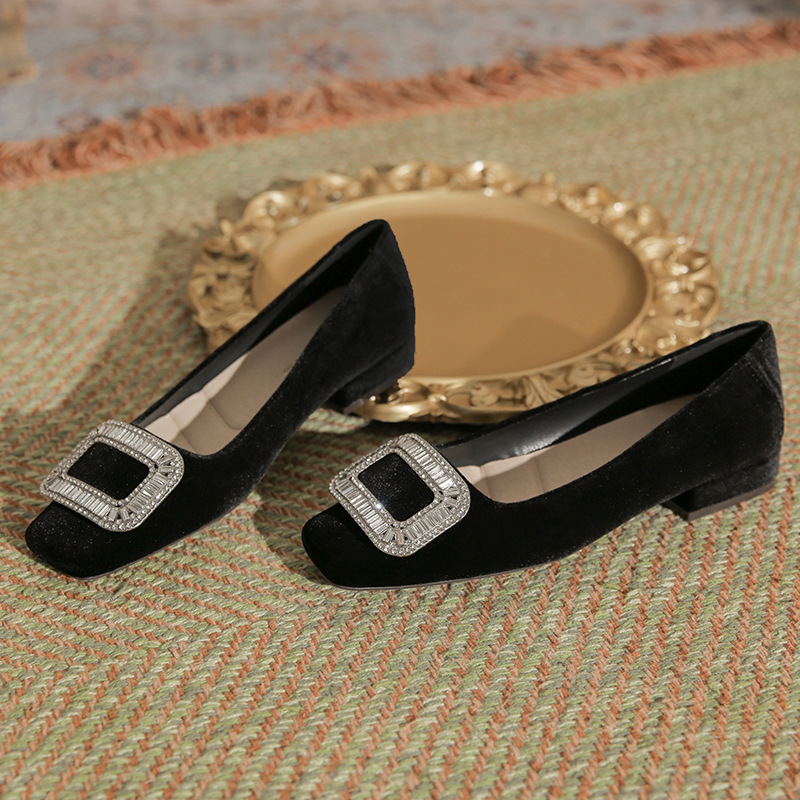스퀘어 힐 플랫 슈즈 여성의 2024 새로운 가을과 겨울 블랙 스웨이드 연회 편안한 우아한 사이버 연예인 라인석 신발스토어 가기