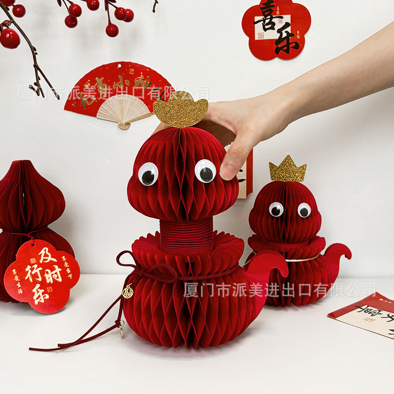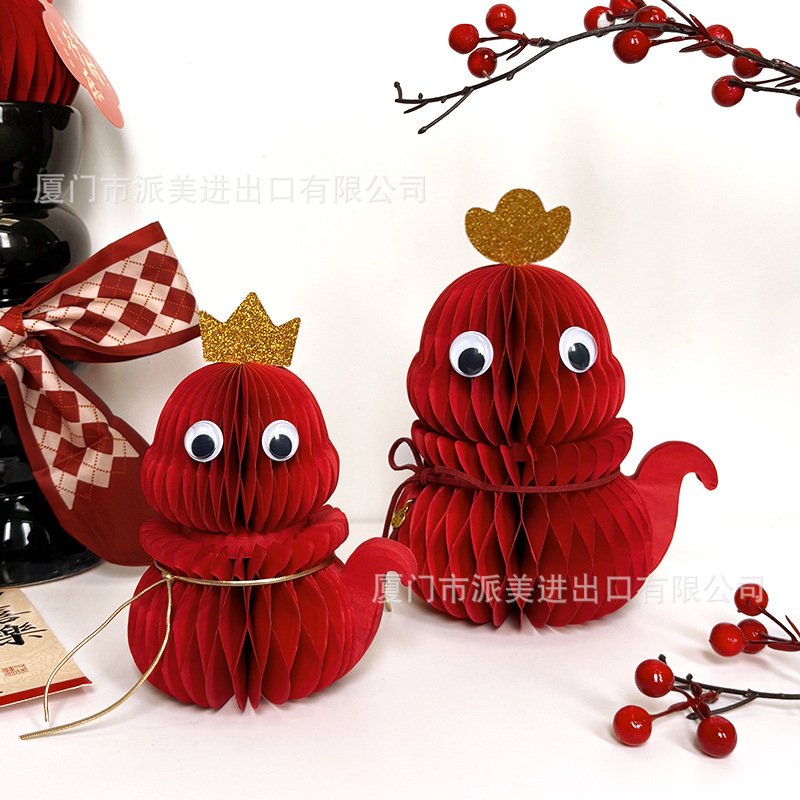 재고 2025 년 뱀 하이 엔드 두꺼운 종이 마스코트 리치 뱀 여왕 뱀 벌집 장식품 새해 분위기 장식