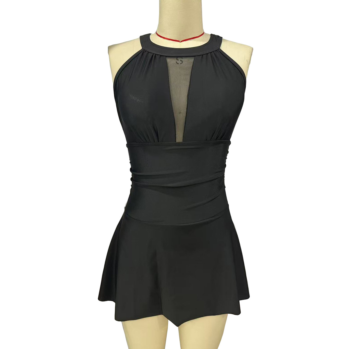 유럽과 미국의 국경 간 새로운 섹시한 수영복 고급 솔리드 컬러 원피스 메쉬 교수형 목 소매 수영복 여성용