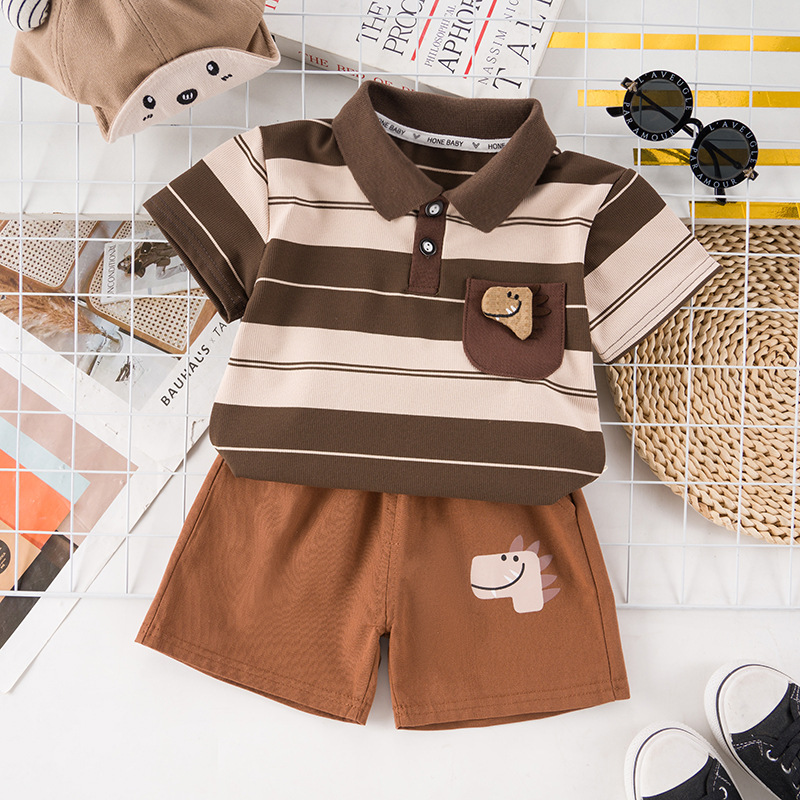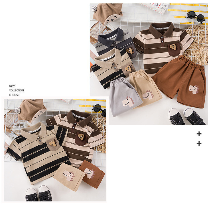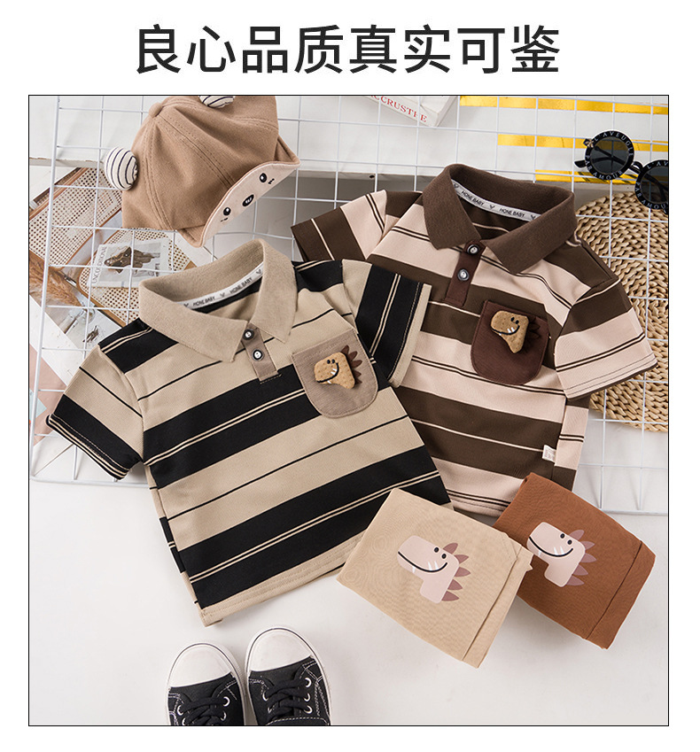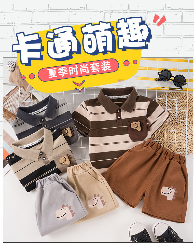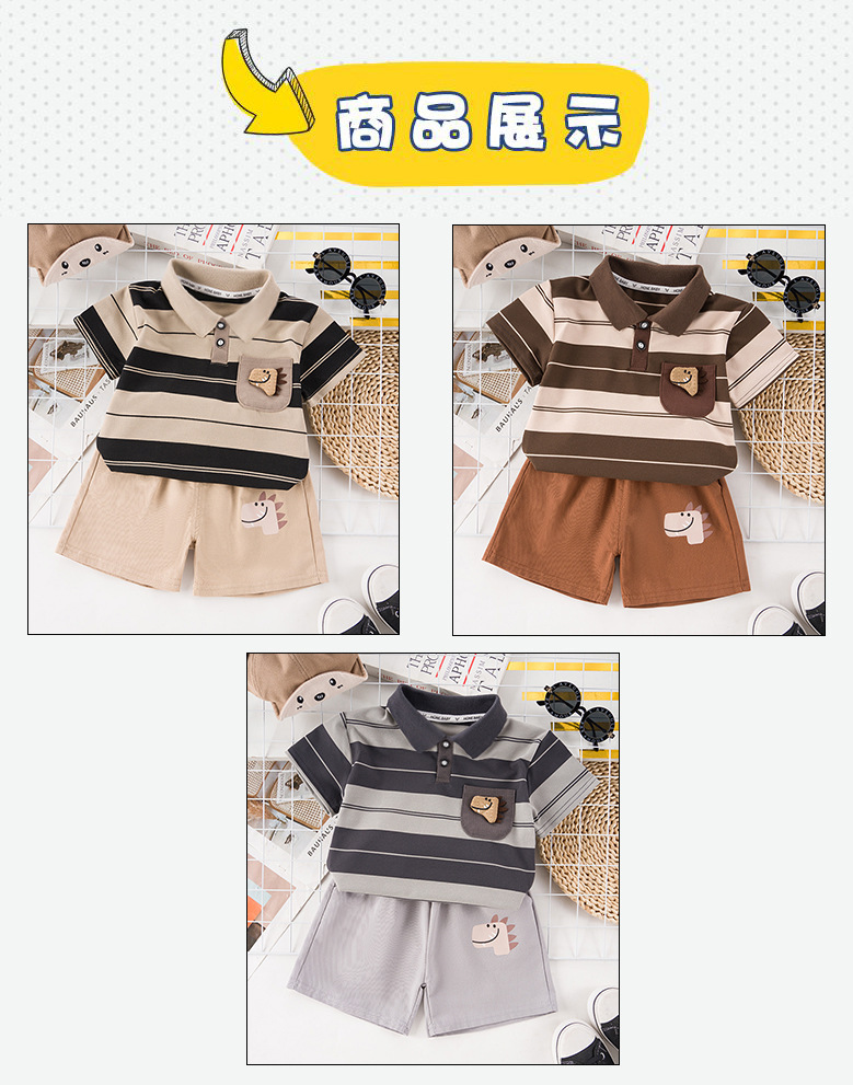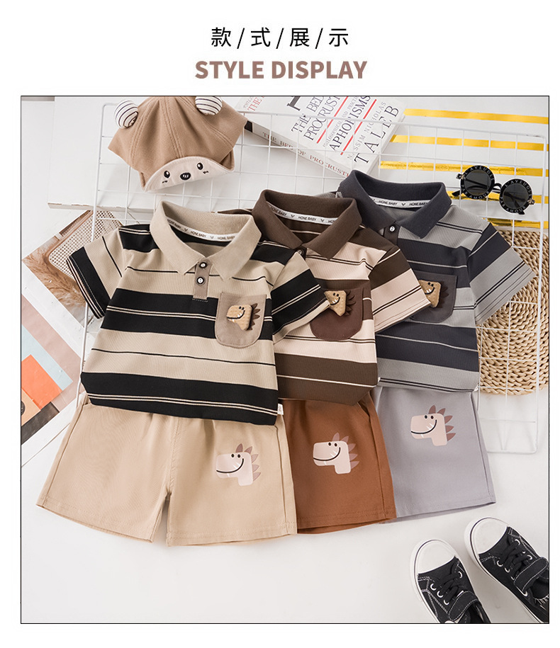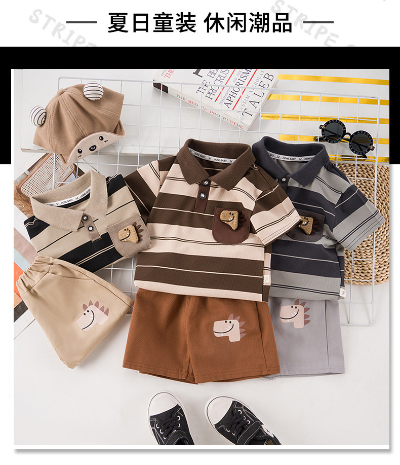 여름 소년 스트라이프 3 차원 공룡 머리 반팔 세트 새로운 스타일 유행 반팔 세트 대외 무역스토어 가기
