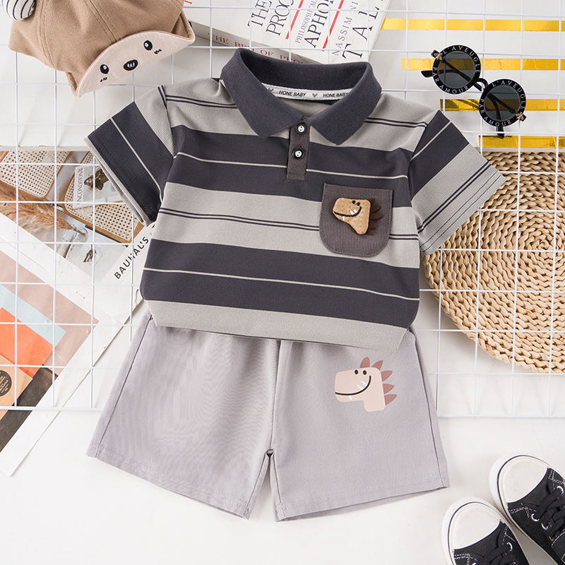 여름 소년 스트라이프 3 차원 공룡 머리 반팔 세트 새로운 스타일 유행 반팔 세트 대외 무역