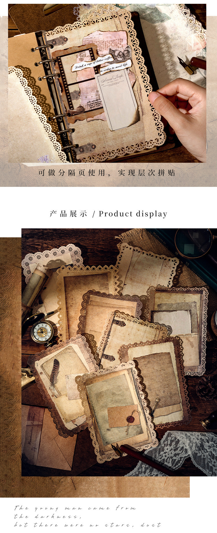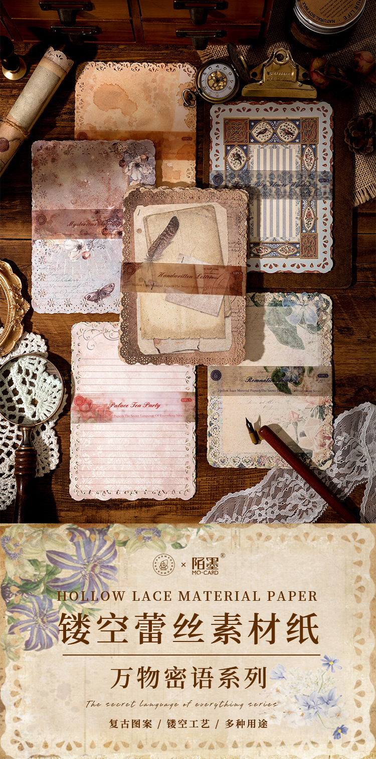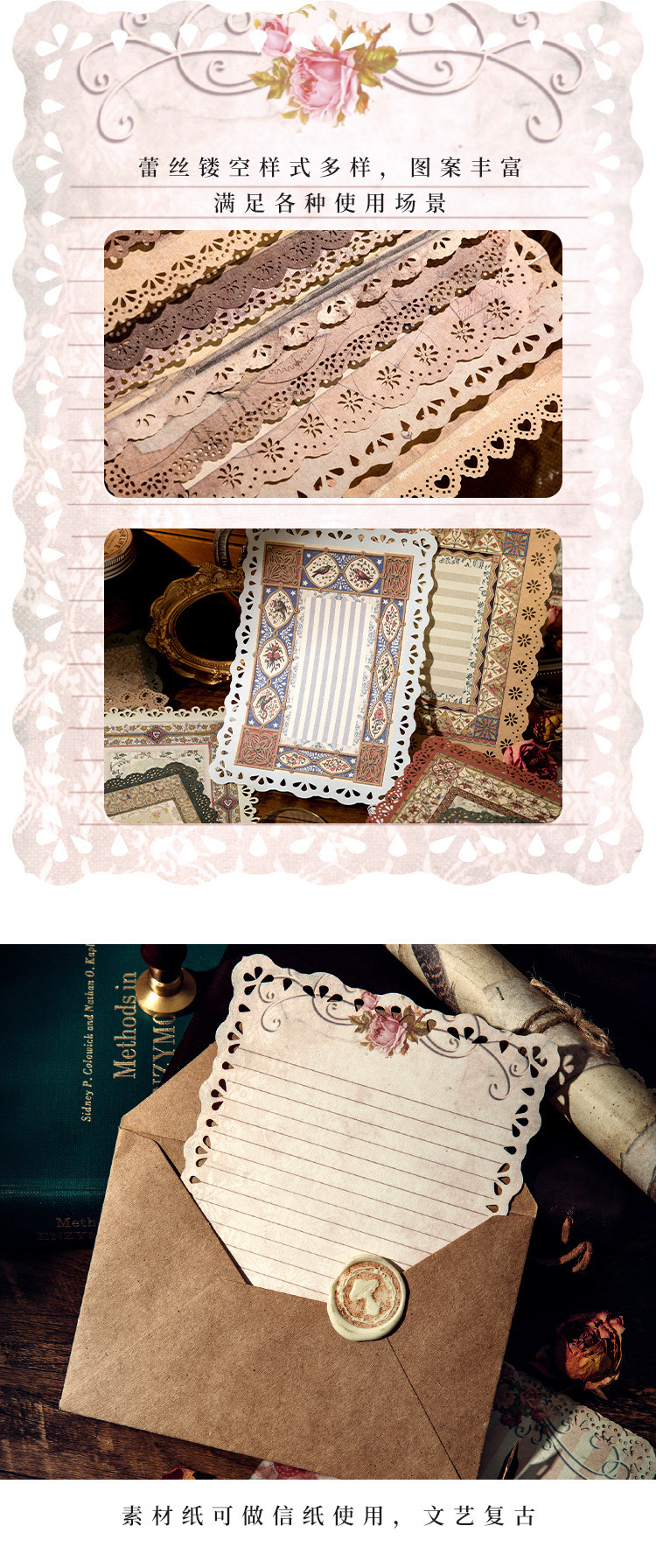 모 모 시리즈 소재 종이 복고풍 중공 레이스 오래된 책 페이지 손 계정 콜라주 백킹스토어 가기