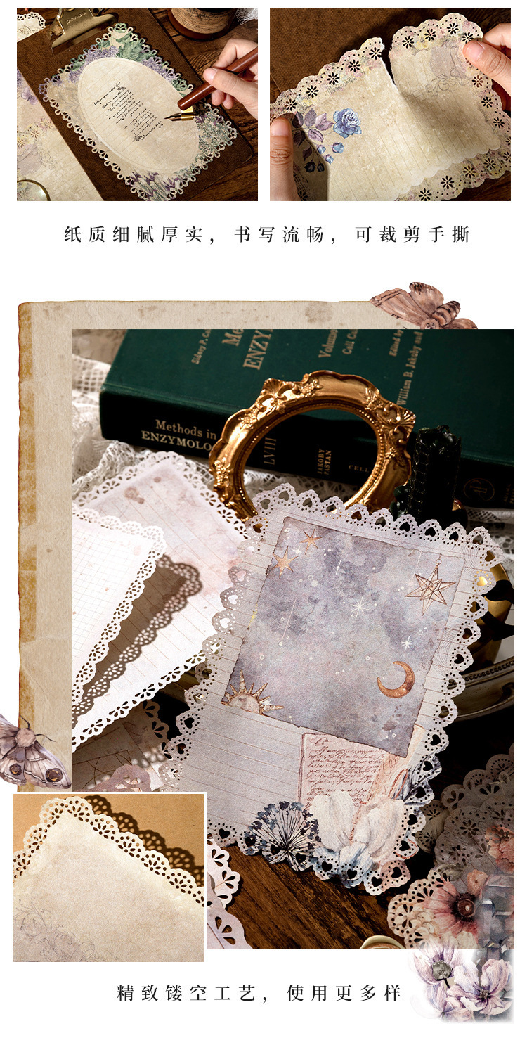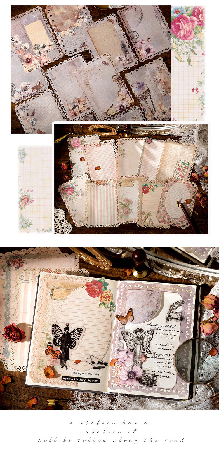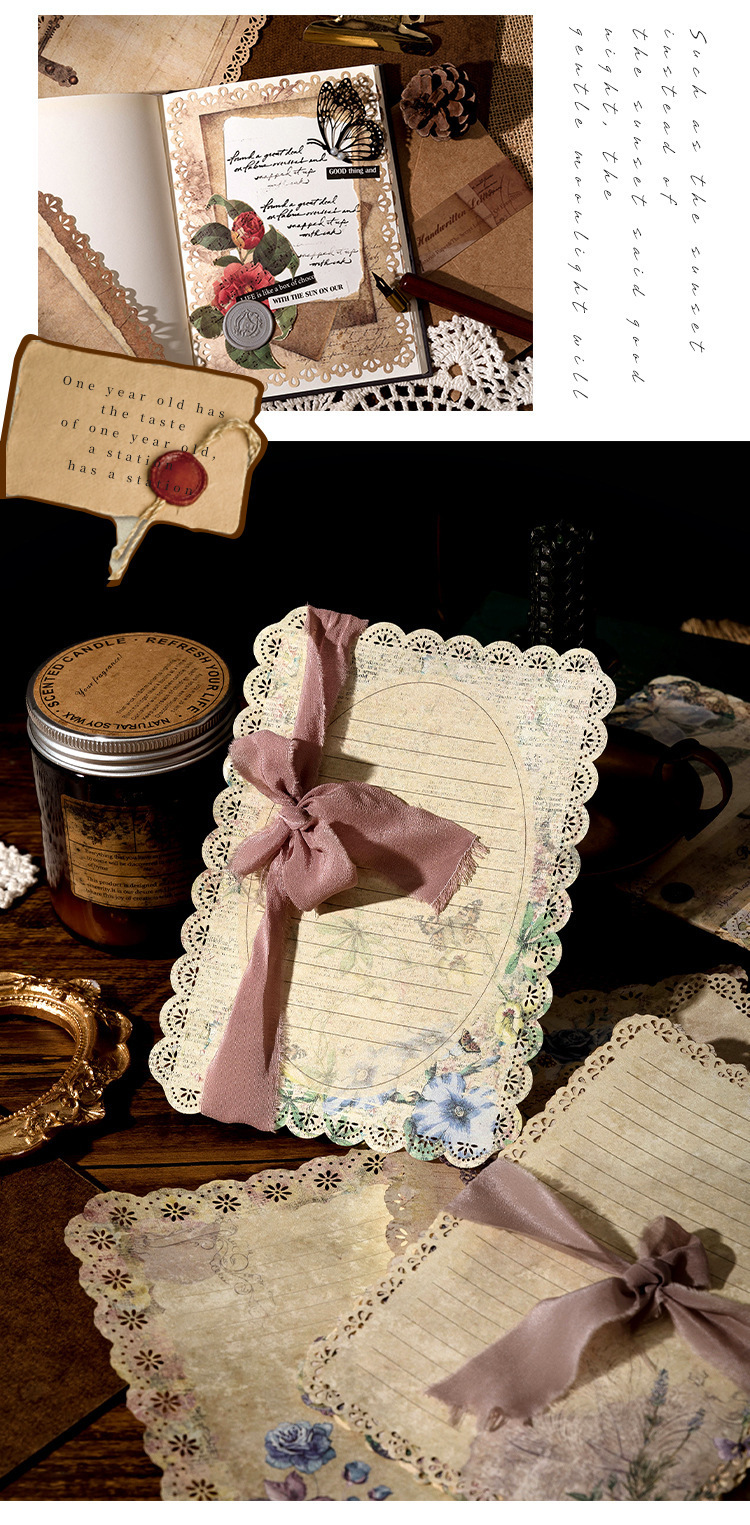 모 모 시리즈 소재 종이 복고풍 중공 레이스 오래된 책 페이지 손 계정 콜라주 백킹스토어 가기