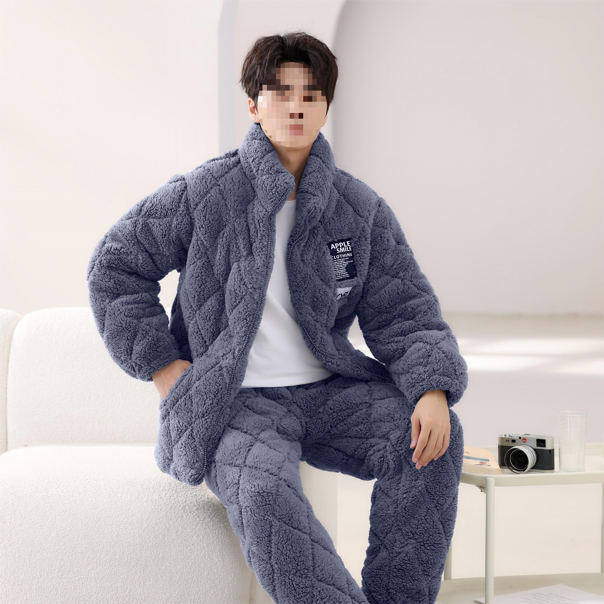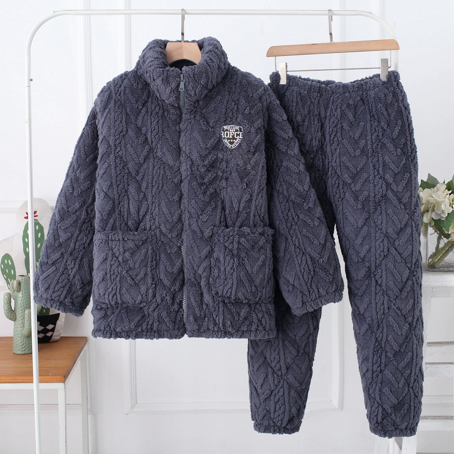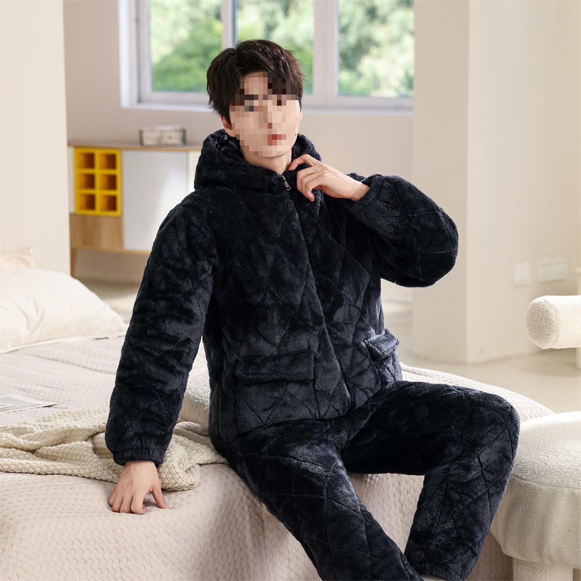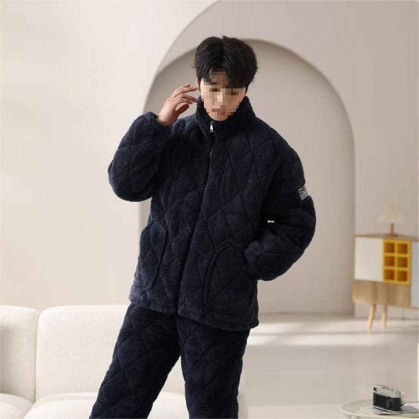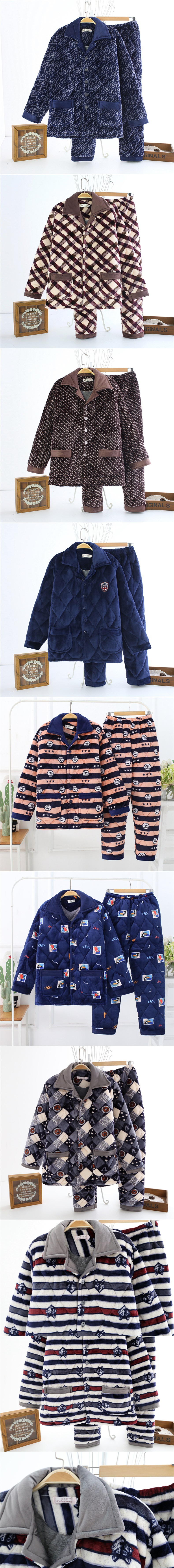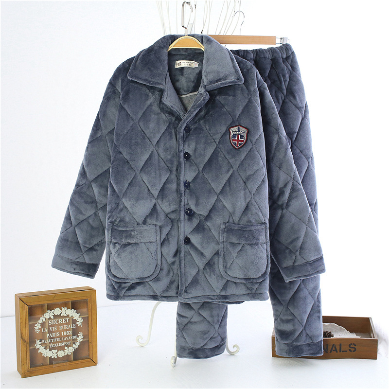 특별 통관 겨울 3 층 두꺼운 산호 양털 퀼트 파자마 남성 기모 플란넬 홈 의류 세트스토어 가기