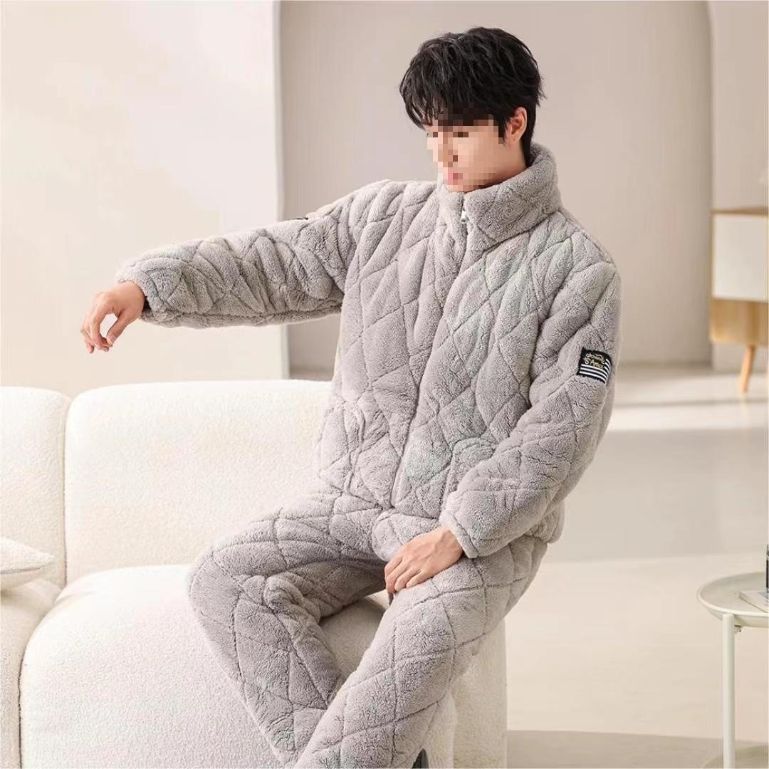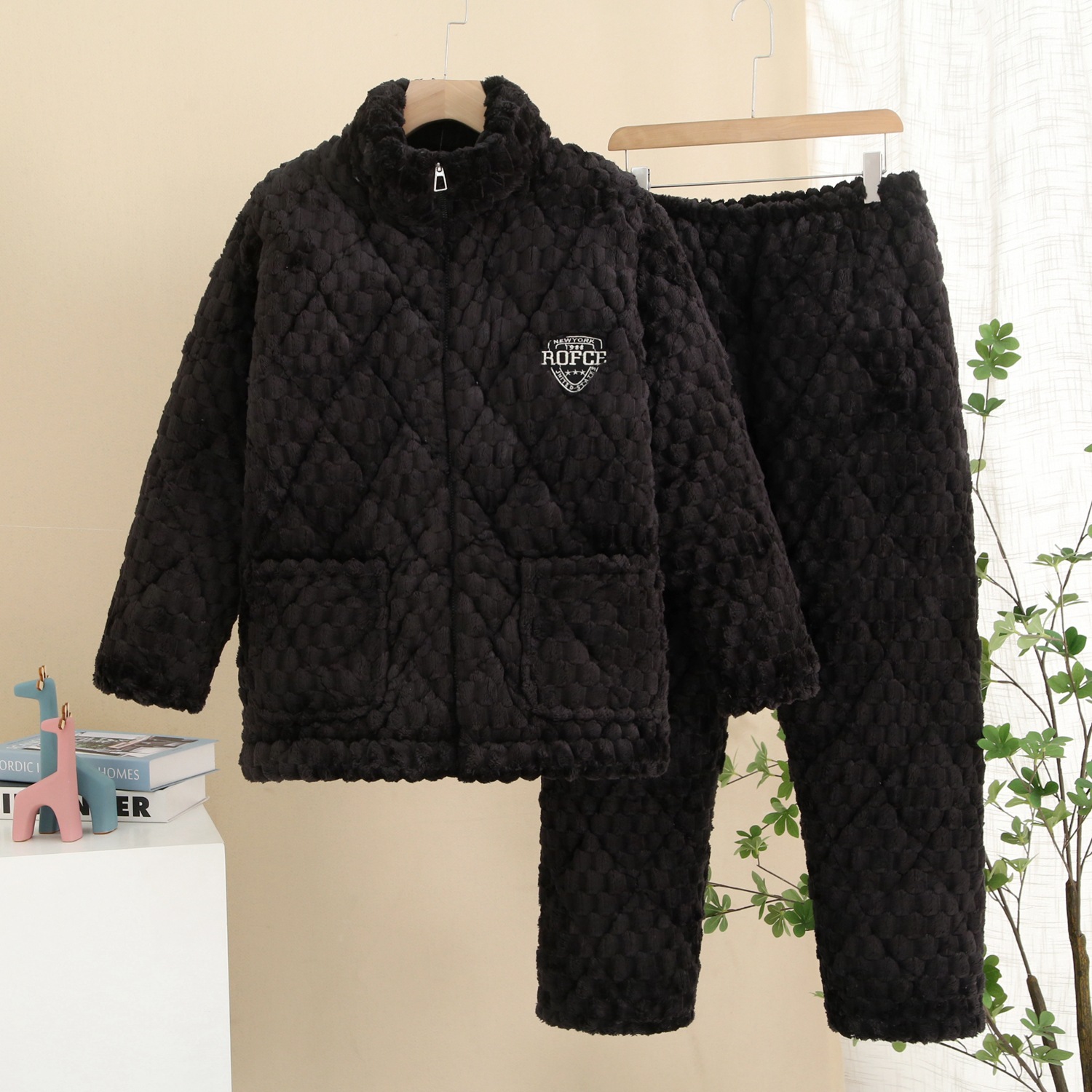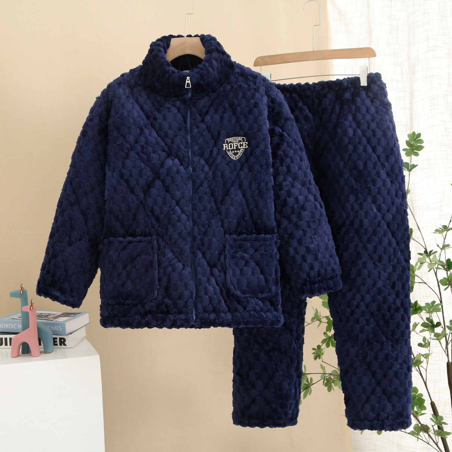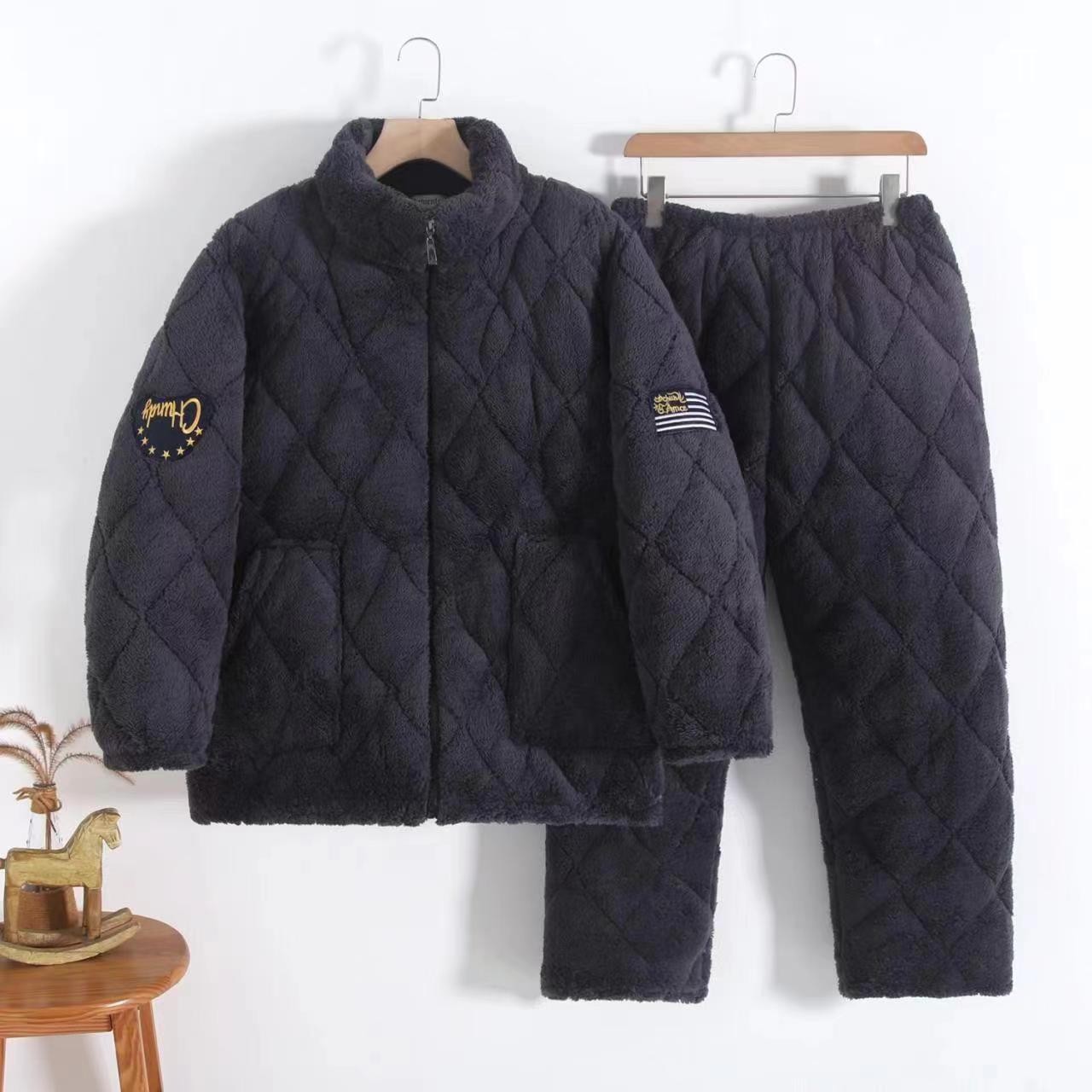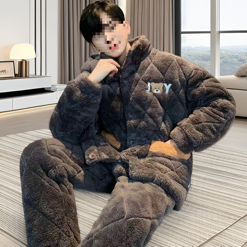 특별 통관 겨울 3 층 두꺼운 산호 양털 퀼트 파자마 남성 기모 플란넬 홈 의류 세트스토어 가기