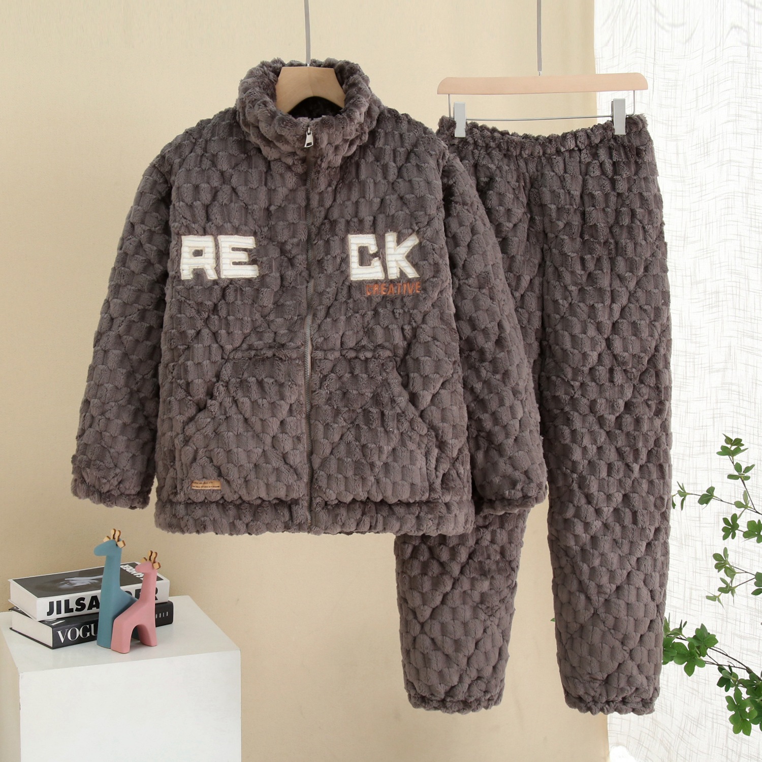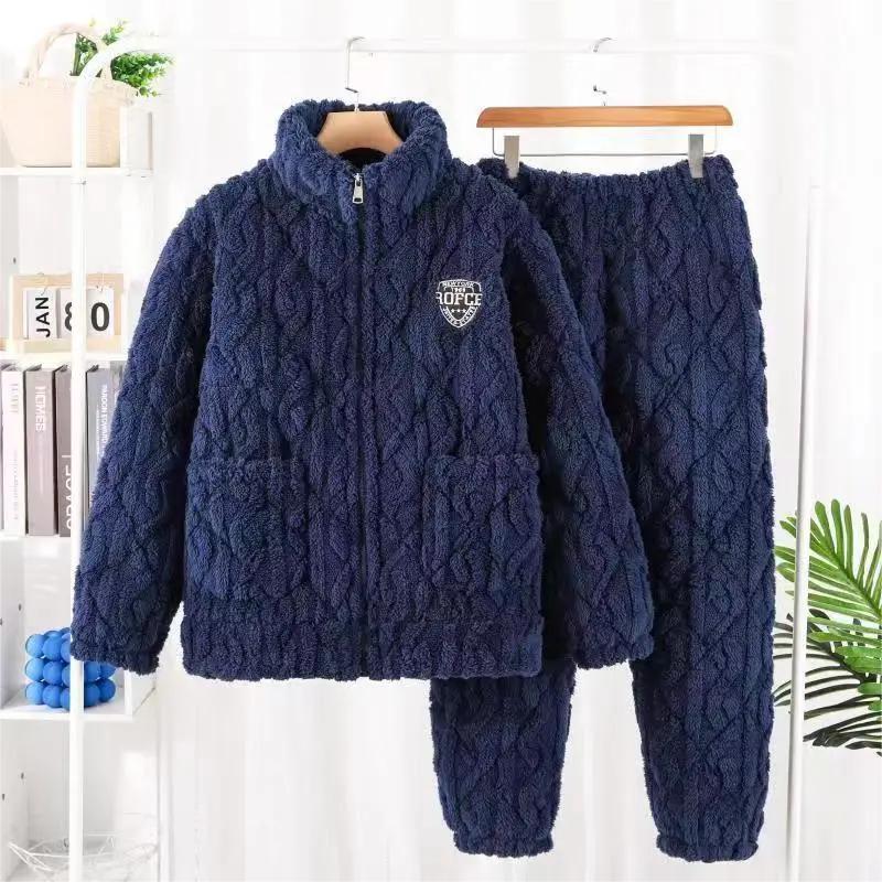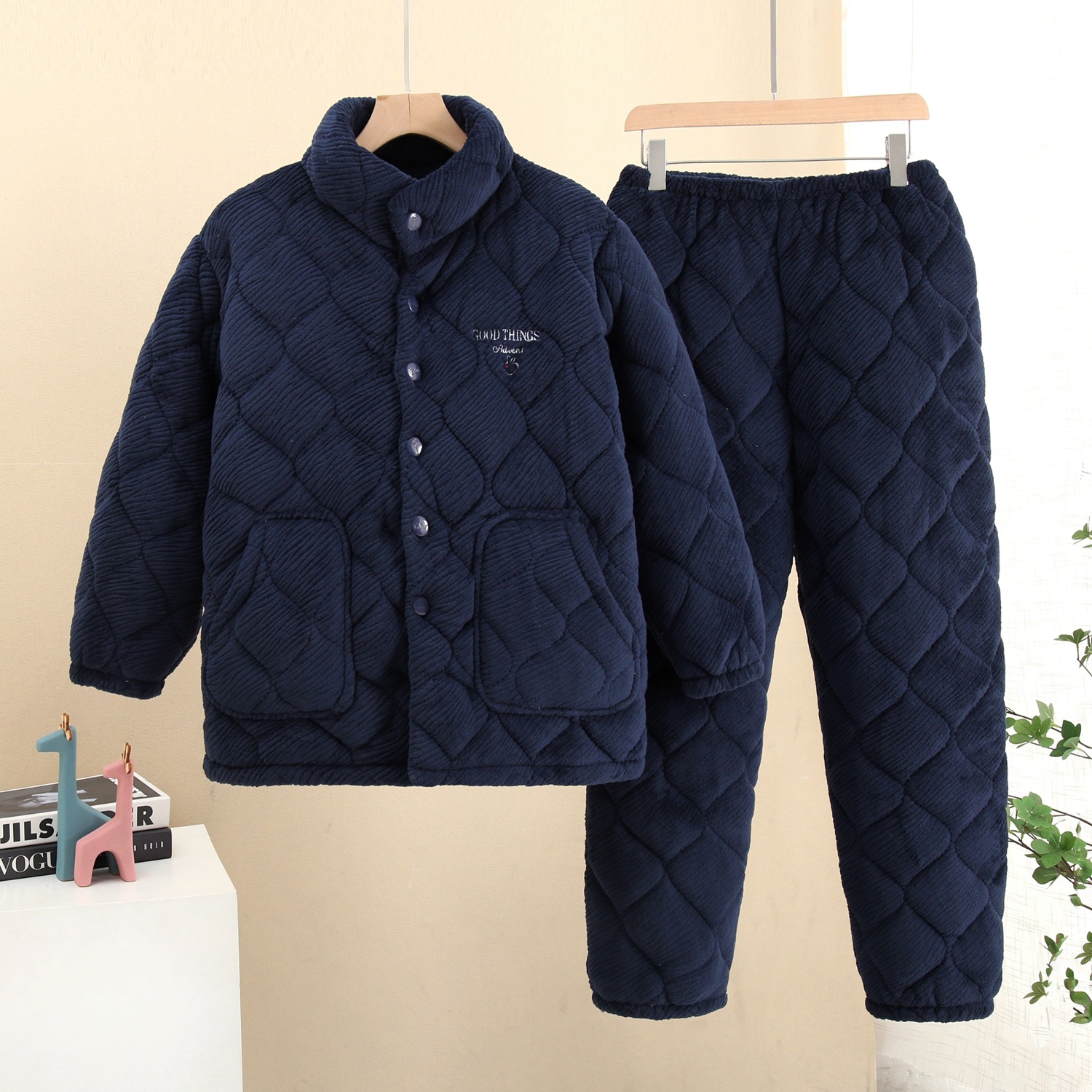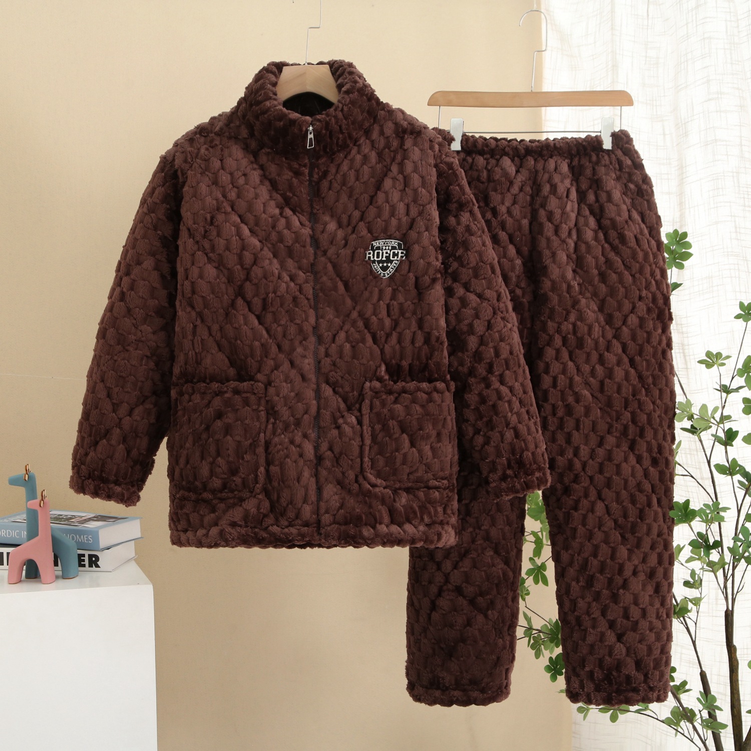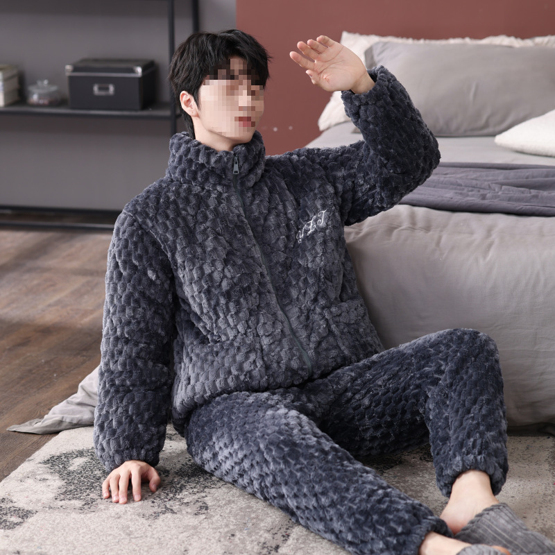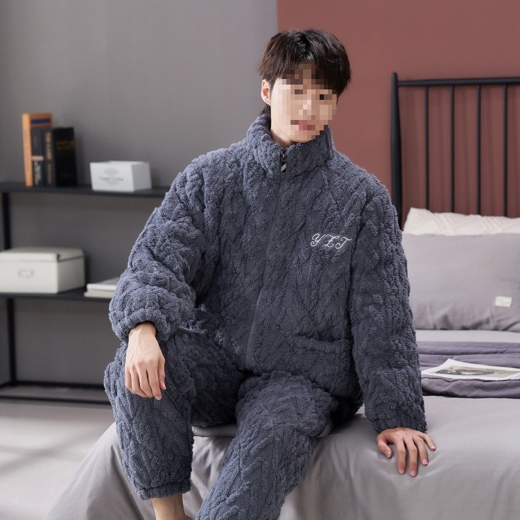 특별 통관 겨울 3 층 두꺼운 산호 양털 퀼트 파자마 남성 기모 플란넬 홈 의류 세트스토어 가기