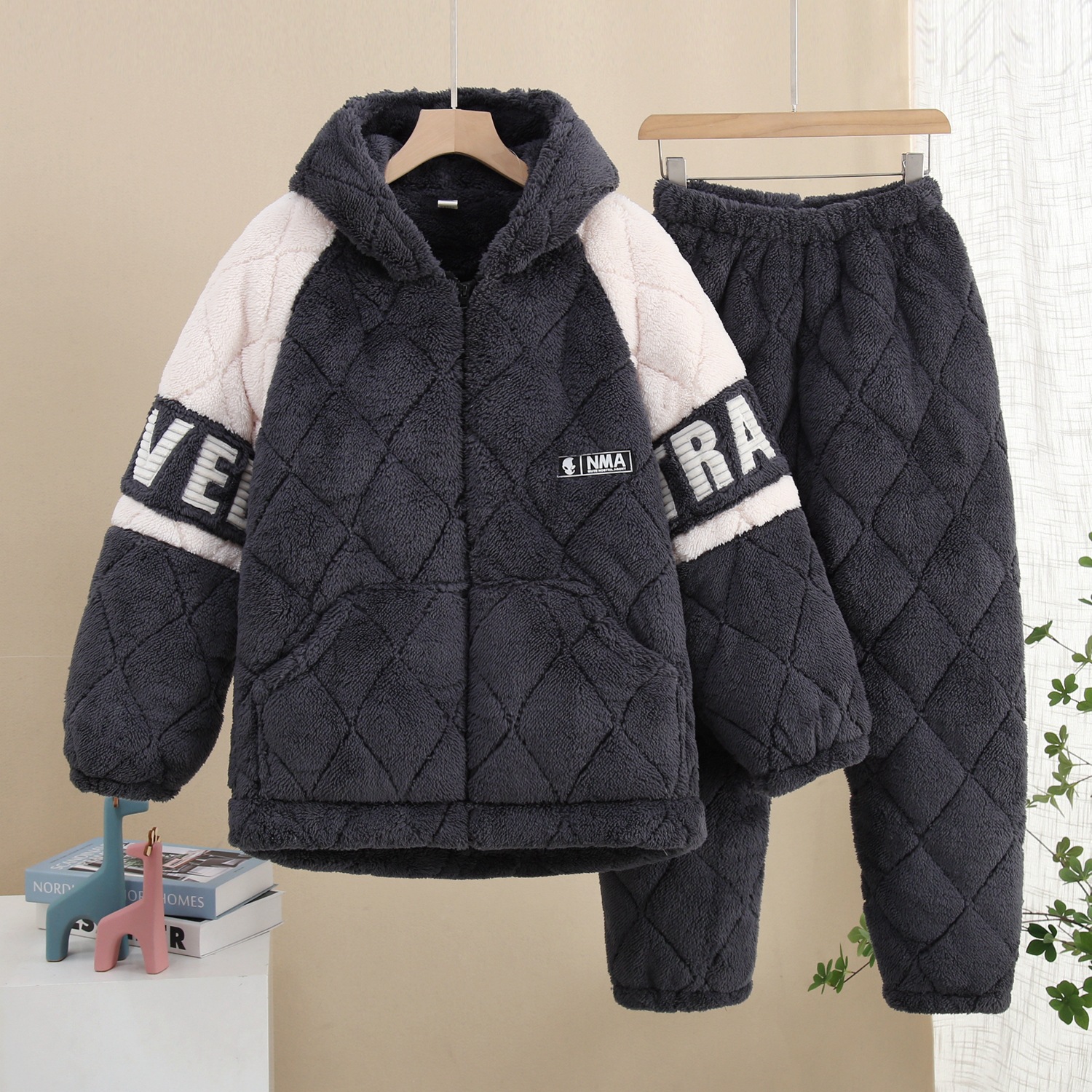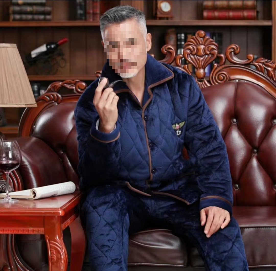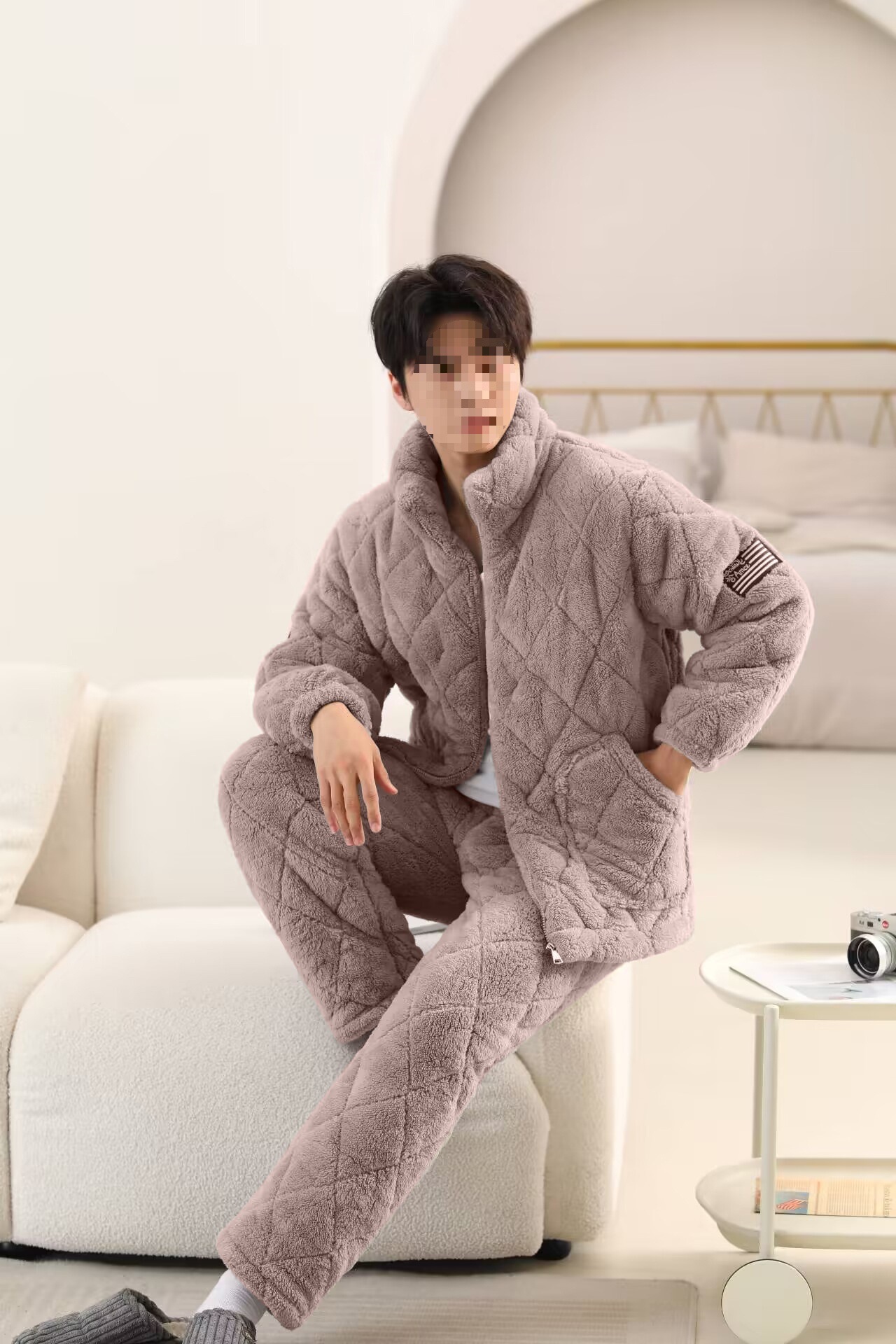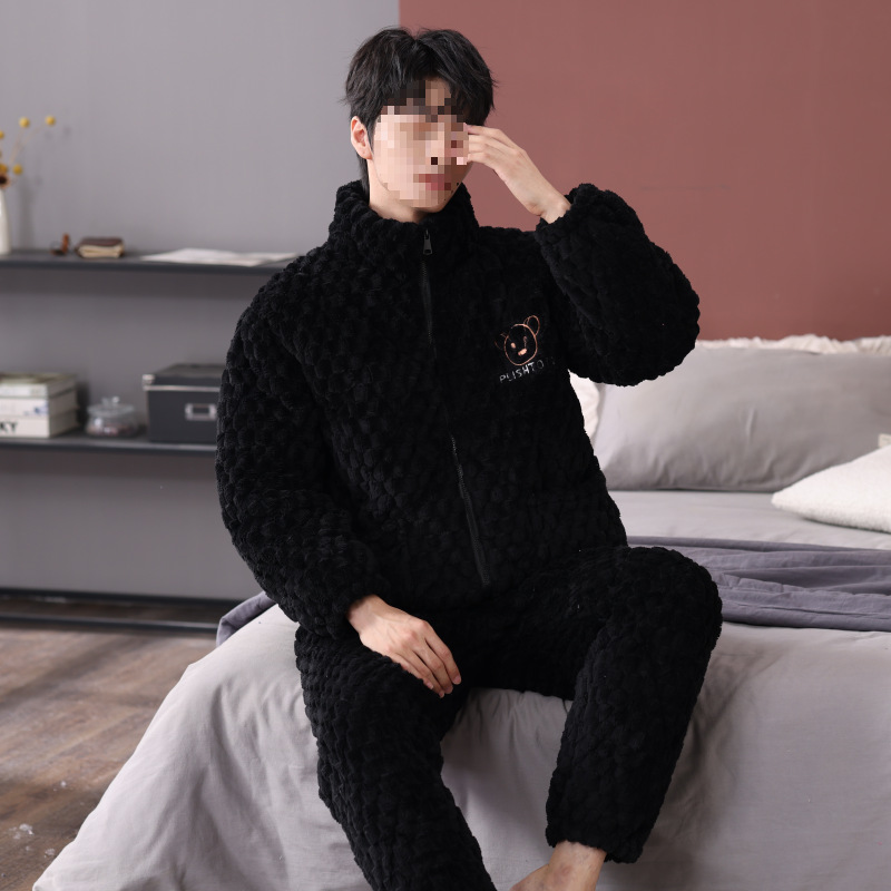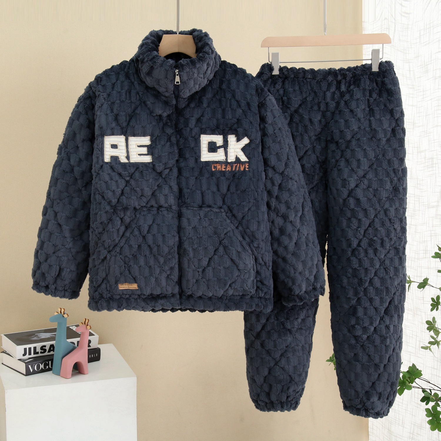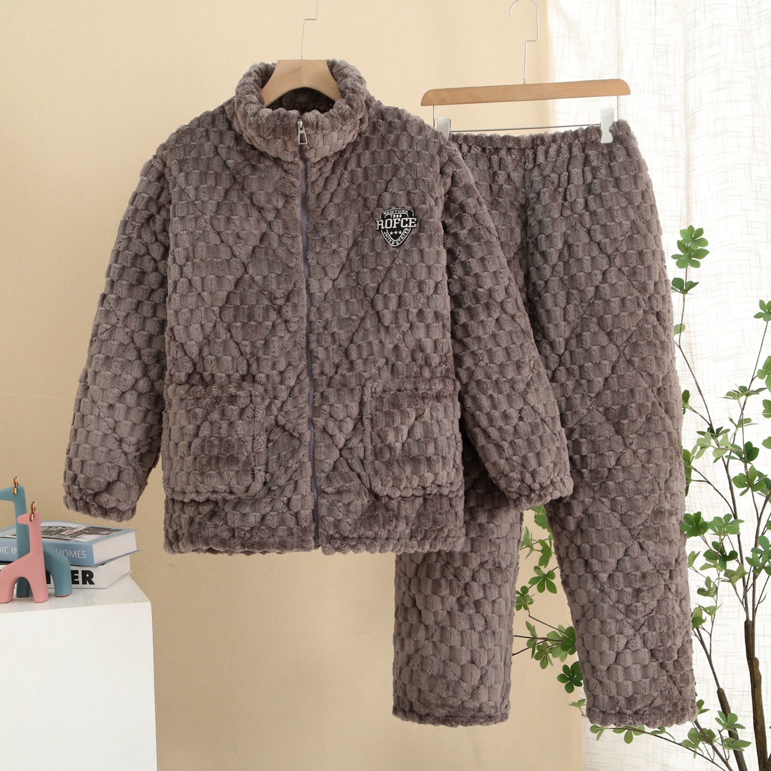 특별 통관 겨울 3 층 두꺼운 산호 양털 퀼트 파자마 남성 기모 플란넬 홈 의류 세트스토어 가기