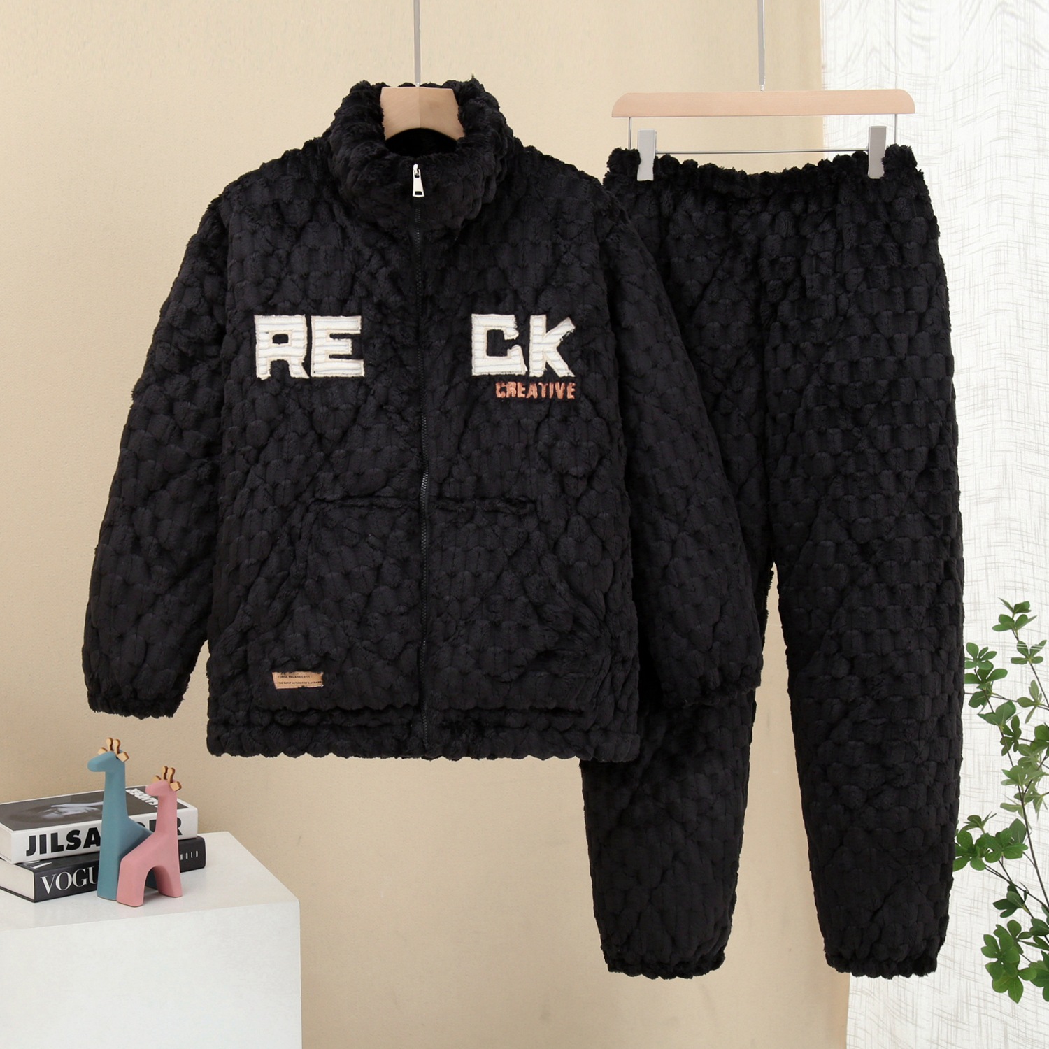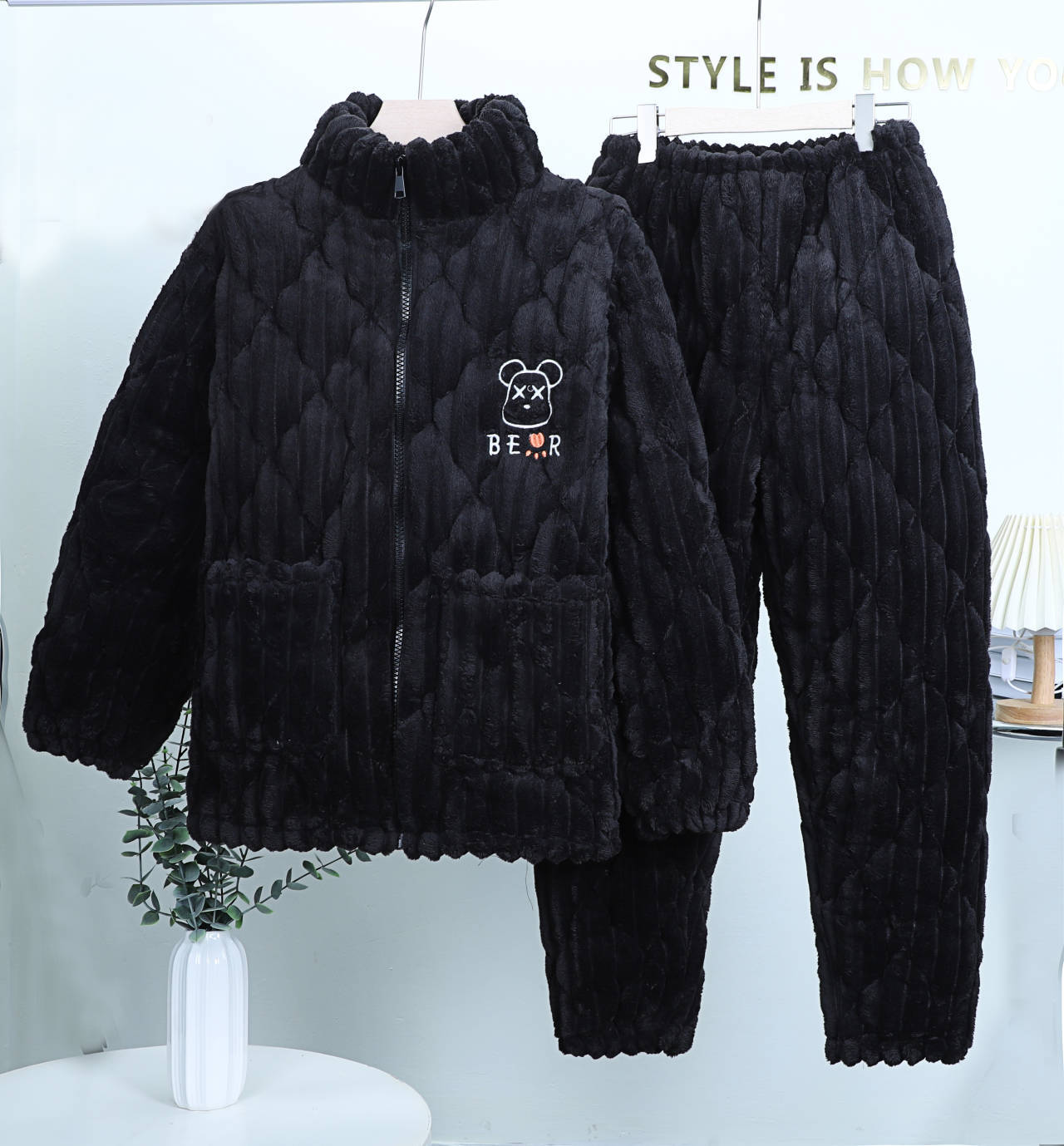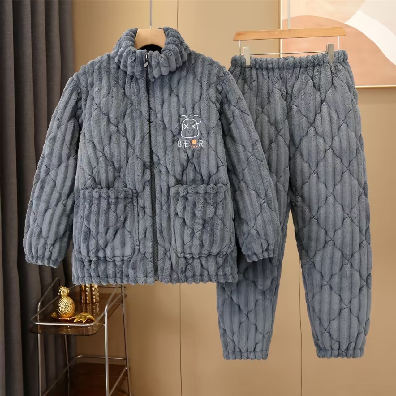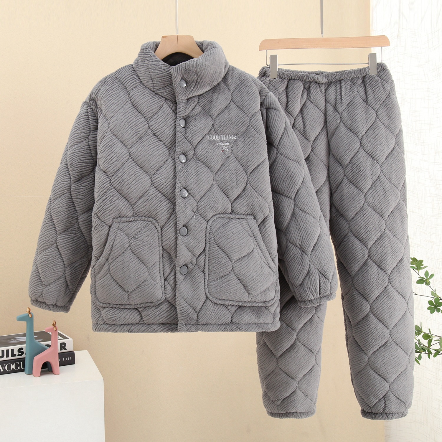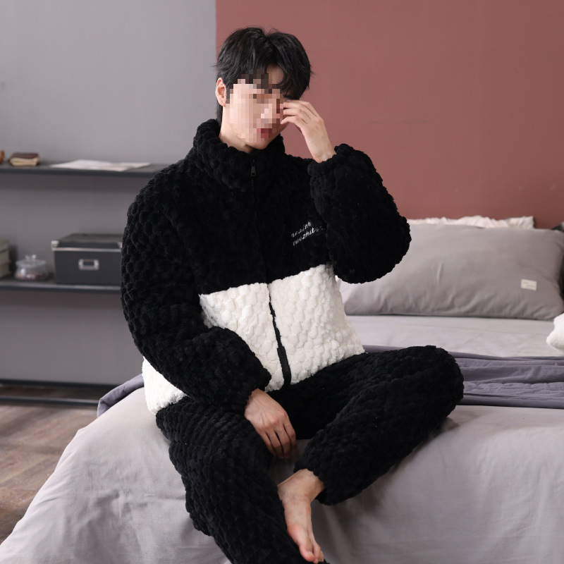특별 통관 겨울 3 층 두꺼운 산호 양털 퀼트 파자마 남성 기모 플란넬 홈 의류 세트스토어 가기
