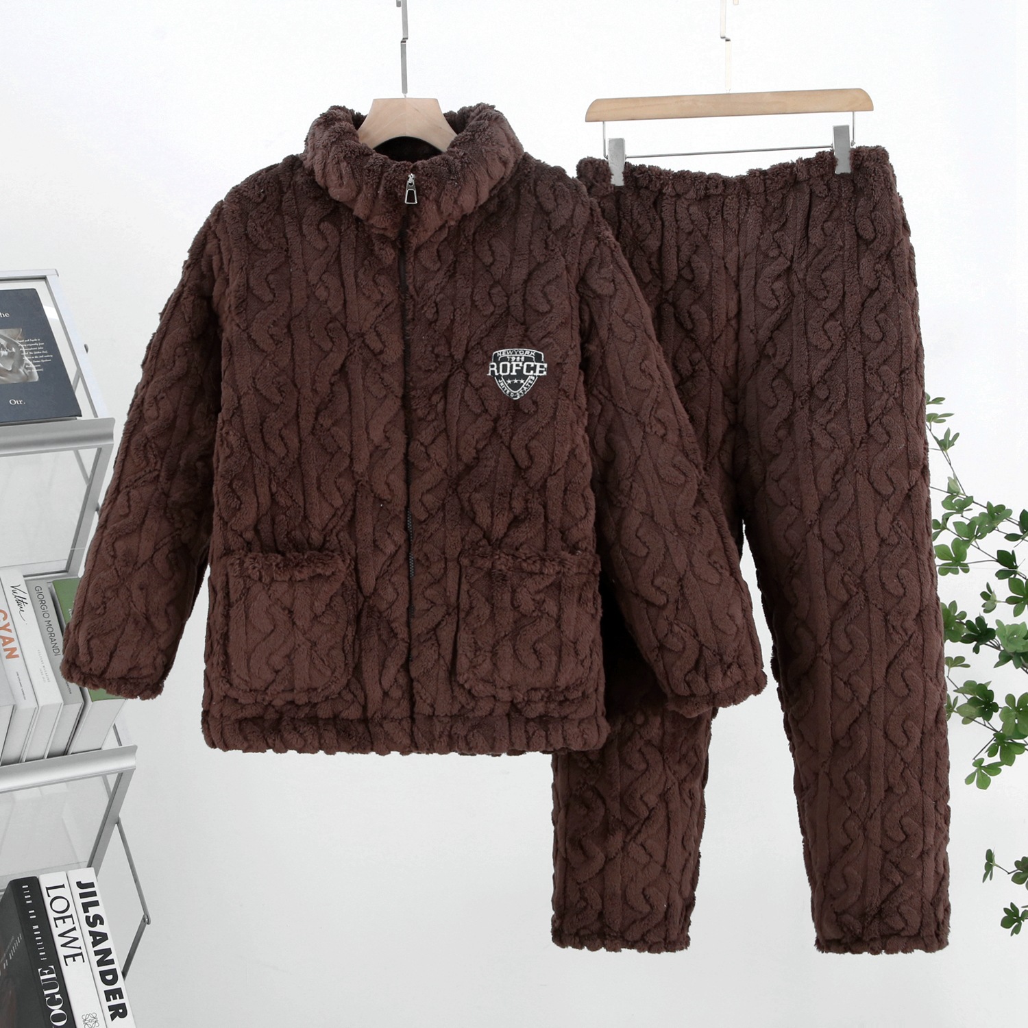 특별 통관 겨울 3 층 두꺼운 산호 양털 퀼트 파자마 남성 기모 플란넬 홈 의류 세트