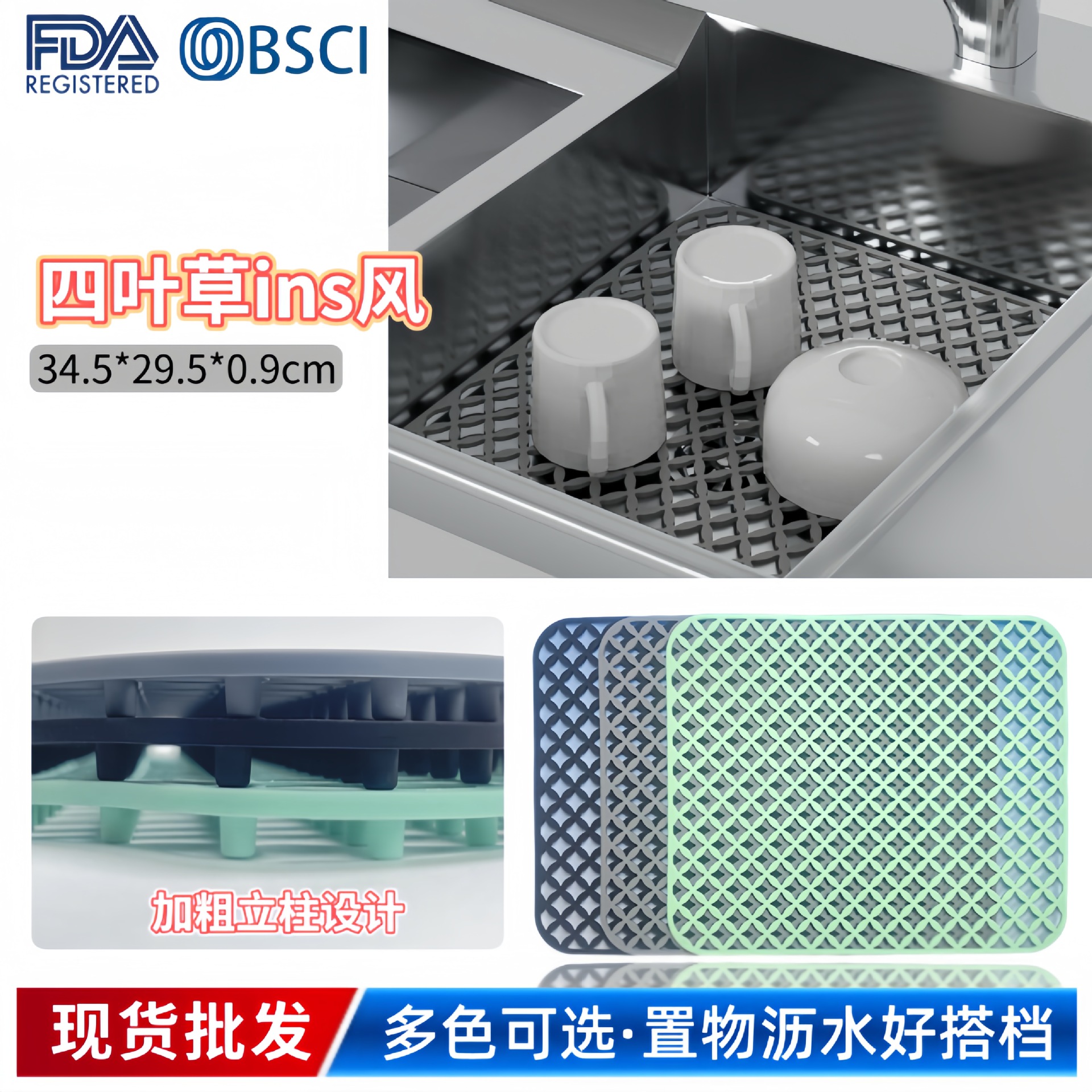 【四叶草水槽垫】 亚马逊硅胶厨房镂空水槽垫防滑隔热沥水水槽台面垫