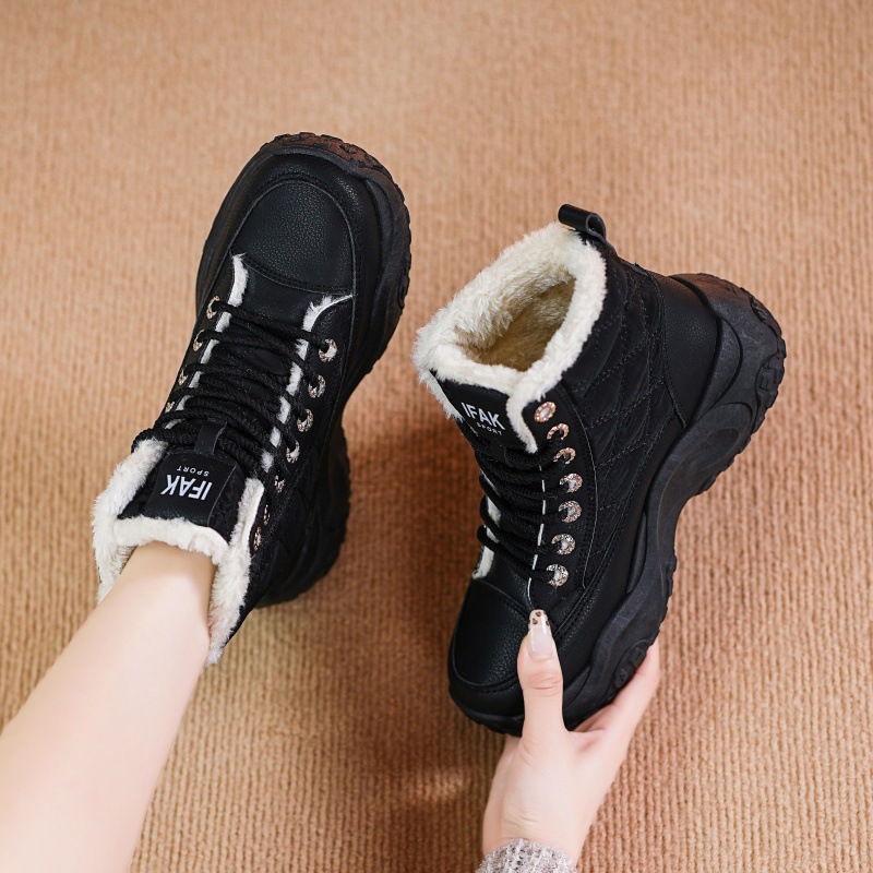 스노우 부츠 여성의 2024 새로운 겨울 기모 두꺼운 마틴 부츠 여성 신발 짧은 부츠 따뜻한 두꺼운 밑창 학생면 신발스토어 가기