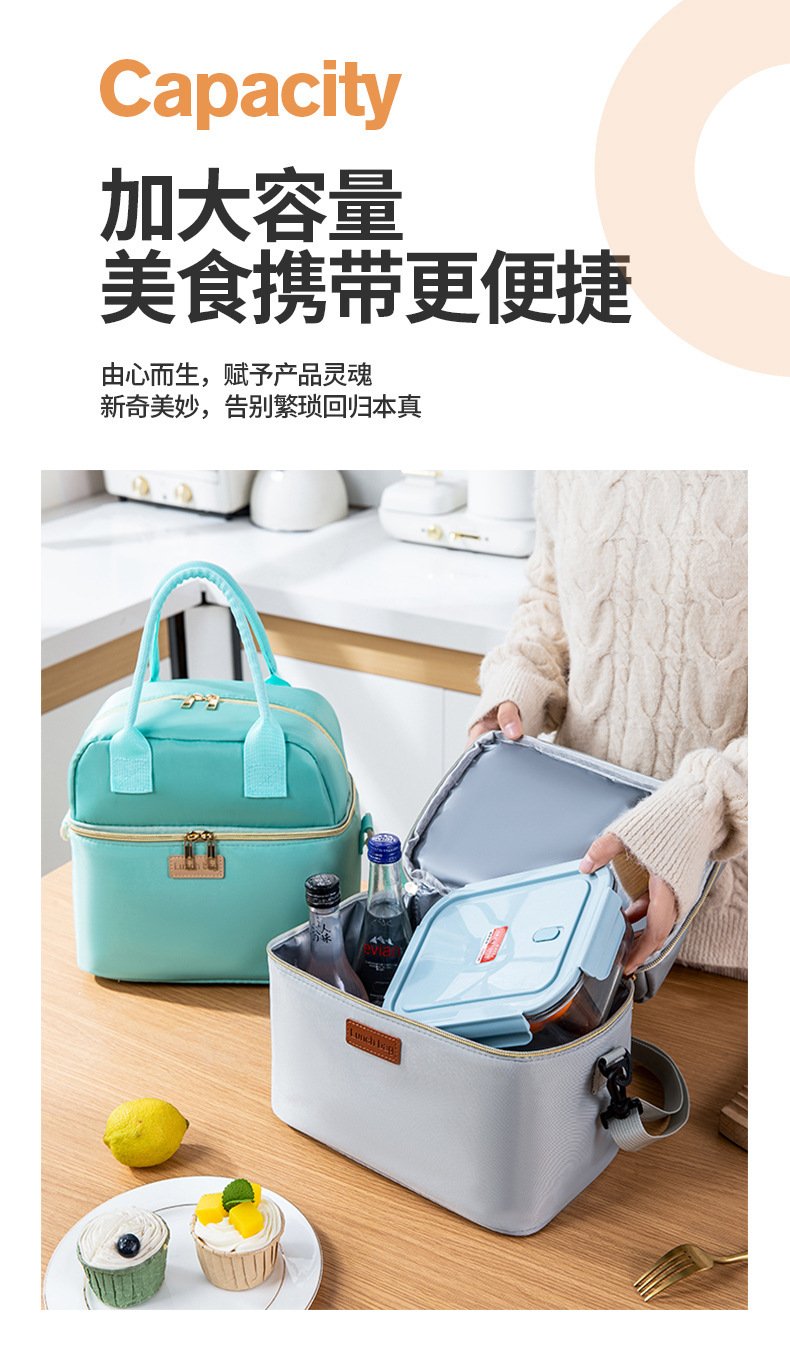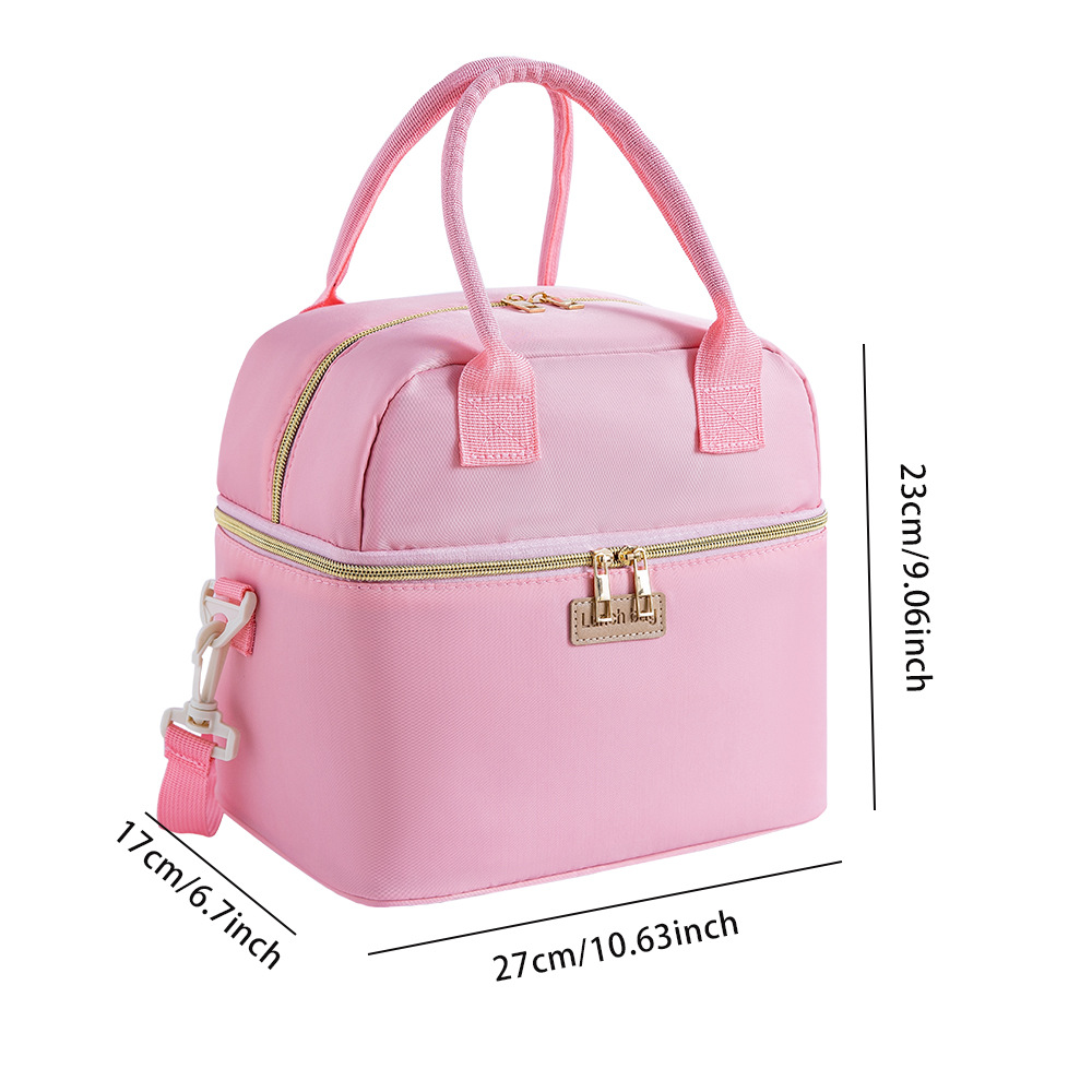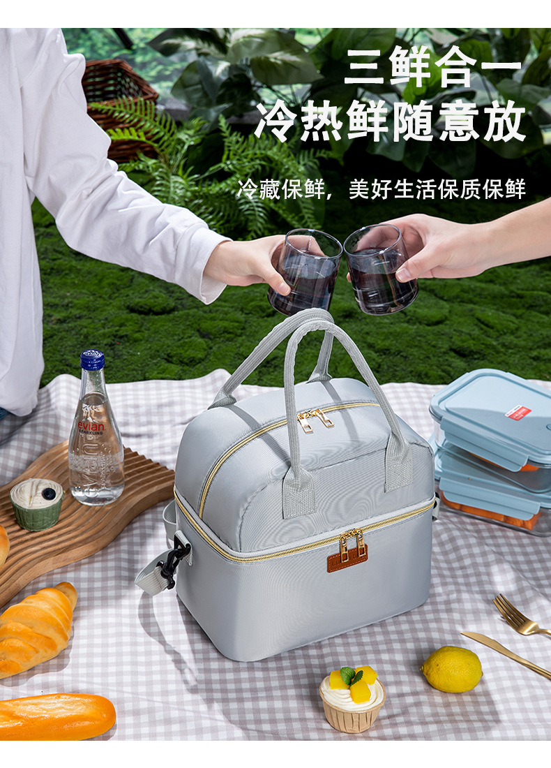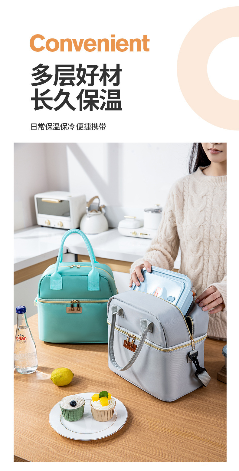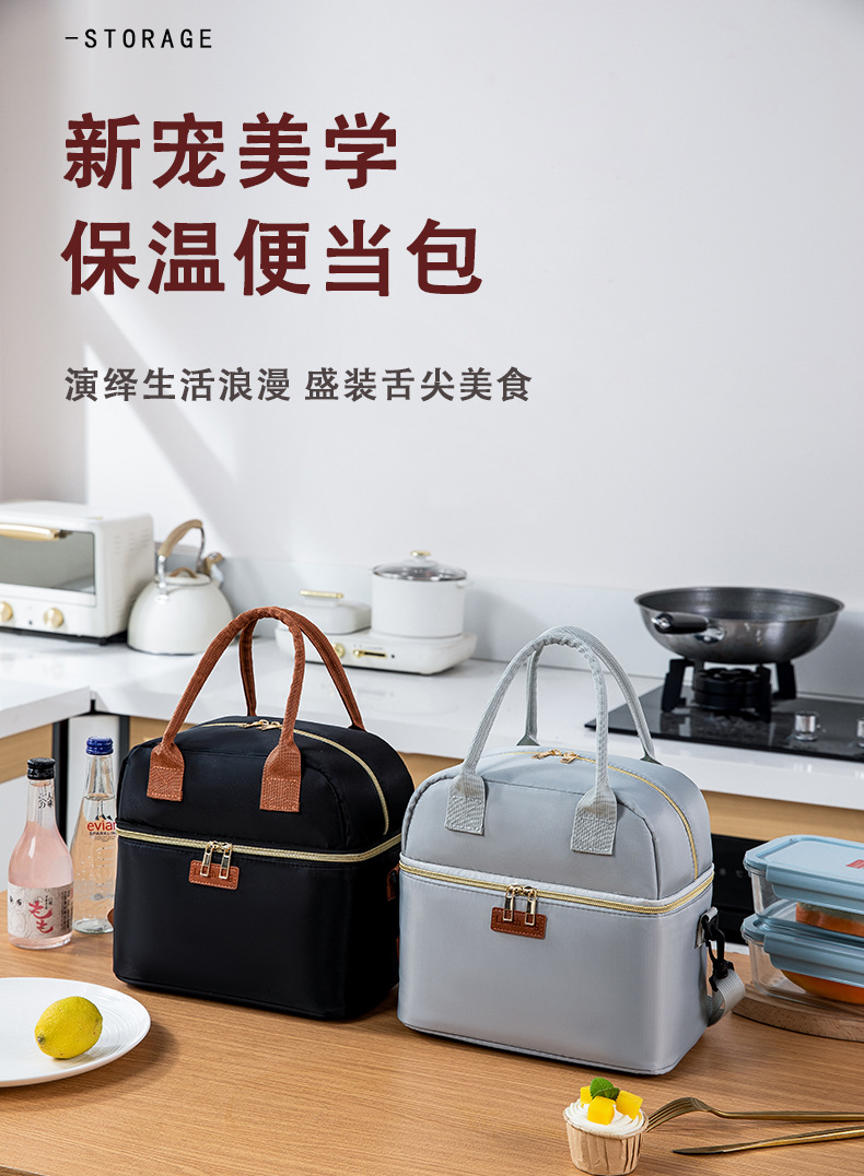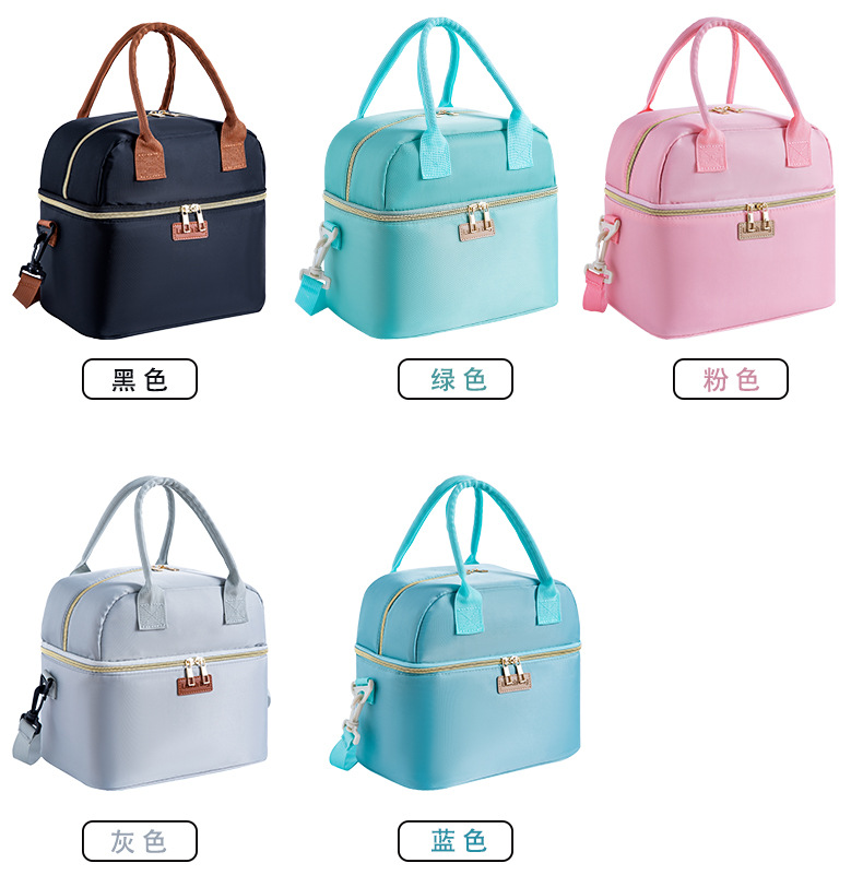 뜨거운 판매 휴대용 더블 레이어 점심 가방 두꺼운 방수 절연 가방 휴대용 학생 식사 가방 사무실 노동자 식사 단열 가방