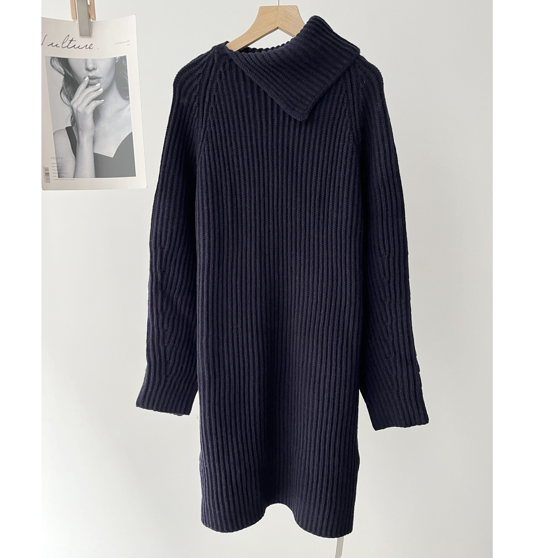 재고 CS 여성용 표준 니트 원피스 네이비 2024 겨울 새 1264108001