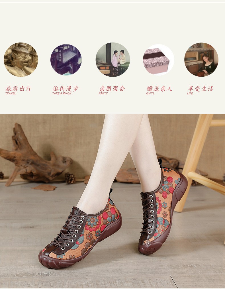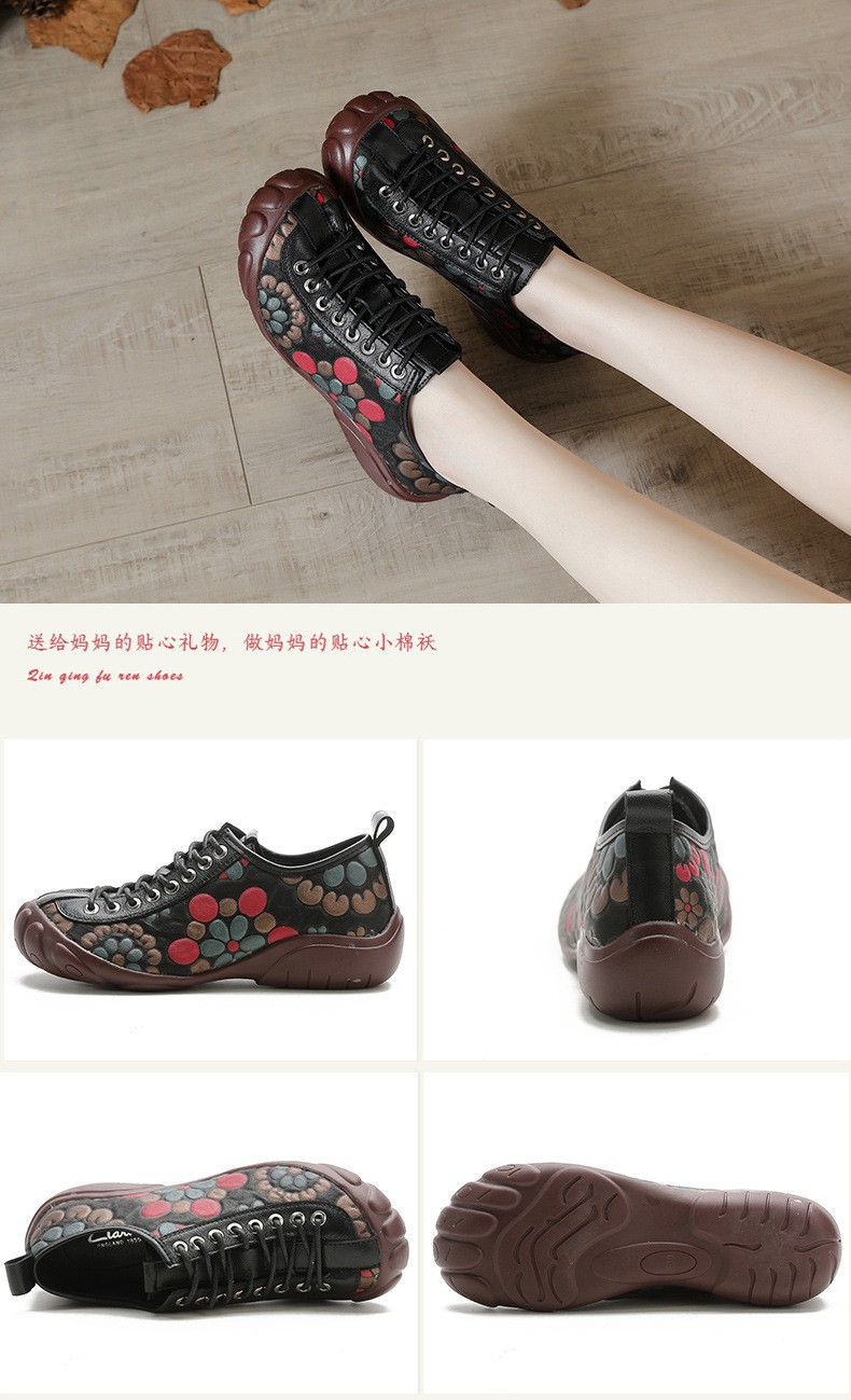탑 레이어 소 가죽 여름 소 가죽 단독 캐주얼 여성 신발 민족 스타일 프린트 정품 가죽 중공 싱글 레이어 신발 통기성 홀 신발 여성용스토어 가기