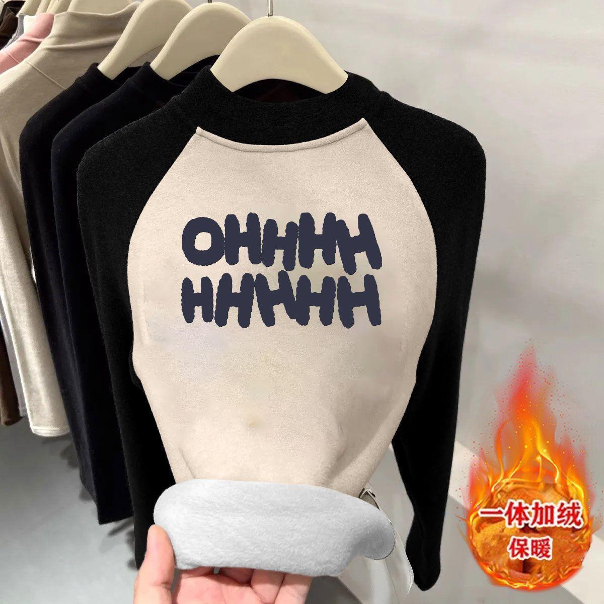 여자 기모 기지 셔츠 겨울 새 어린이 원피스 벨벳 긴팔 티셔츠 대형 어린이 두꺼운 따뜻한 탑 티셔츠스토어 가기