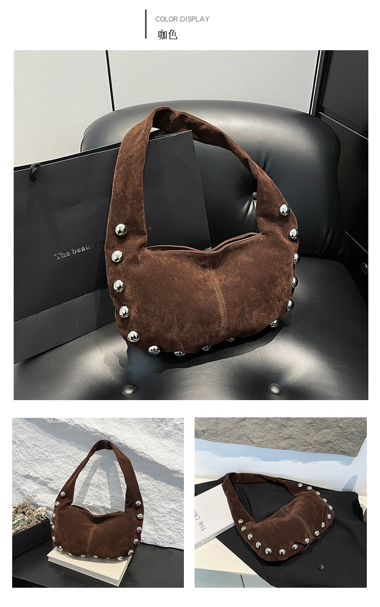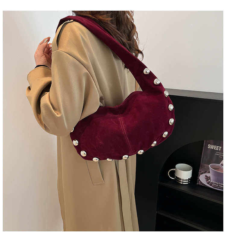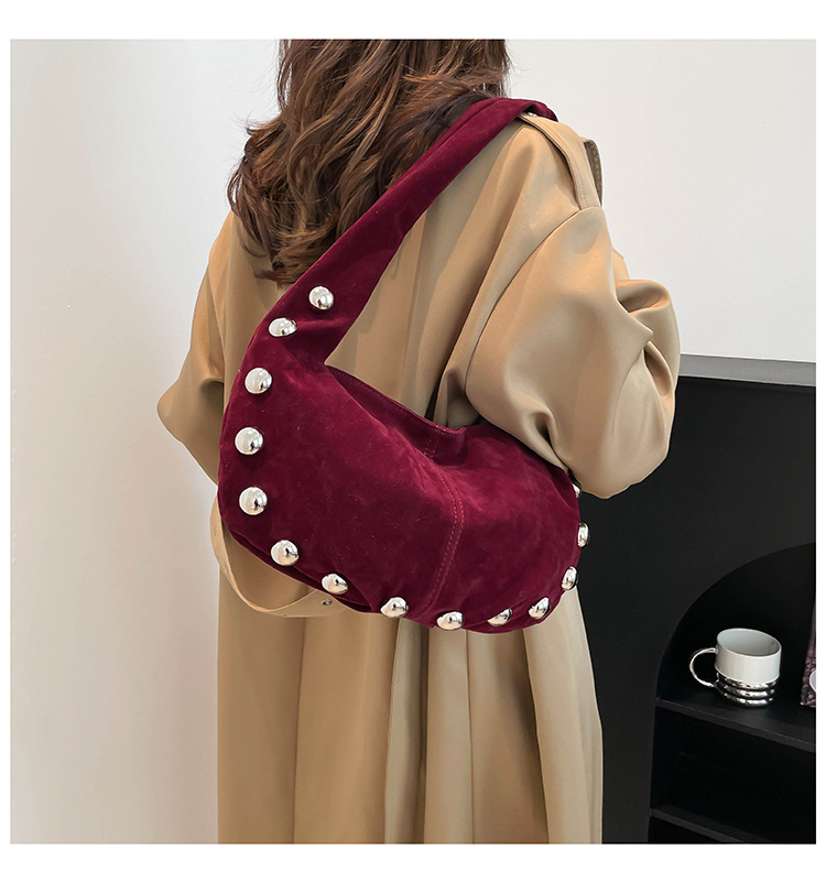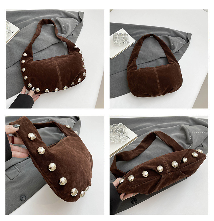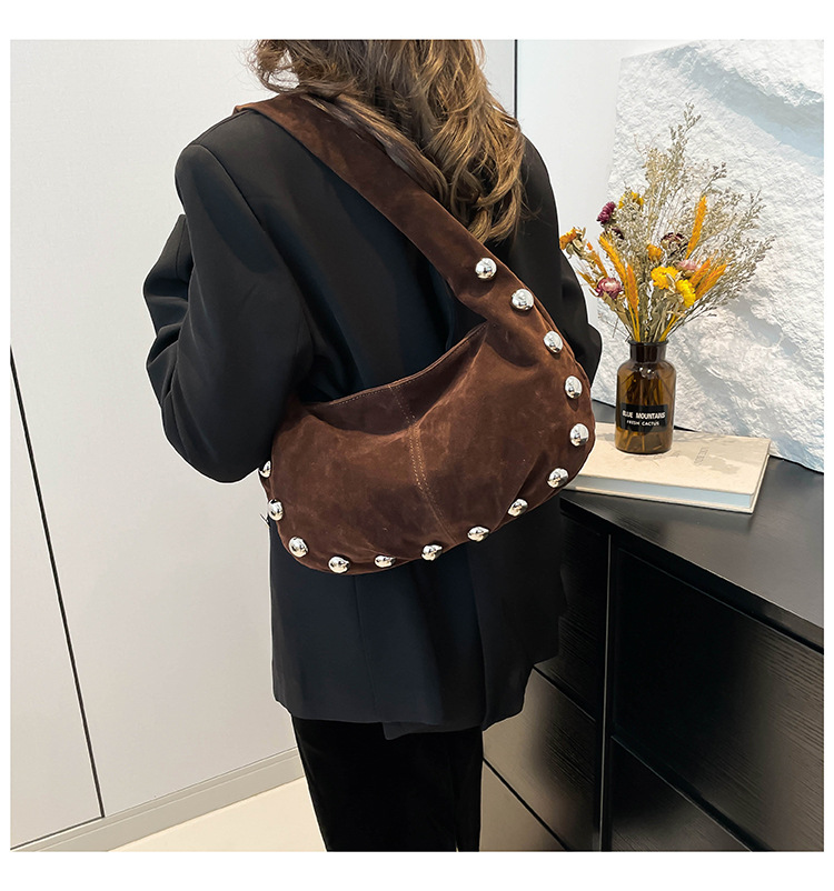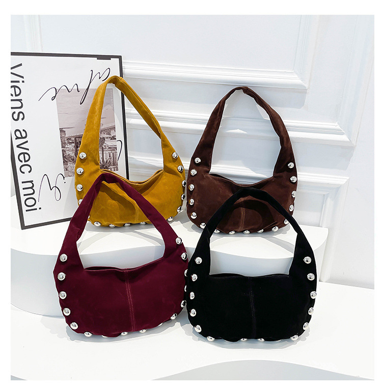 빈티지 Frosted 질감 패션 리벳 휴대용 속옷 가방 2024 가을과 겨울 새로운 캐주얼 세련된 어깨 가방