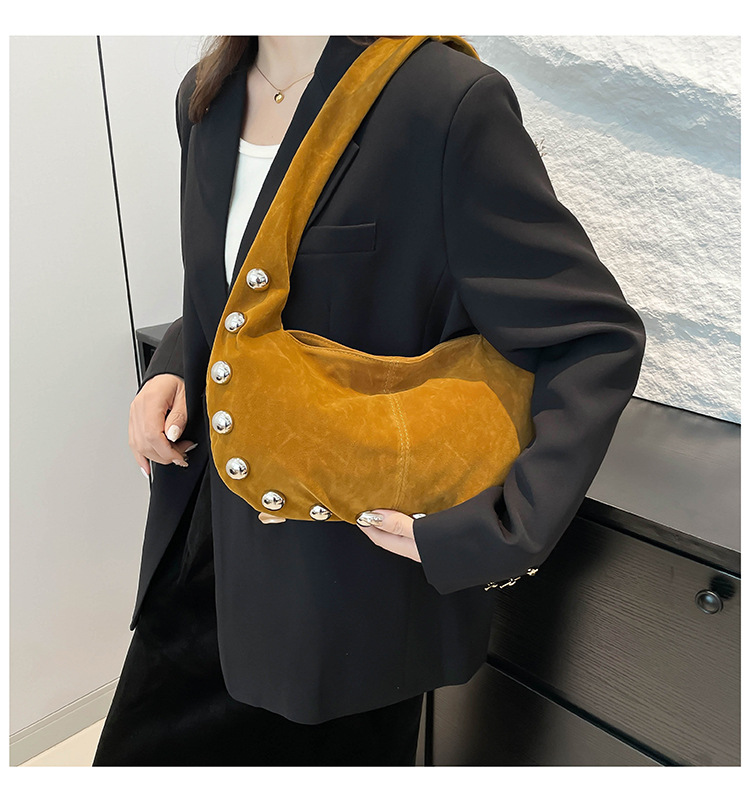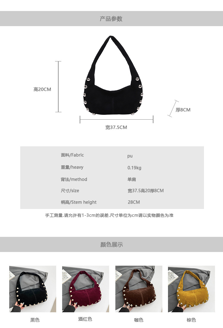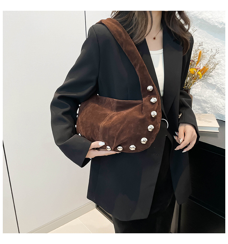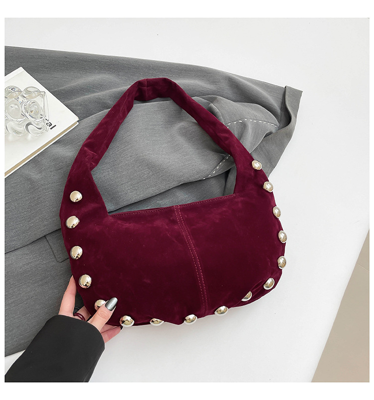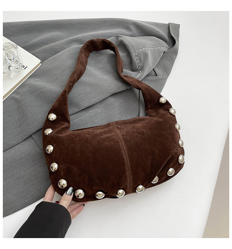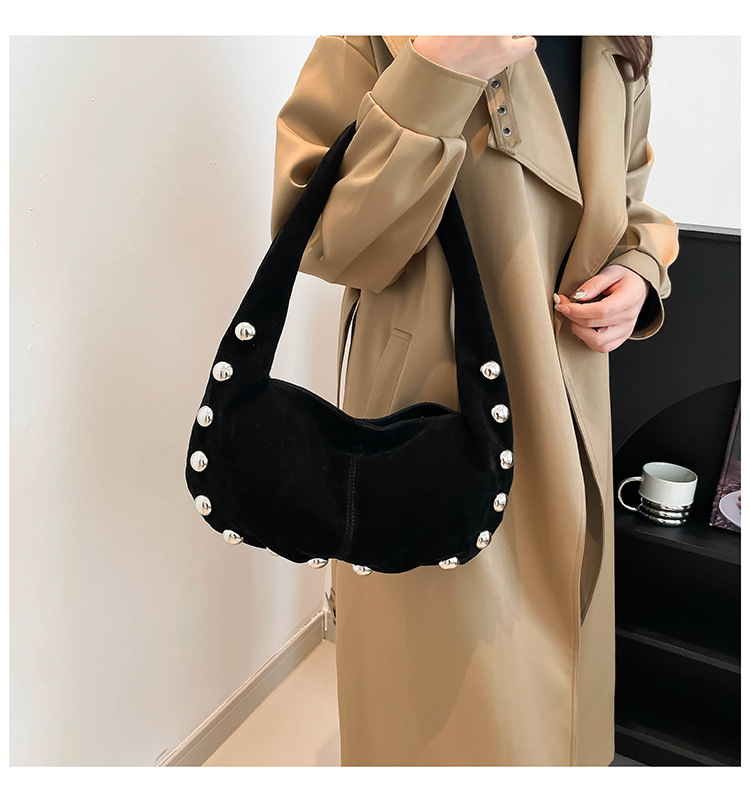 빈티지 Frosted 질감 패션 리벳 휴대용 속옷 가방 2024 가을과 겨울 새로운 캐주얼 세련된 어깨 가방