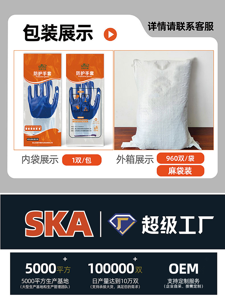 노동 보호 장갑, 니트릴 고무 장갑, 건설 현장 작업용 장갑, 두꺼운 내마모성, 미끄럼 방지, 내유성 니트릴 라텍스 장갑