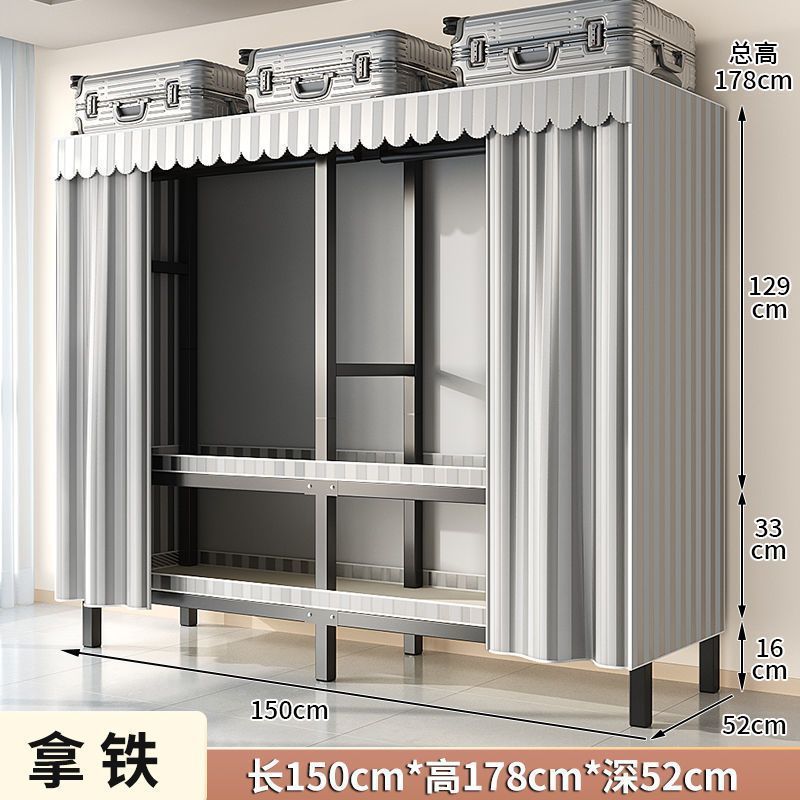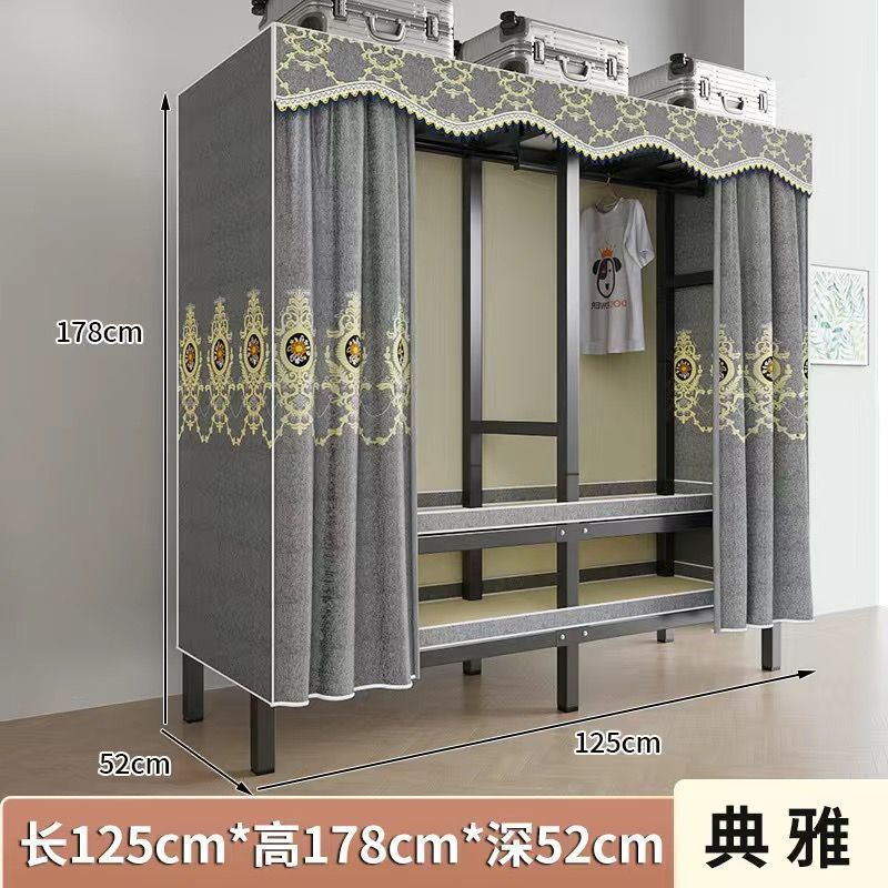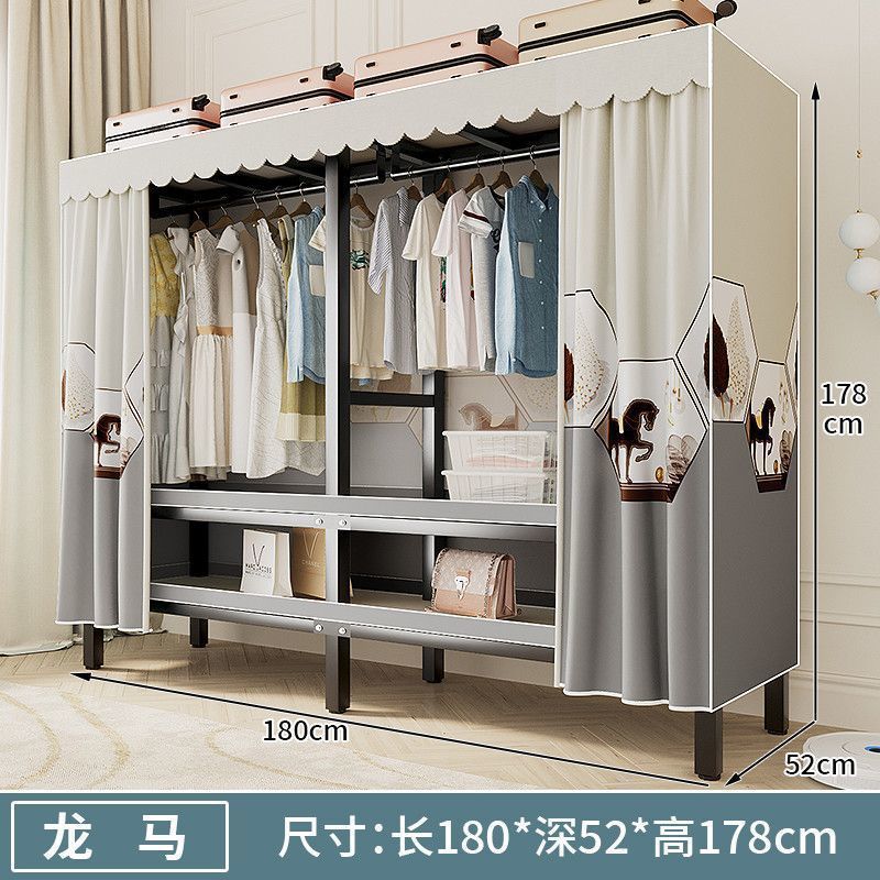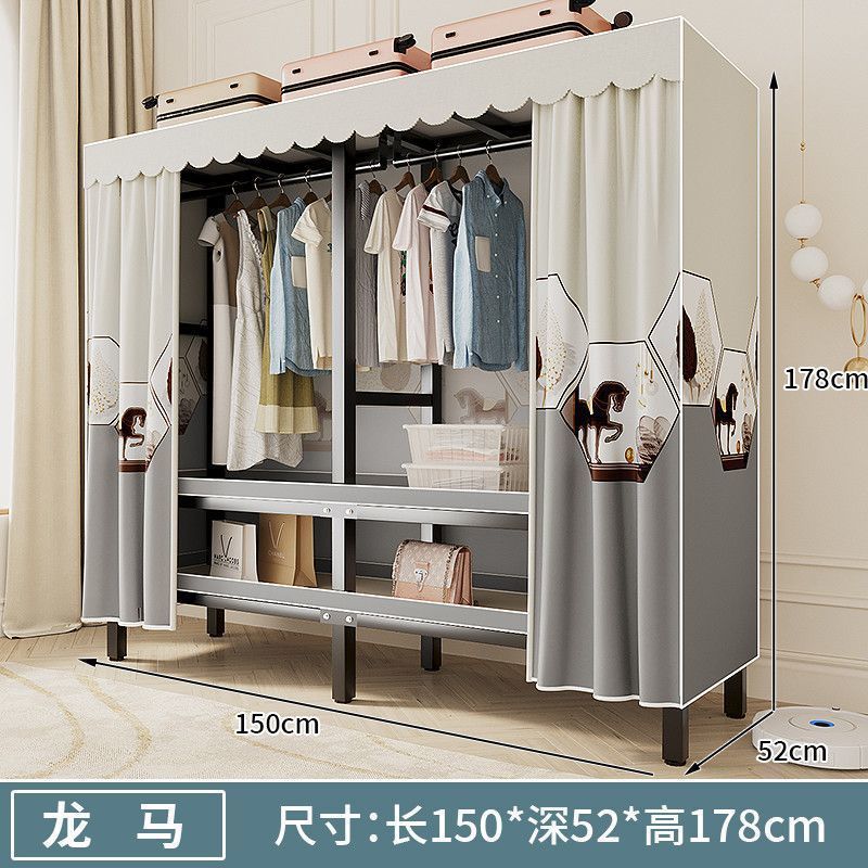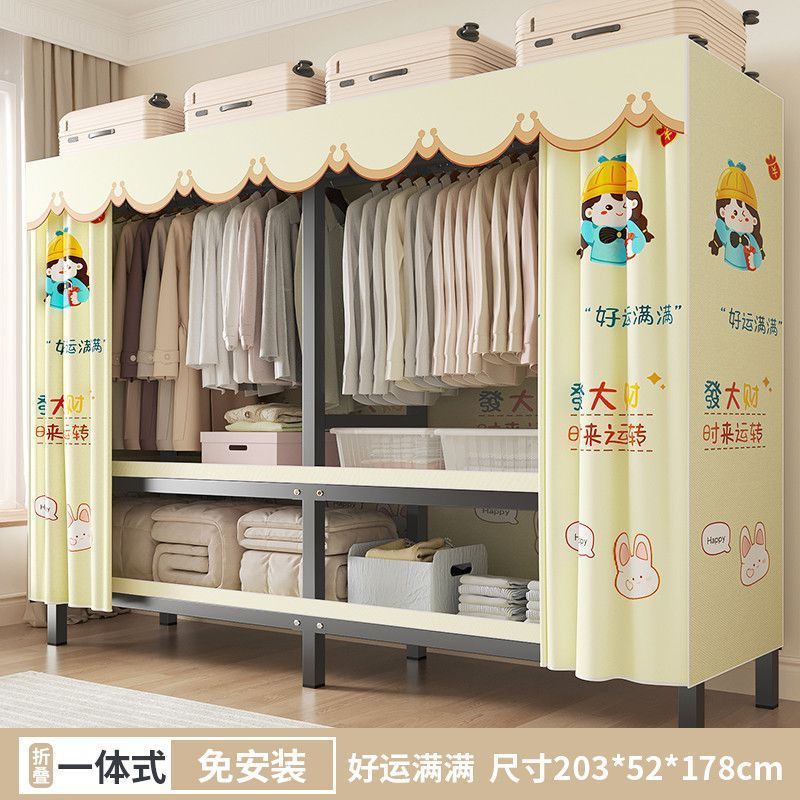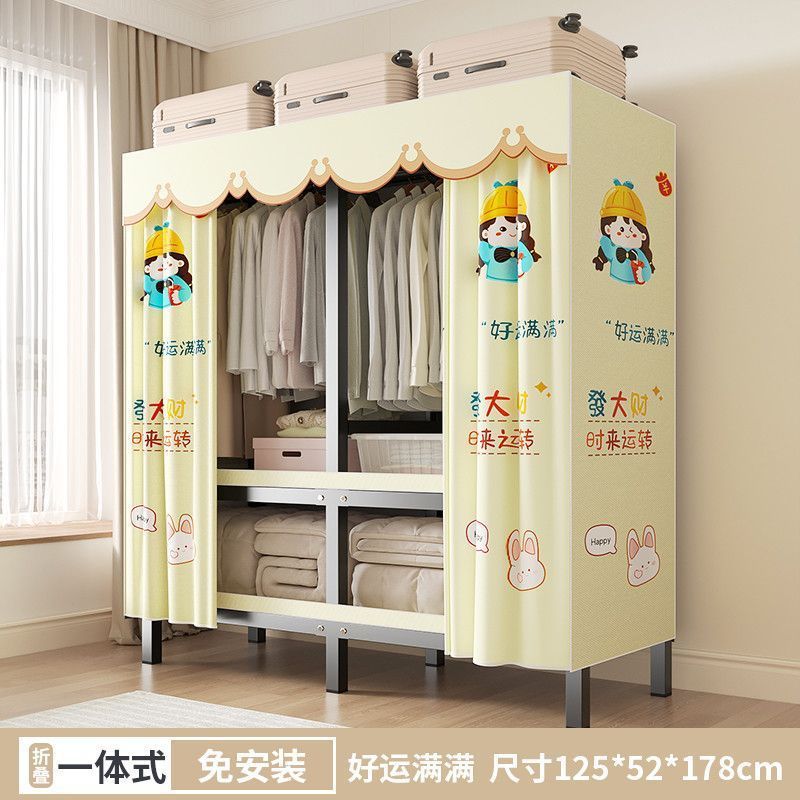 옷장 새 스타일 2024 침실 홈 렌탈 룸 설치-무료 천 옷장 접이식 강철 프레임 보관 옷장