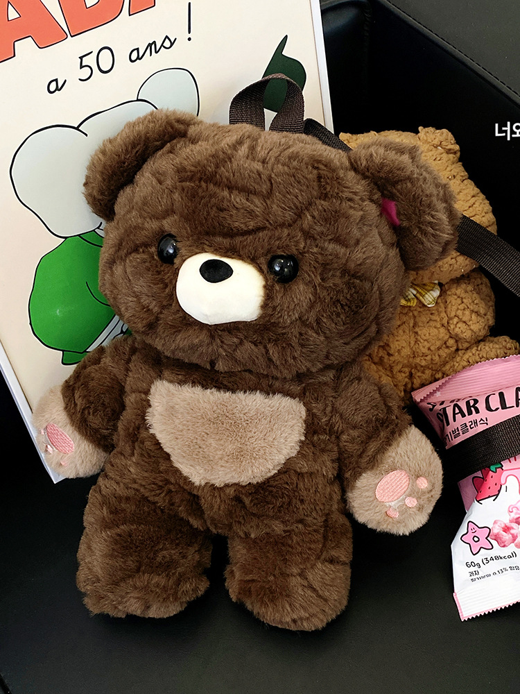 만화풍 인스 하트곰 봉제 가방, 여성용 귀엽고 다용도인 인형 가방, 어린이용 배낭, 아기 가방스토어 가기