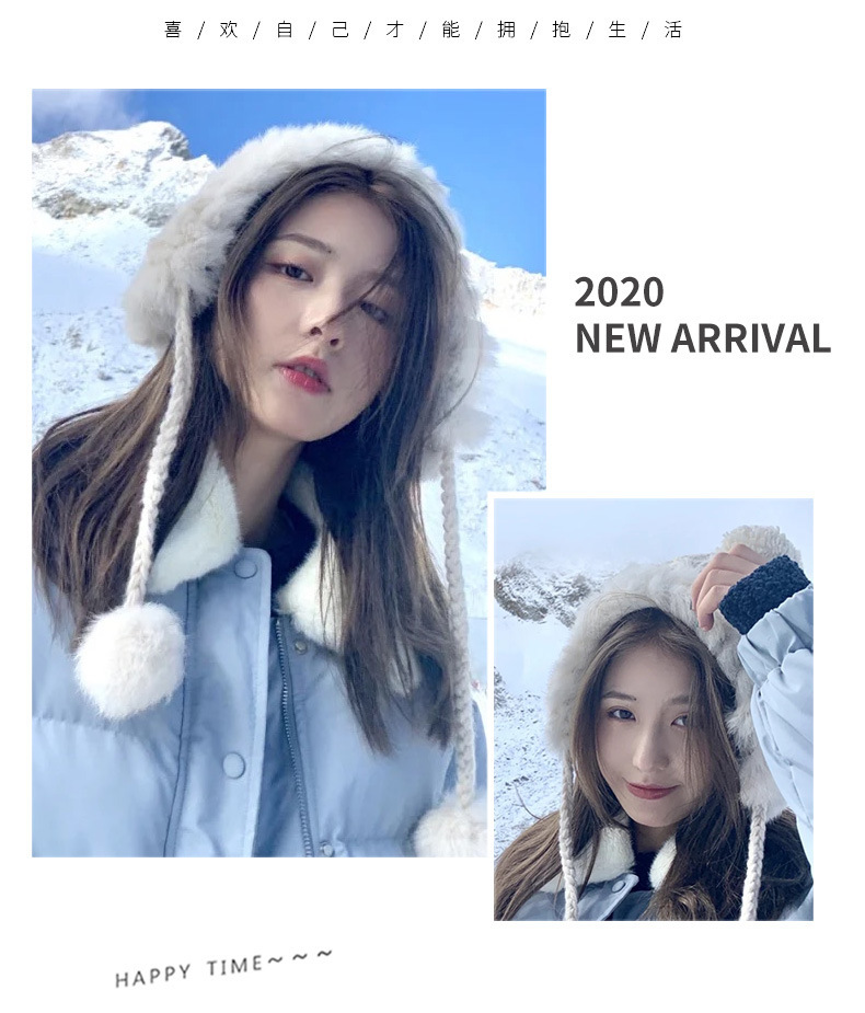 모피 공 귀 보호 여행 봉제 니트 양모 모자 여성의 두꺼운 따뜻한 감기 방지 레이 펑 모자 2024 년 가을 및 겨울스토어 가기