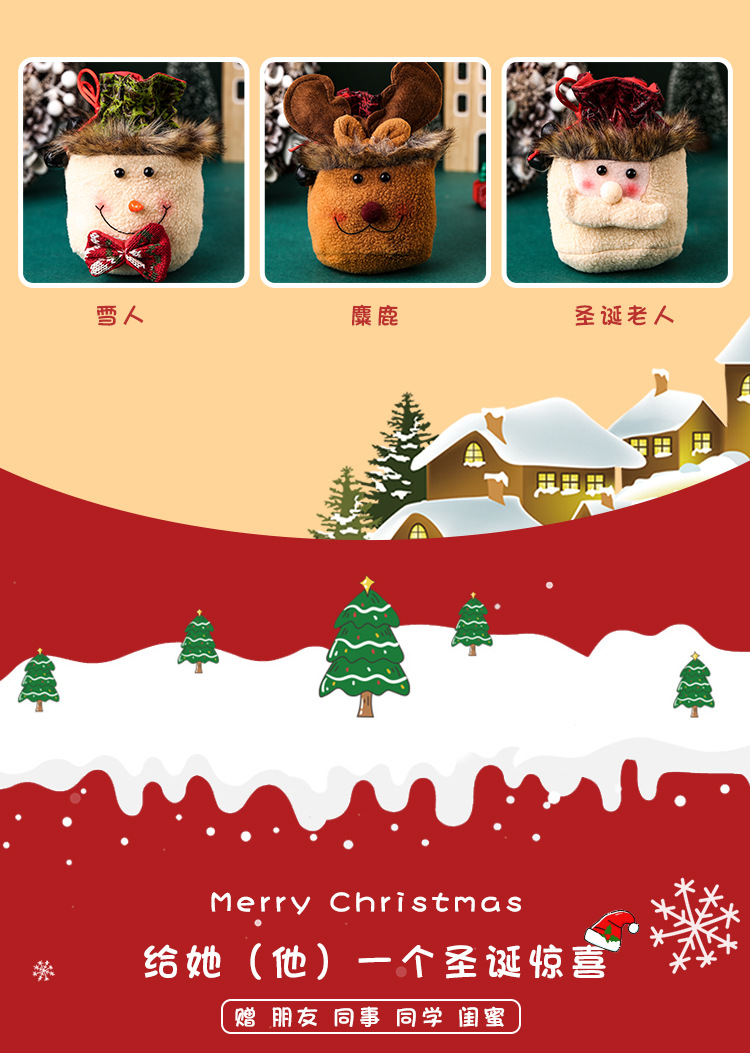 크리스마스 애플 포장 봉제 핑 과일 선물 가방 장식 휴일 선물 사탕 가방 비스킷 베이킹 쿠키스토어 가기