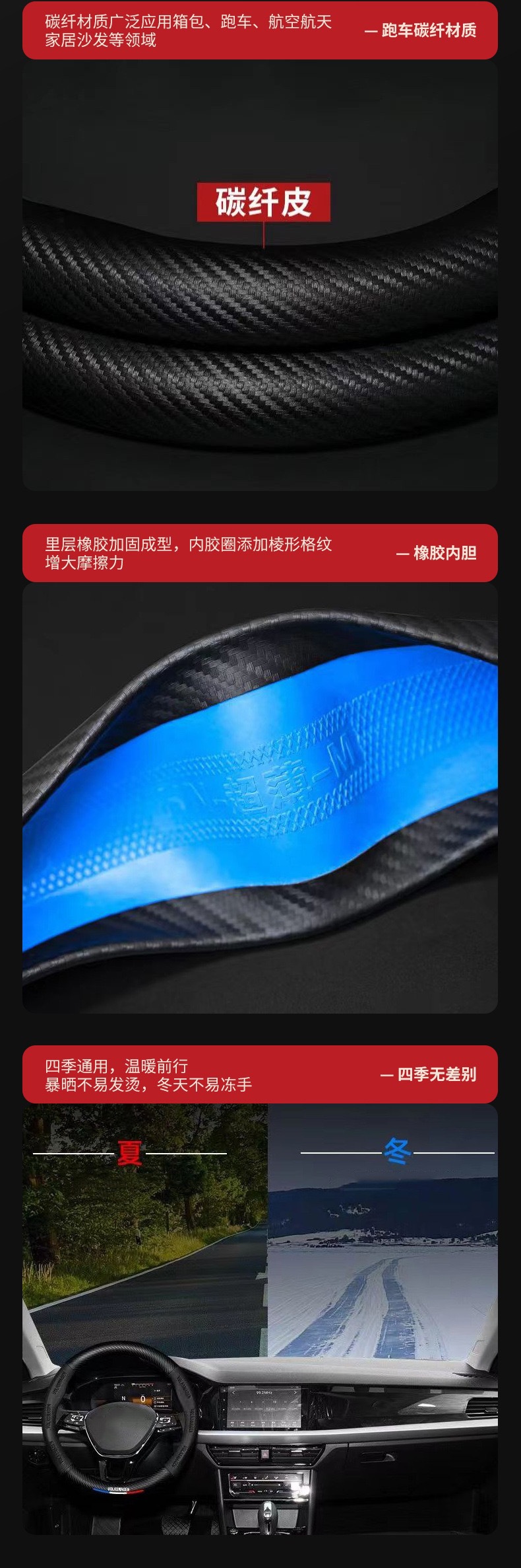 아마존 탄소 섬유 접합 핸들 세트 사계절 유니버설 스웨이드 통기성 땀 흡수성 미끄럼 방지 자동차 스티어링 휠 핸들 세트