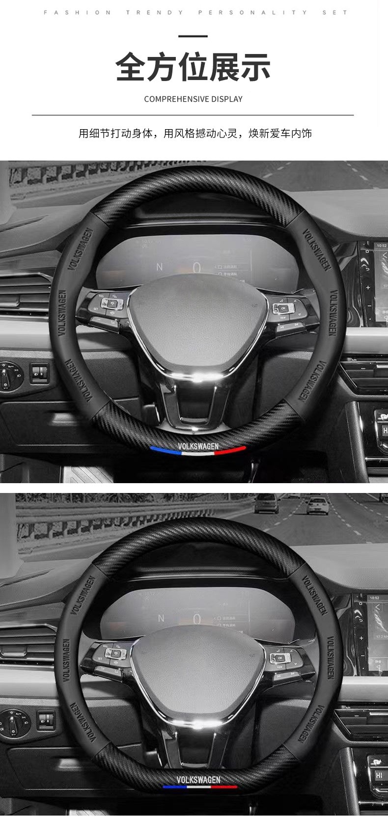 아마존 탄소 섬유 접합 핸들 세트 사계절 유니버설 스웨이드 통기성 땀 흡수성 미끄럼 방지 자동차 스티어링 휠 핸들 세트스토어 가기