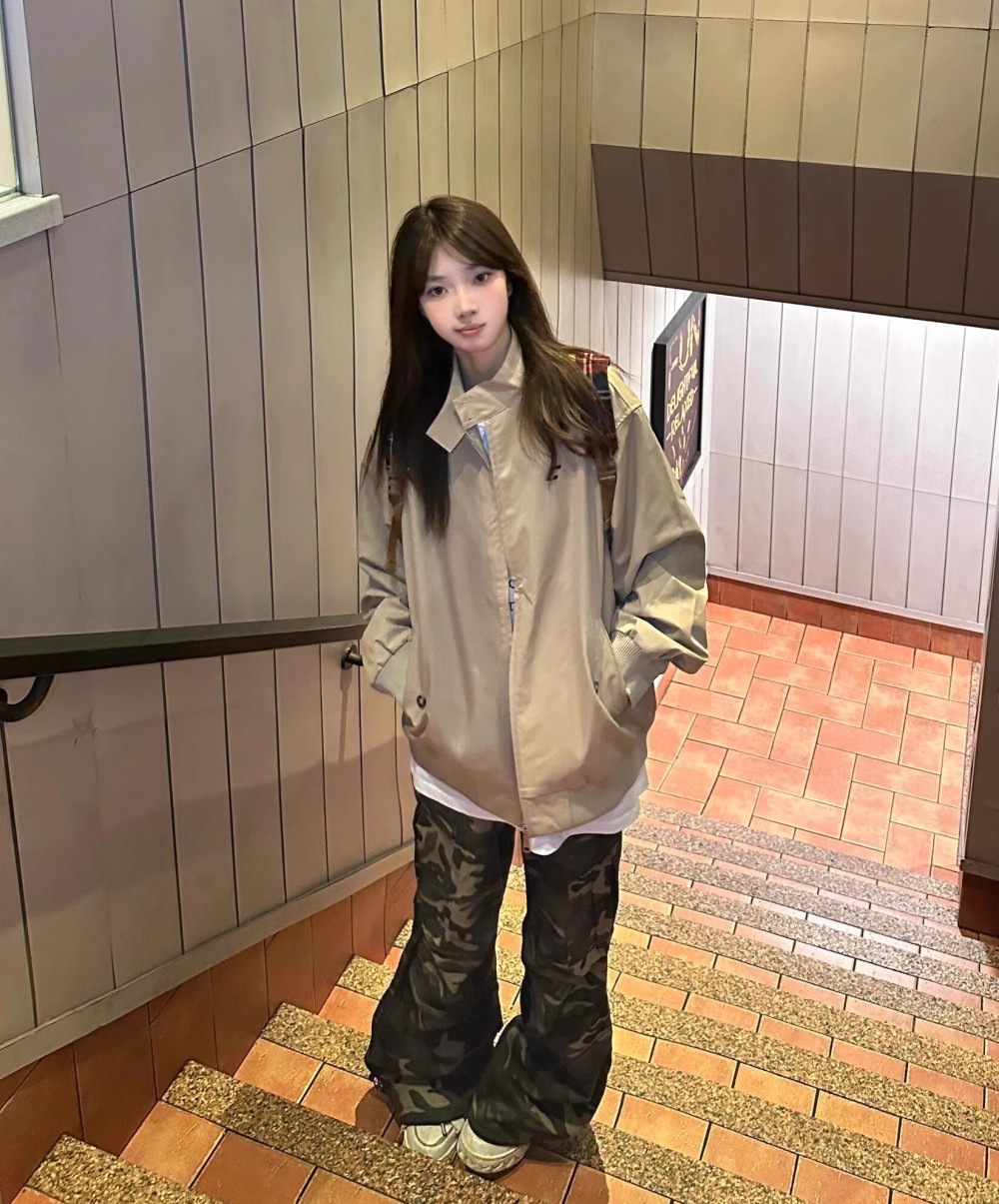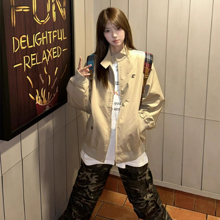 아메리칸 스타일 레트로 칼라 코트 여자 봄과 가을 2024 새로운 한국인 느슨한 올매치 커플의 작업 재킷스토어 가기