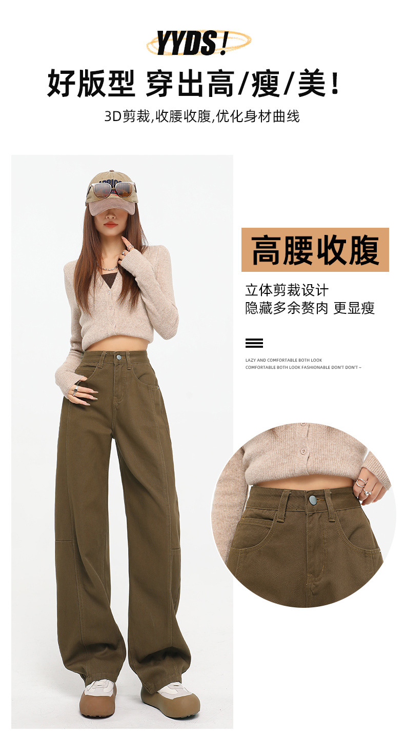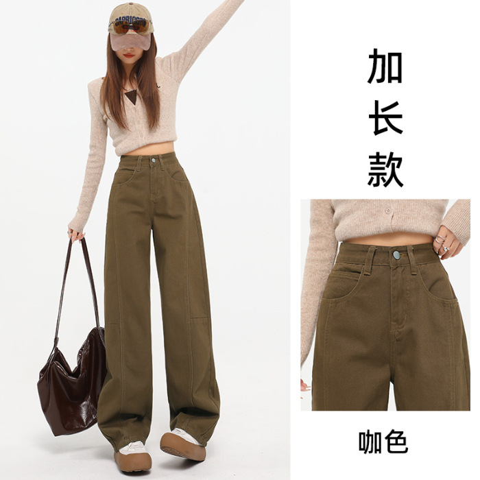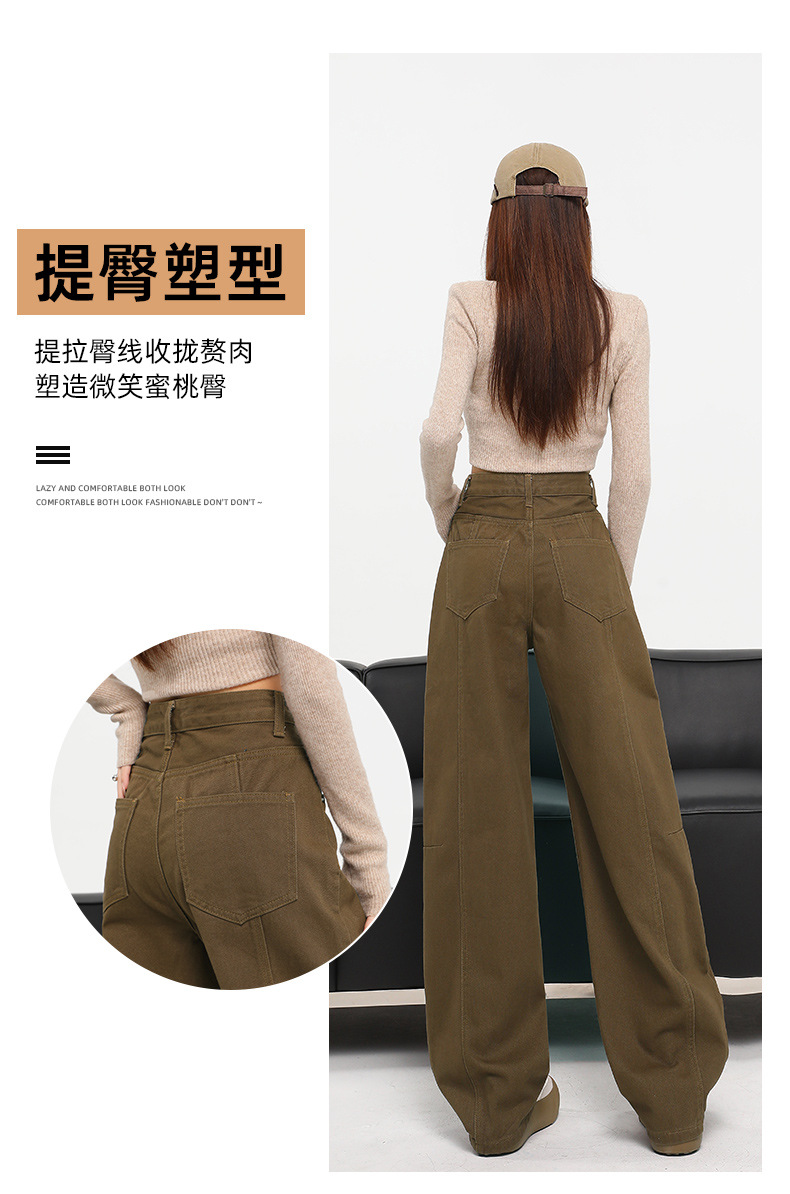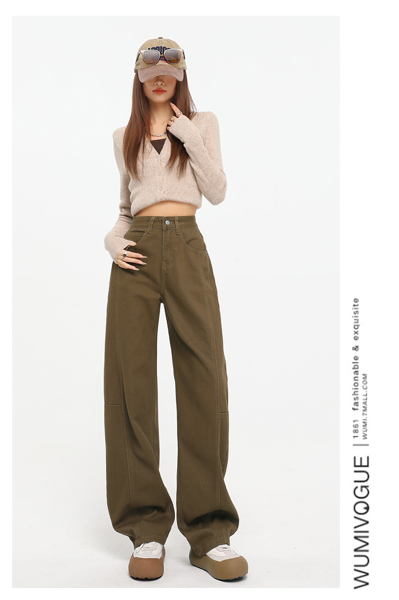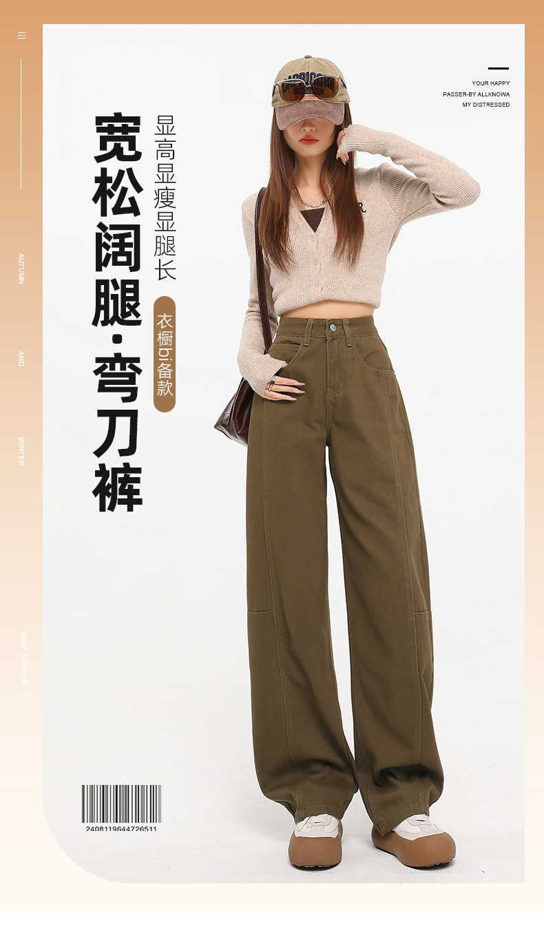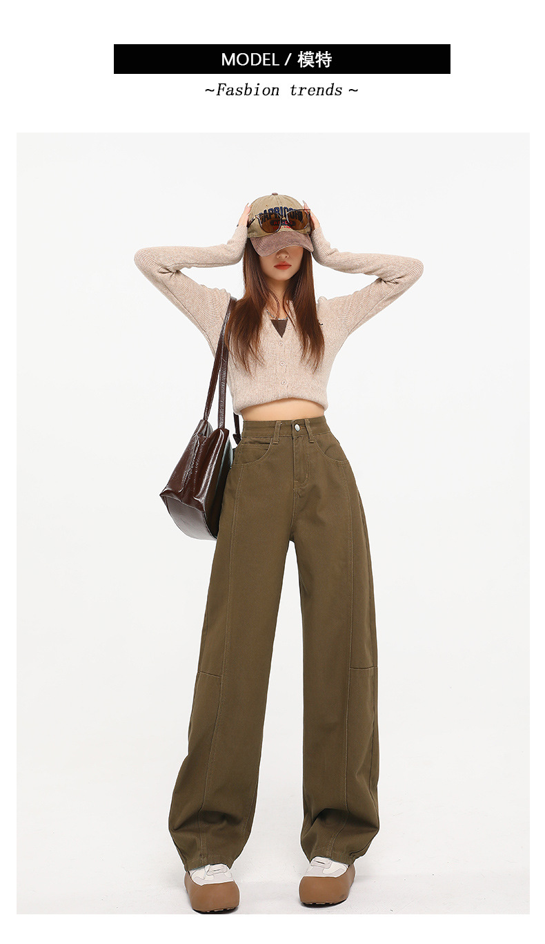 다크 브라운 스트레이트 레그 청바지 여자 2025 년 봄 새로운 높은 허리 슬리밍 미국 레트로 Scimitar 와이드 레그 바나나 바지스토어 가기